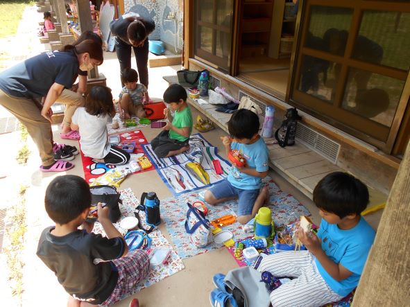 保育所に帰ってからは、お家の人が作ってくれたお弁当を嬉しそうに食べていました。