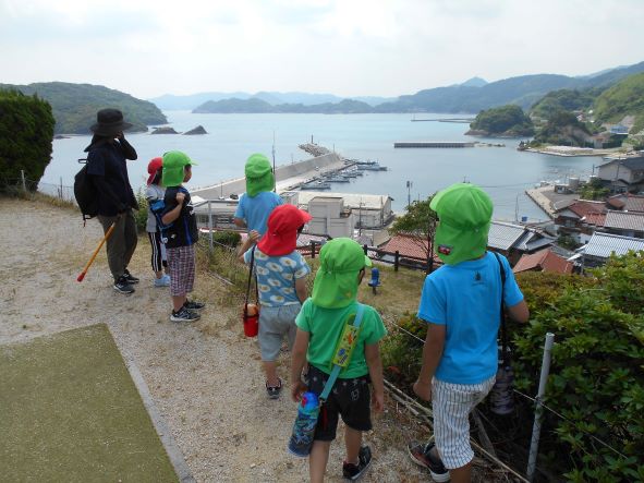 野井の海が一望できます。 「あっ、つりしてるひとがいる」