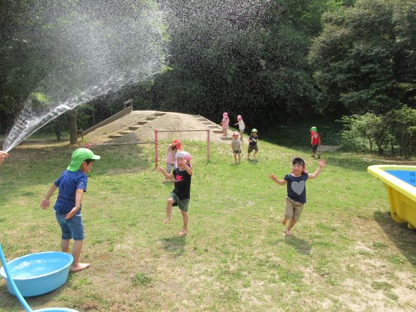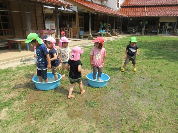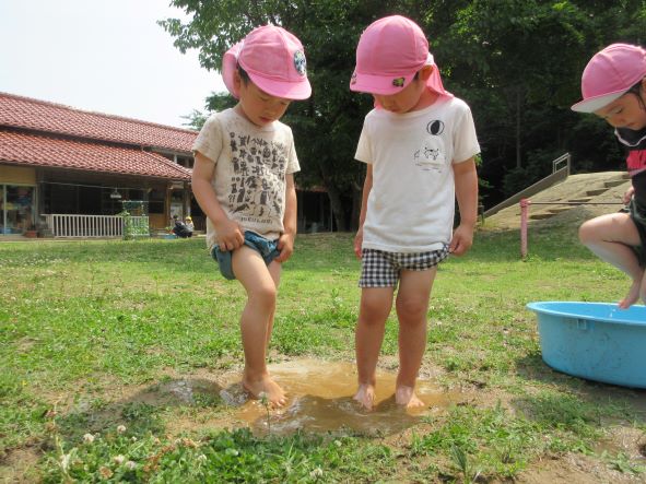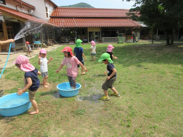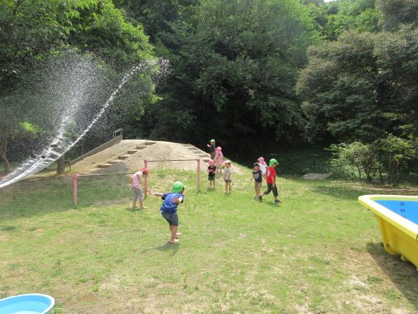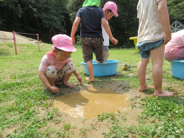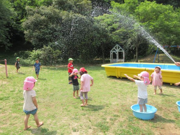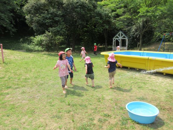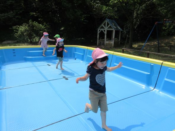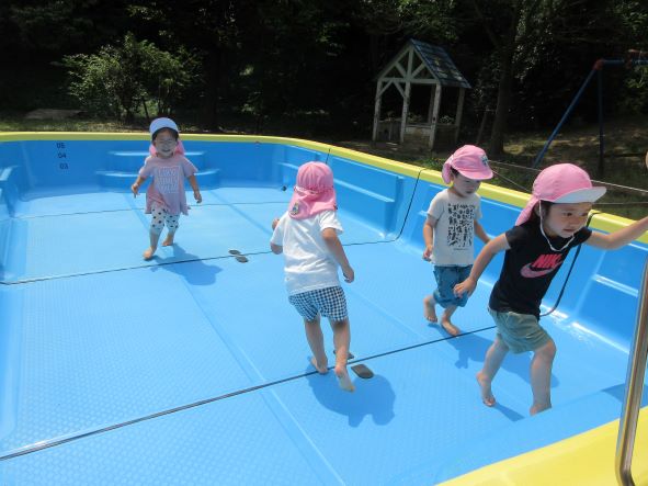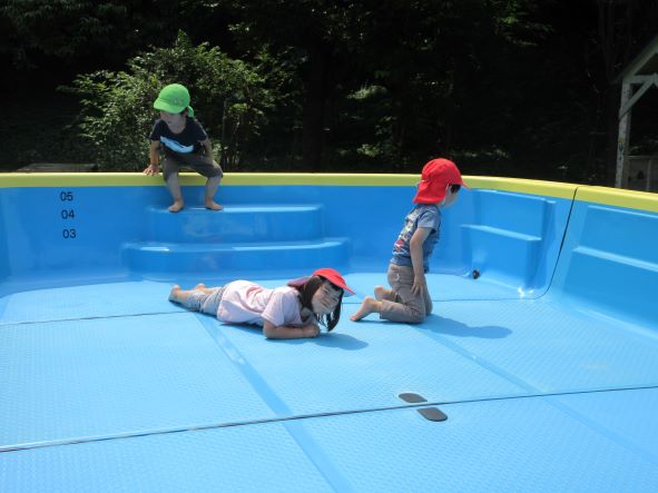 「あっ!プール~」「きょう プールはいる?」とわくわくした表情の子どもたちでした。