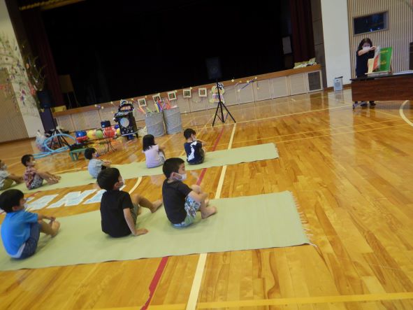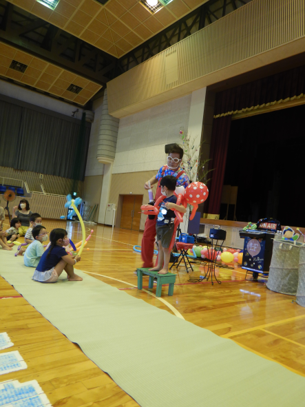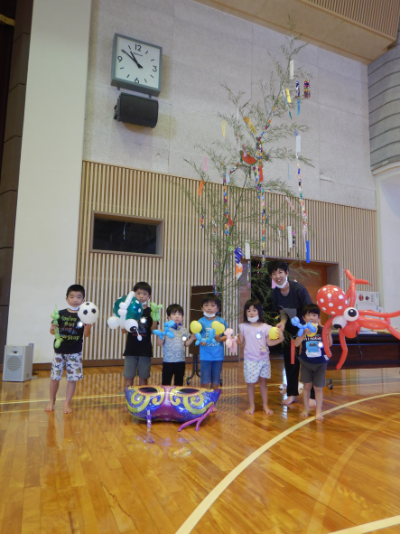 七夕会では、絵本の読み聞かせやバルーンアートがありました。バルーンアートでは、色や模様の違うバルーンを、ひねったり膨らませたり組み合わせたりする様子を、何ができるか楽しみながら見つめていました。