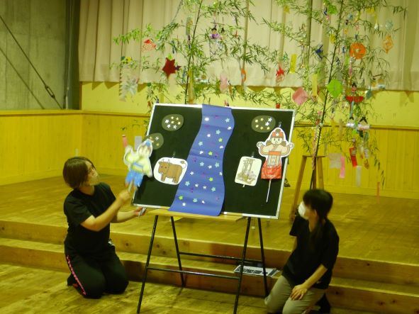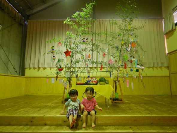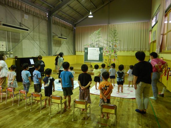 七夕が天気に恵まれるように「たなばたさま」を大きな声で歌いました。