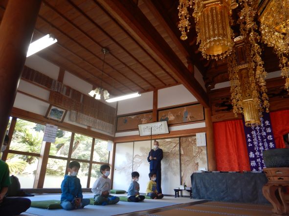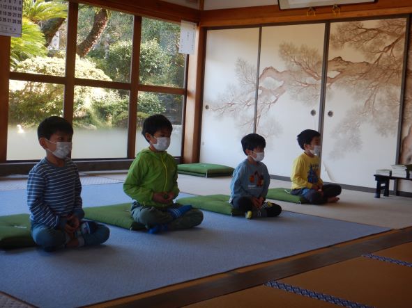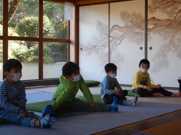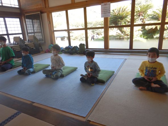 和尚さんから“まずは自分のことをしっかりとすること”“やらなければいけないことにはきちんと意味や理由がある、それをしっかり考えることが大切”“その為にはまず落ち着く事”と教えて頂きました。終わった後の子どもたちの表情は、座禅をする前より凛々しく見えました。和尚さんから「いままで座禅をしてきた中で1番上手だった」と褒めて頂き、嬉しそうでした。