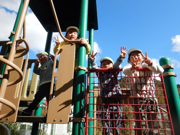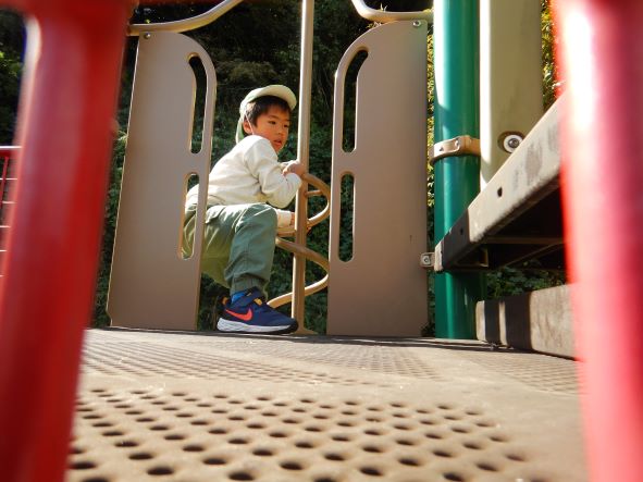 食べた後は遊具で遊びました。 こんな形の遊具に挑戦!