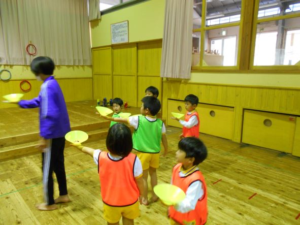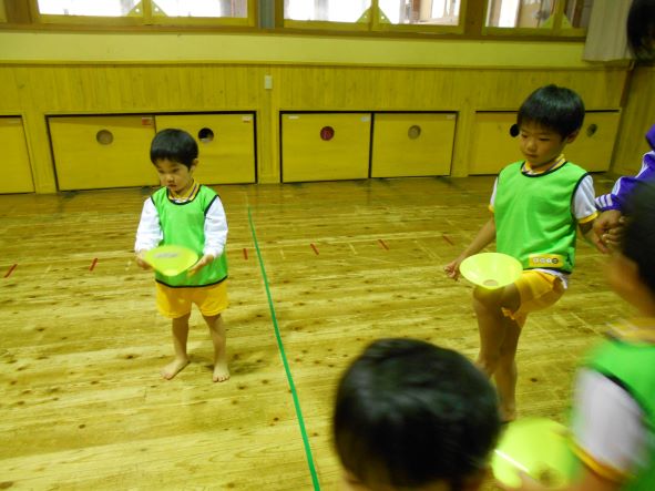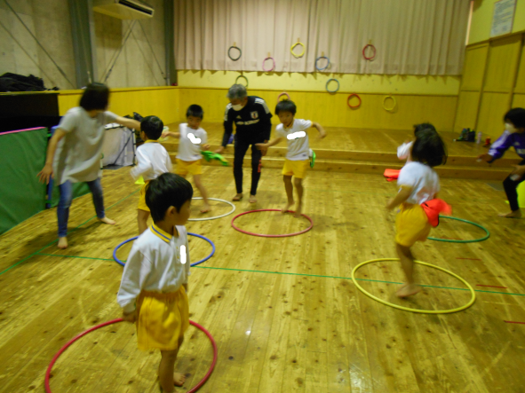 フープの中でしっぽ取り。 後ろにも気を付けて!