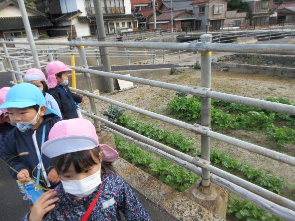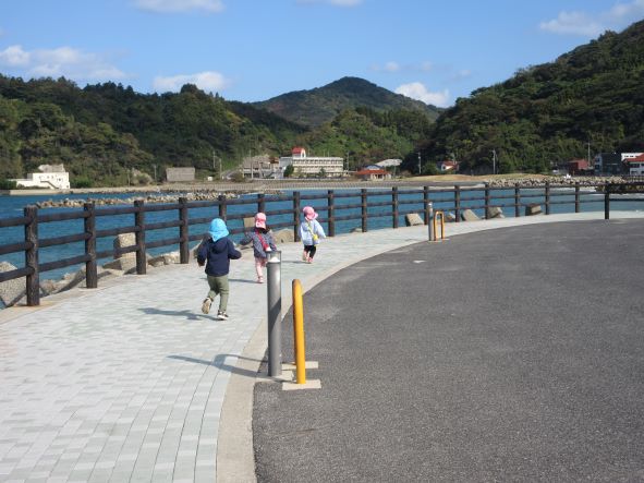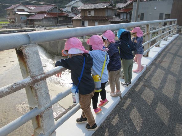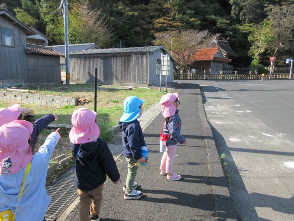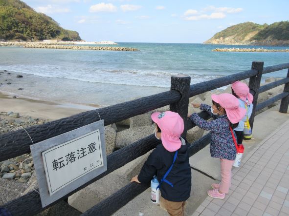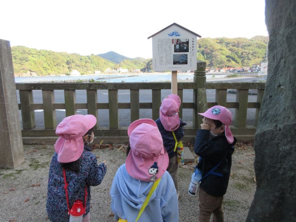 神社を出て海に向かっているとカモメの鳴き声が聞こえ「カラスだー」「カーカーっていってる」と言う子ども達でした。
