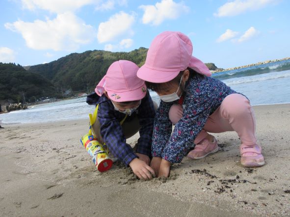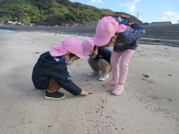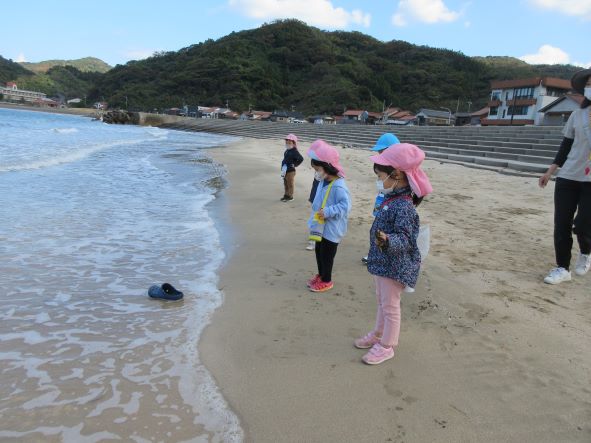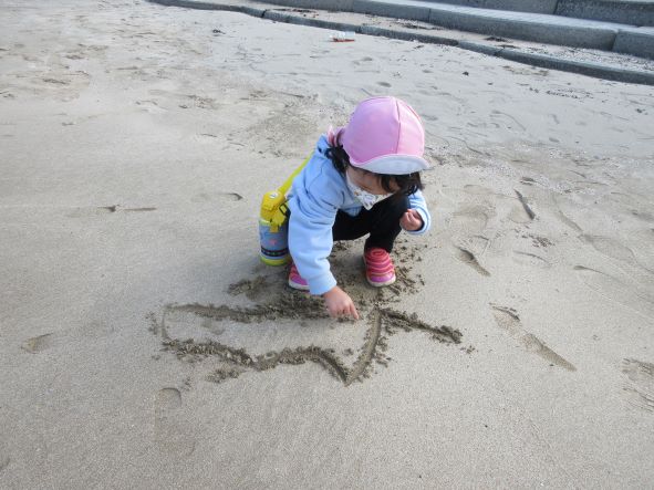 海では貝殻拾いや海藻拾い、浜に絵を描くなどをして遊びました。