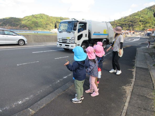 ごみ収集車に出会いました