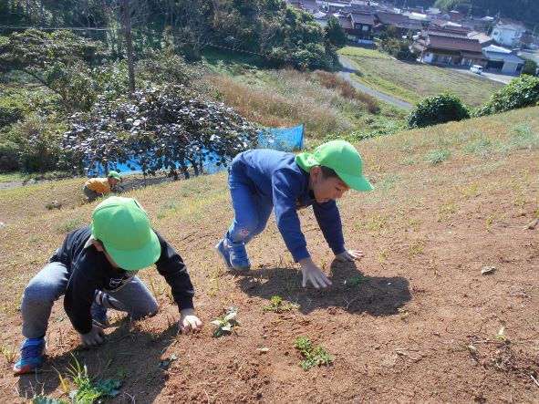 「きょうのつちは、さらさらしてる!」