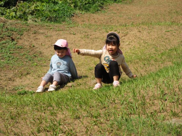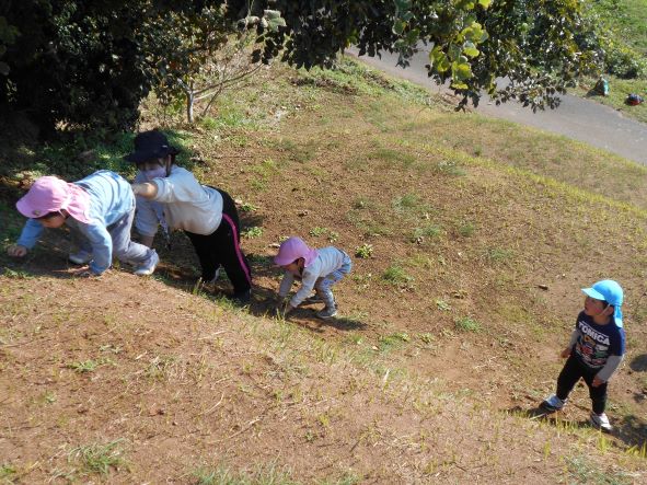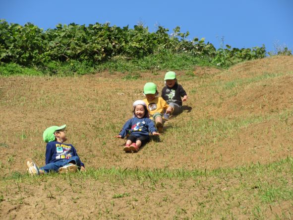 まぶしいほどの秋晴れの中、コロコロ斜面に行って遊びました。
