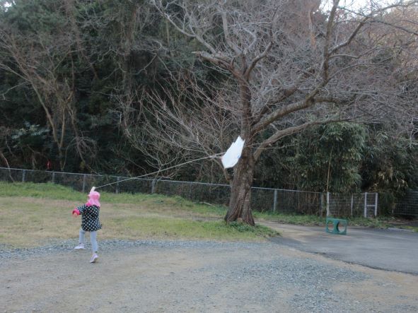 次の日には所庭でも上げましたが、昨日の経験から木の枝を気にしたり友達に当たらないようにしたりする姿に感心しました。