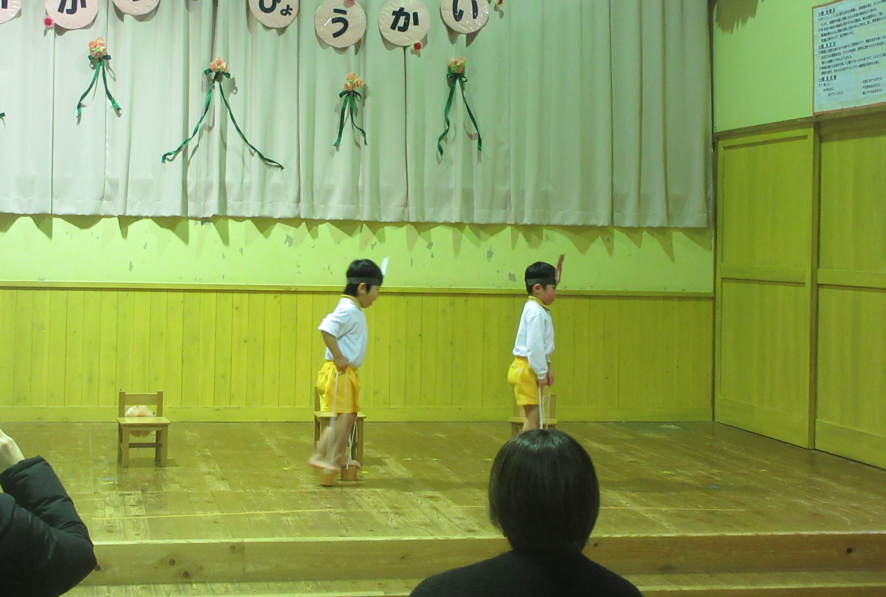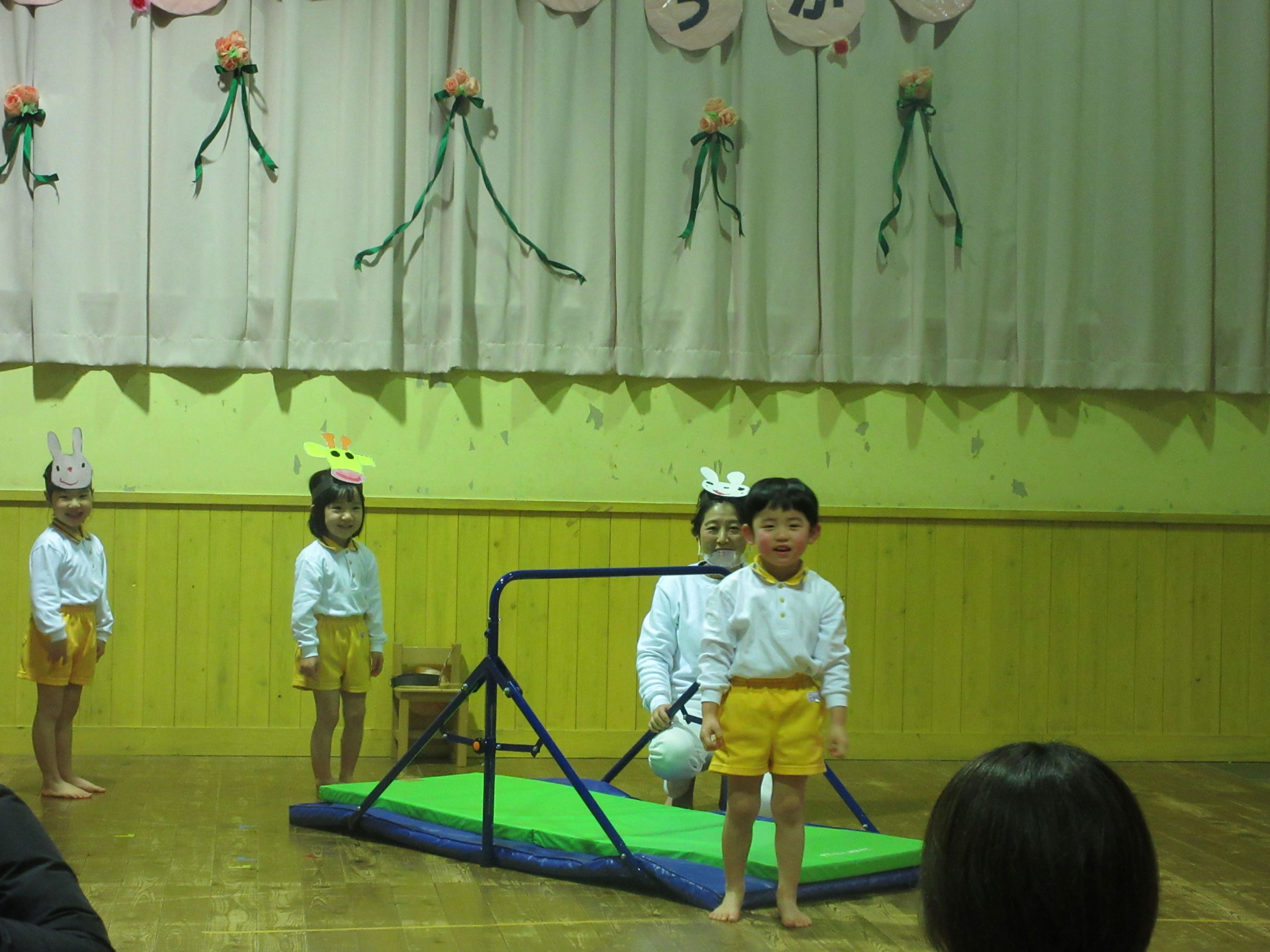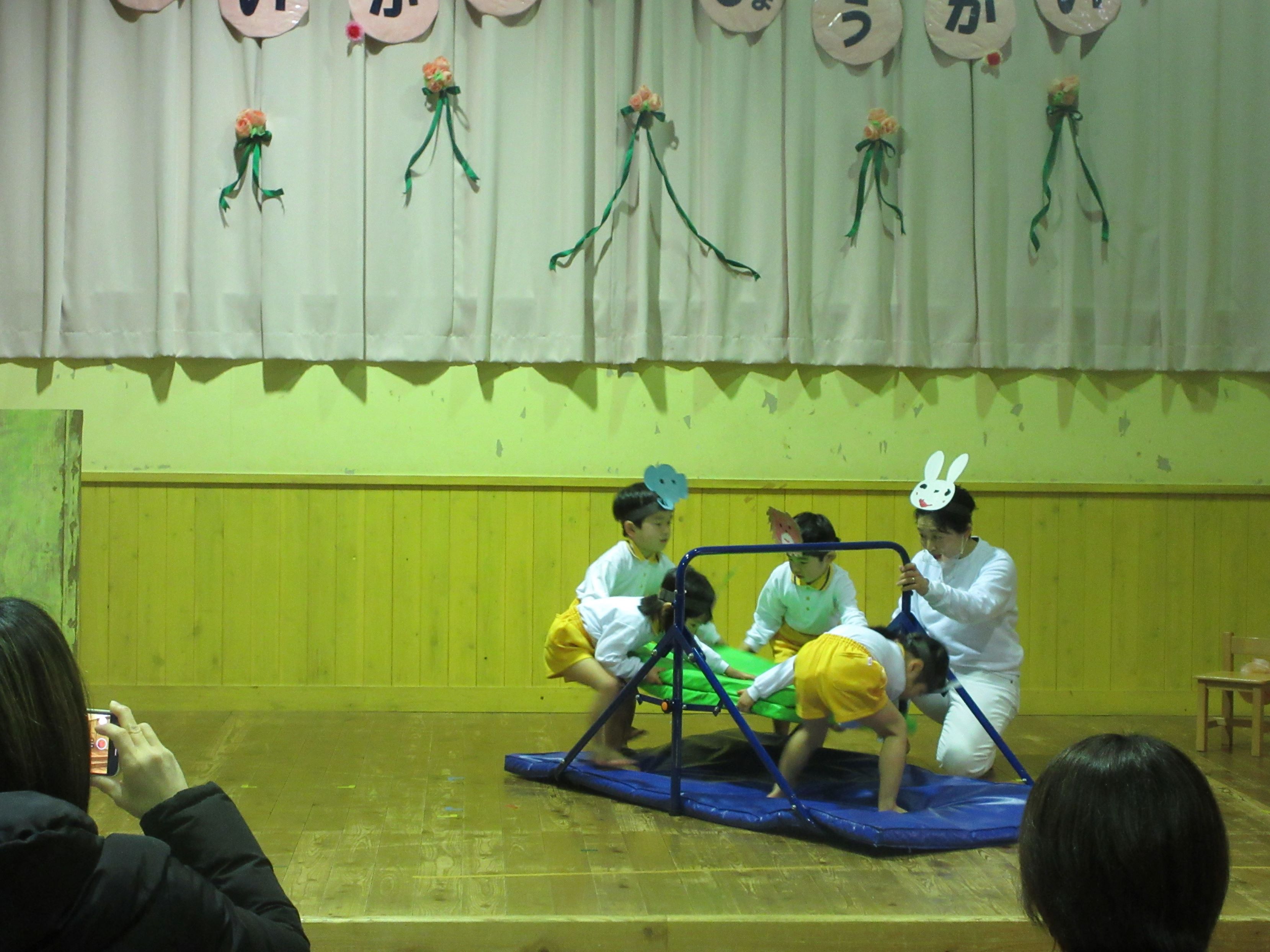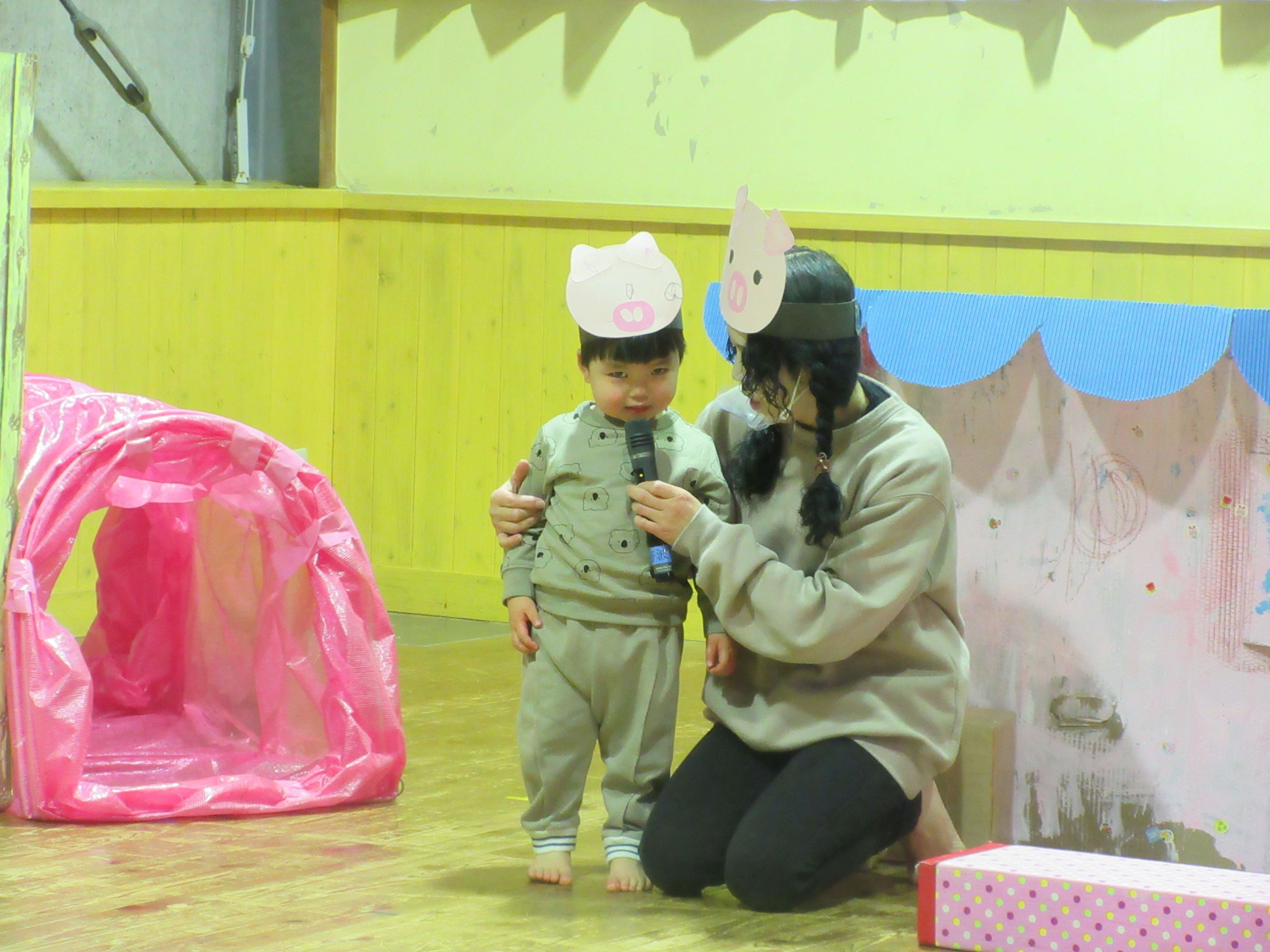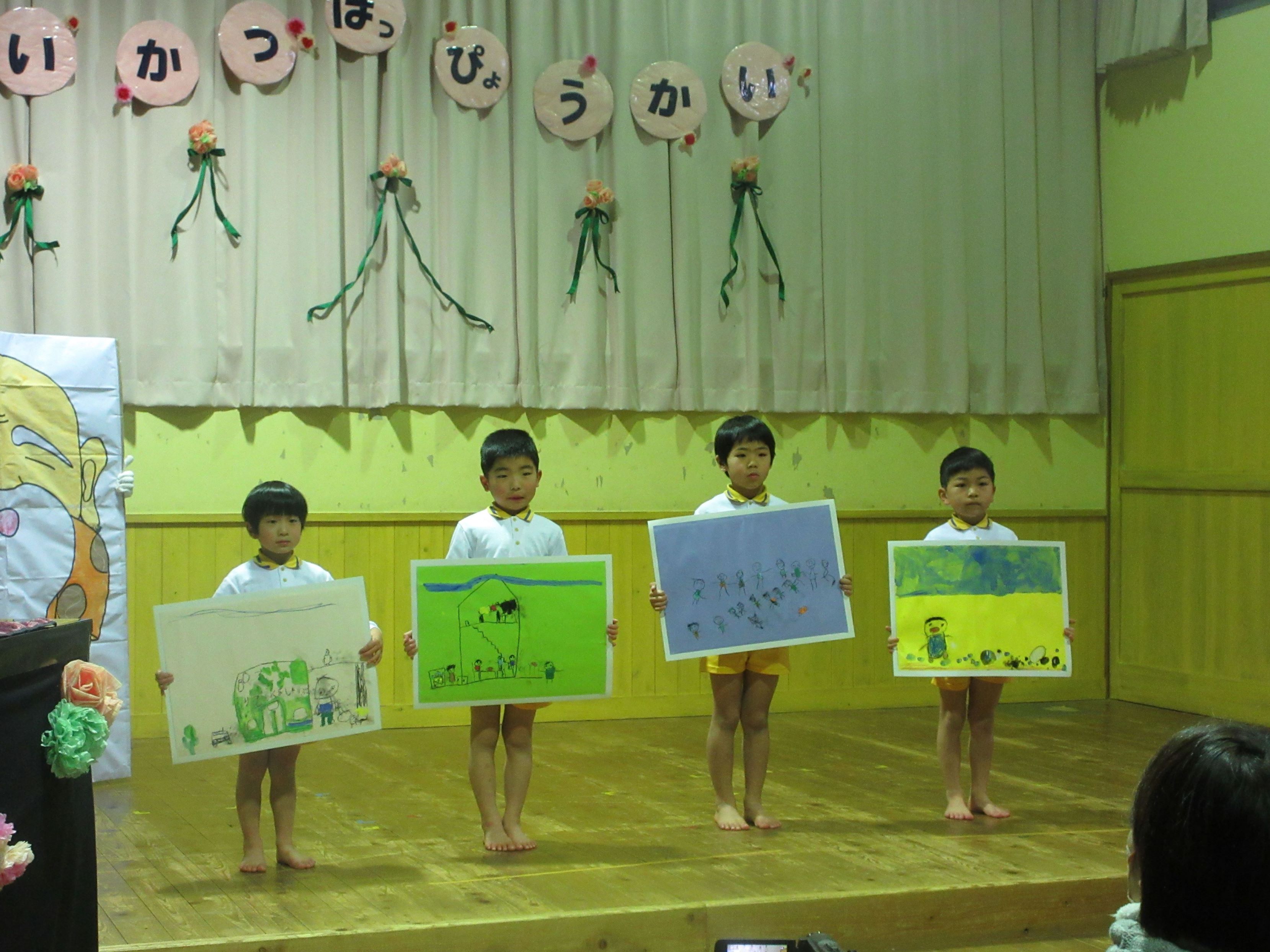 今年の発表会も、クラスごとに保護者の方に見てもらいました。どのクラスの子どもも、練習の時以上の力を発揮することが出来ました。小さいクラスのほし組は、保護者の姿が見えても泣くことなくかわいい姿を見せていました。ゆめ・そら組は、初めは声が小さくて恥ずかしそうにしていましたが、途中から大きな声で元気な姿を披露していました。にじ組は、一人一人が自分の力を出し切って成長した姿を見せてくれました。今日の頑張りが、これからの自信に繋がっていくと思います。