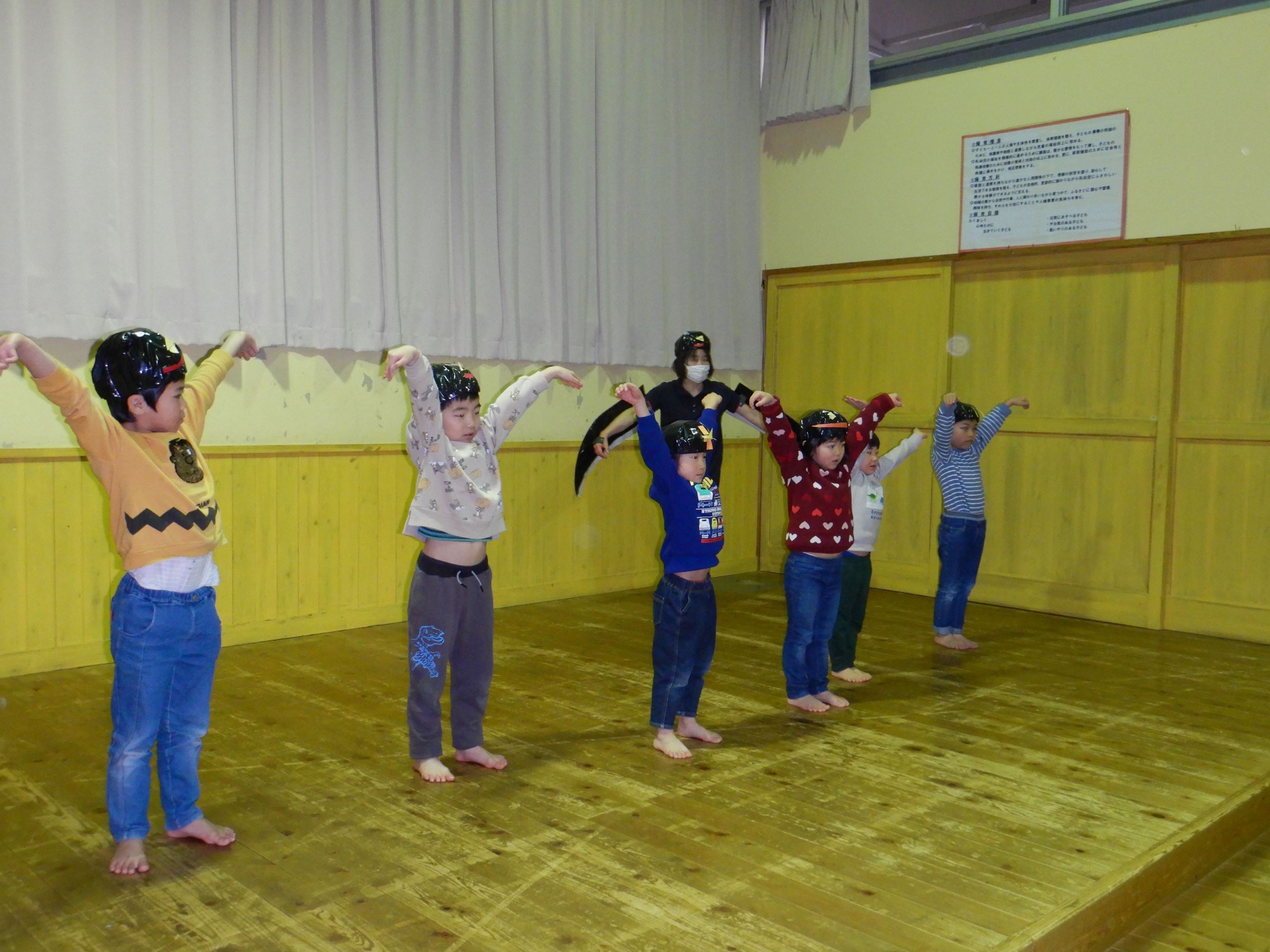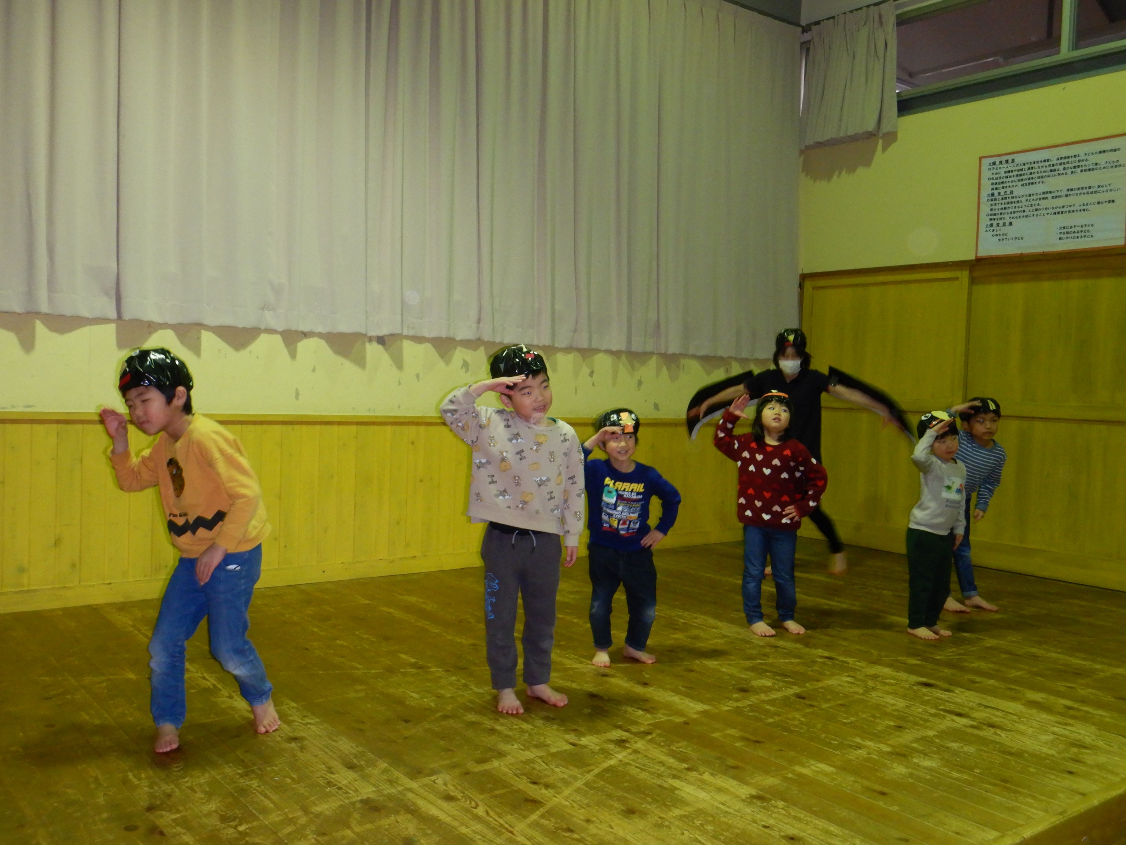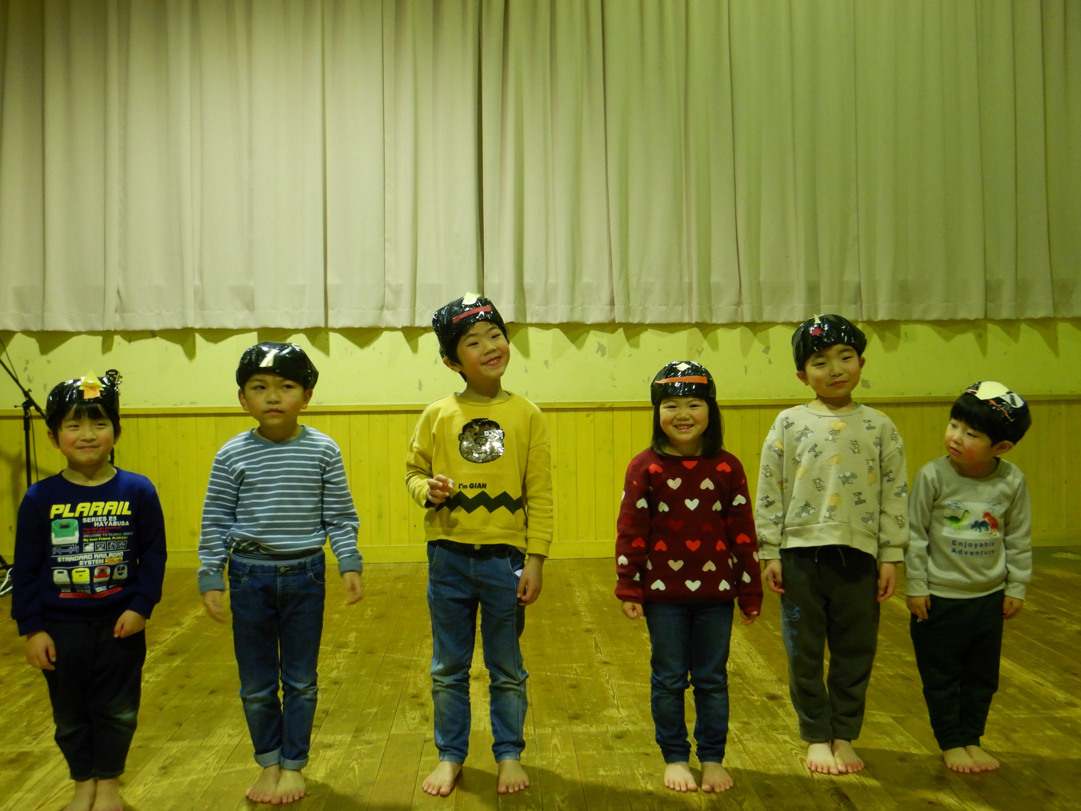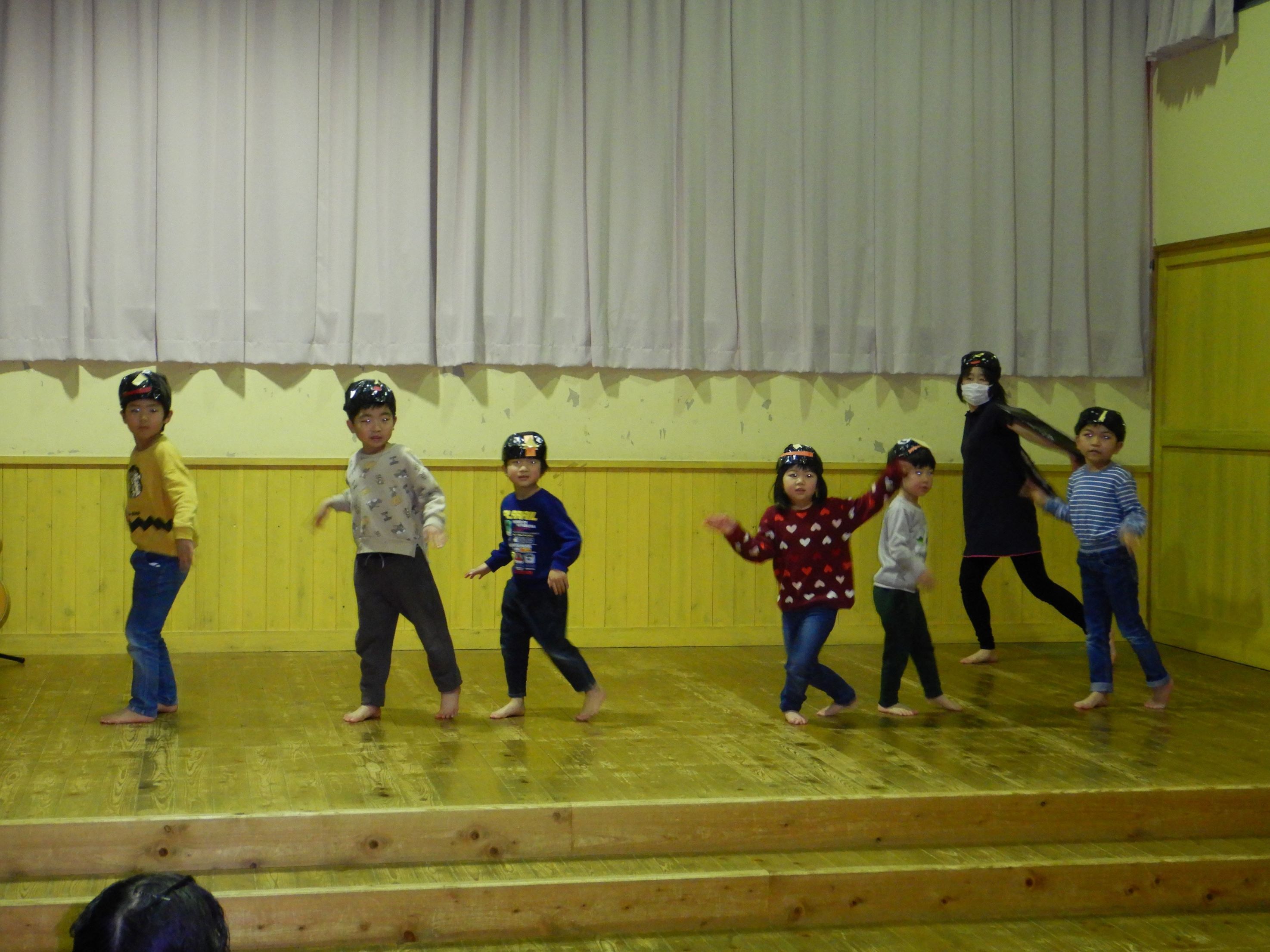 そして、もう1つサプライズで、にじ組の子ども達が『ツバメ』を踊り、誕生会を盛り上げました。手作りのツバメ帽子を被り、楽しんで踊っていた子ども達を見て、会場に笑顔が溢れました。