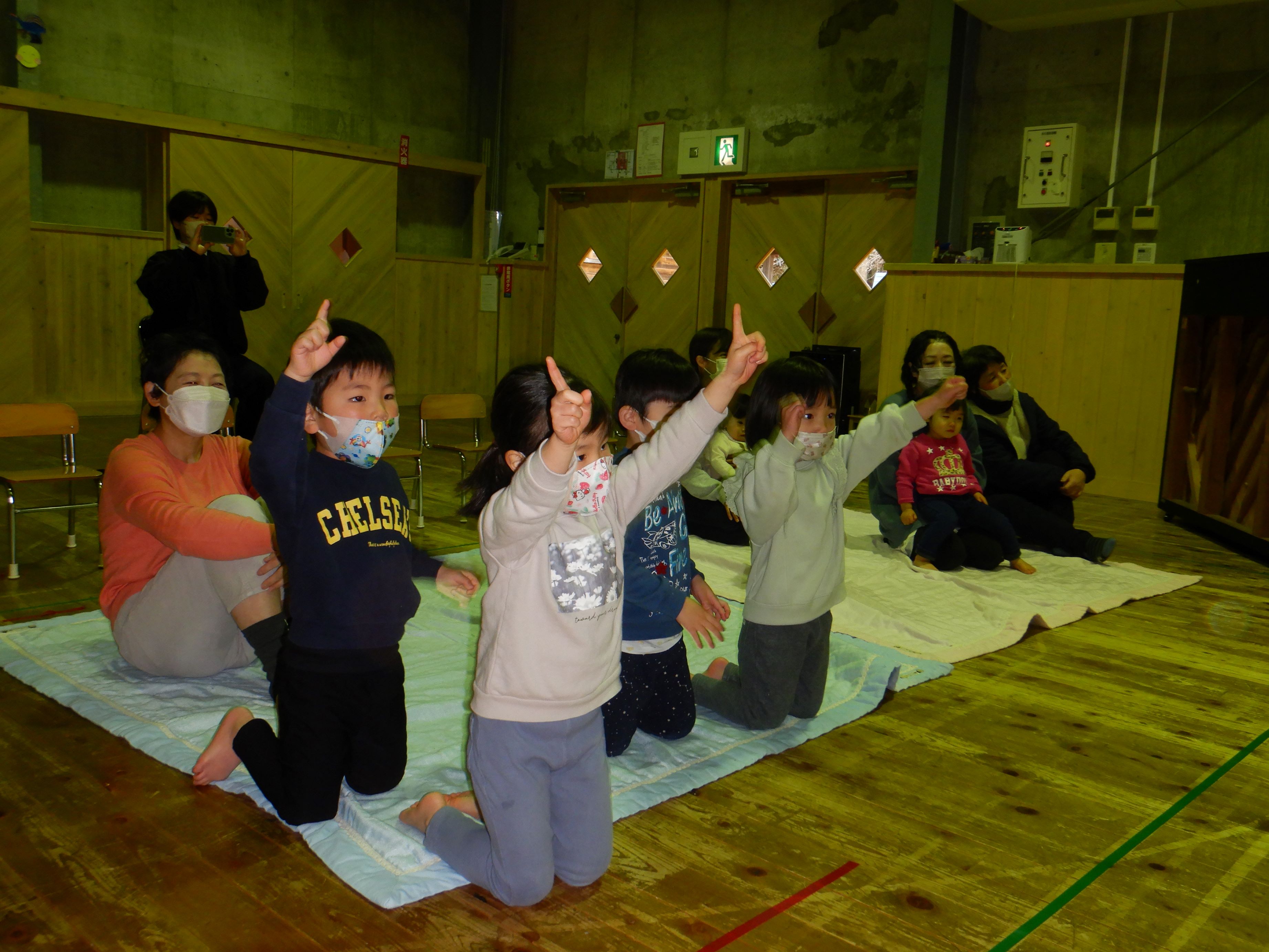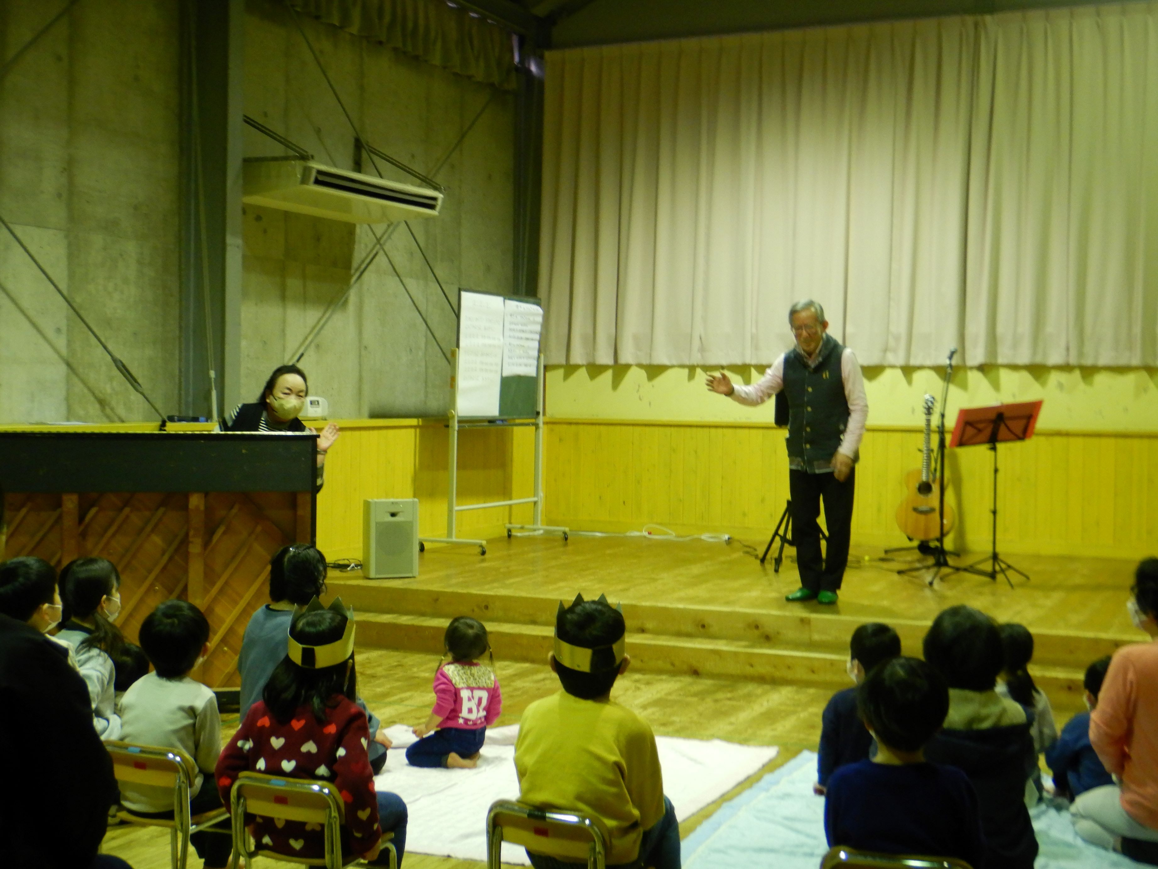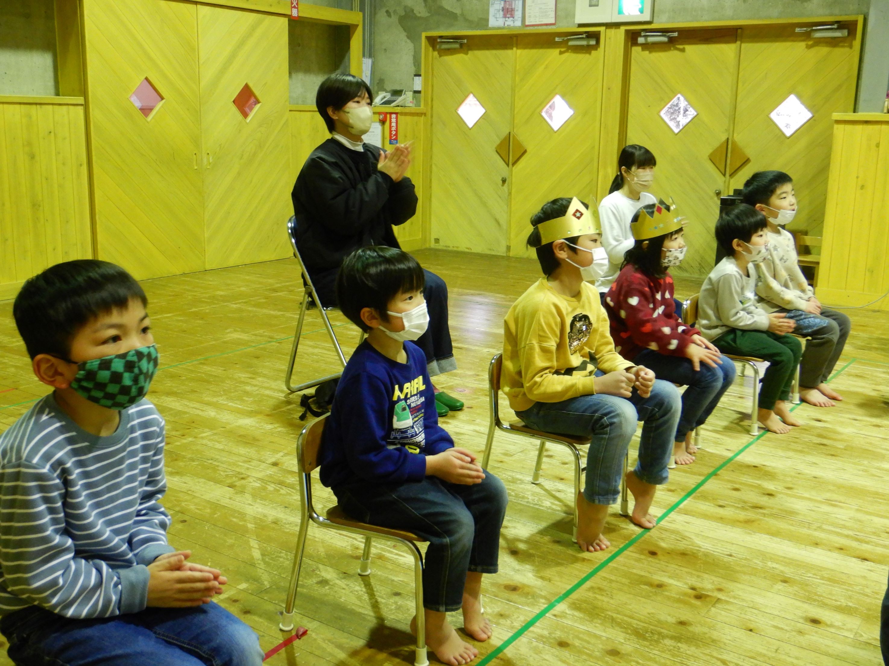 今回はスペシャルゲストにおっくんバンドが登場しました。おっくんのギターとうっちーのピアノに合わせて、みんなで手拍子をしたり、体を動かしたりしながら楽しみました。