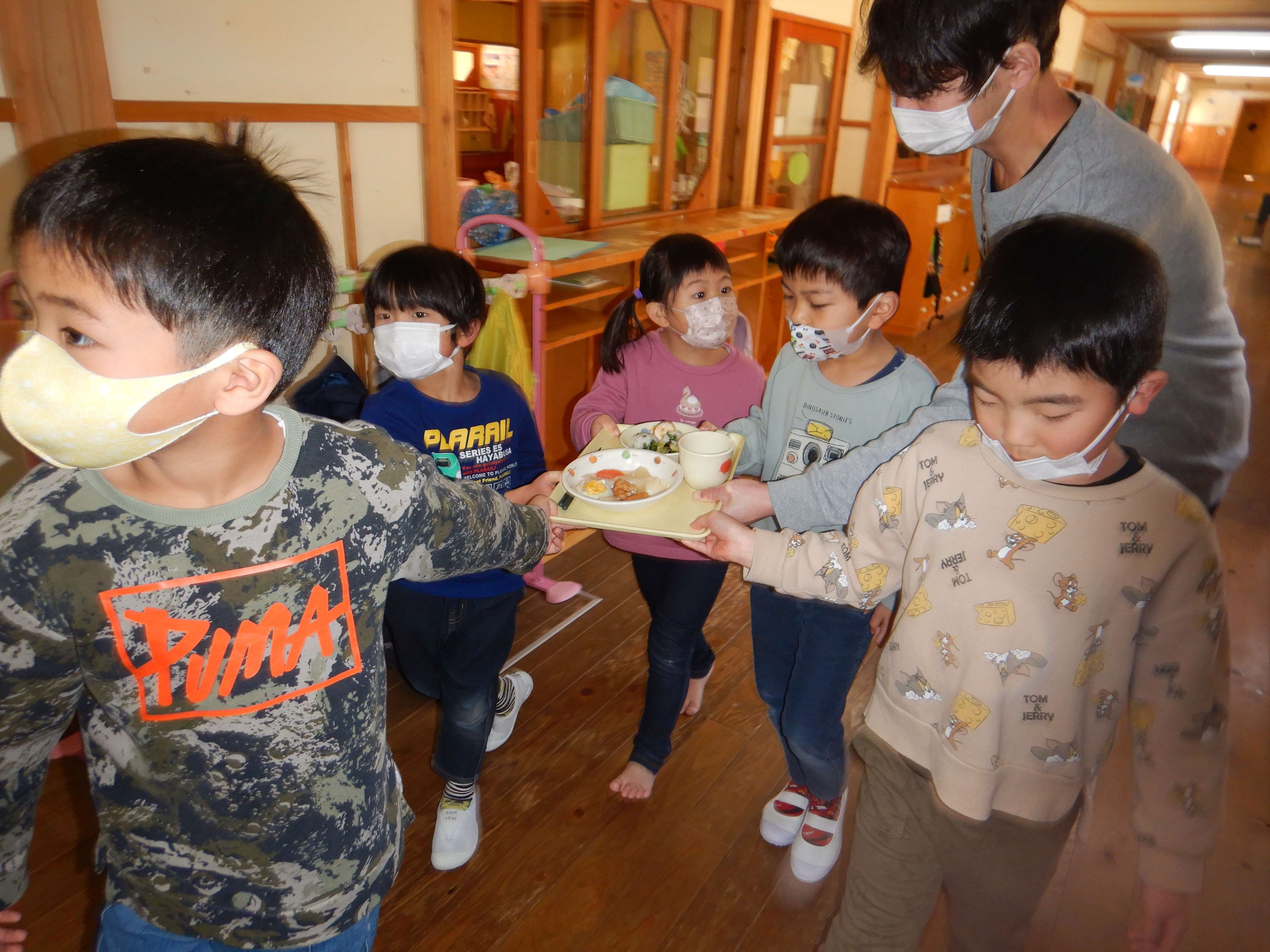 できあがったおでんを、職員室に運びます。