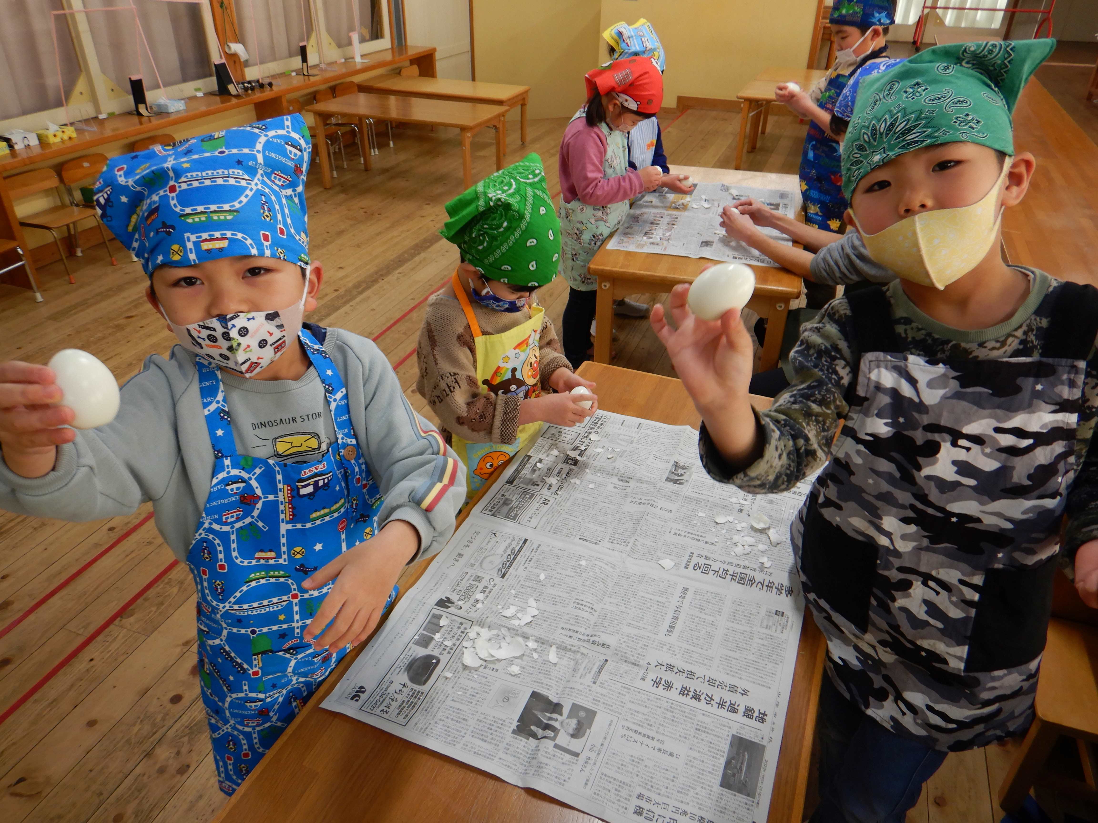 卵の殻むき、上手にむけました!
