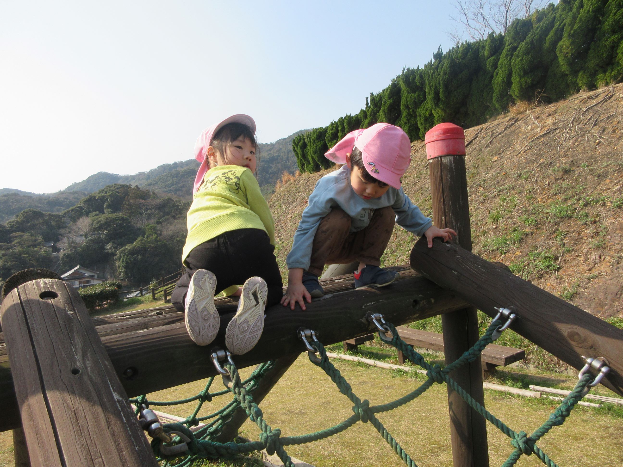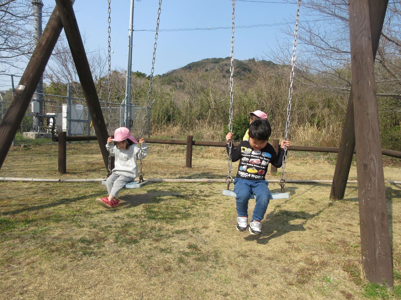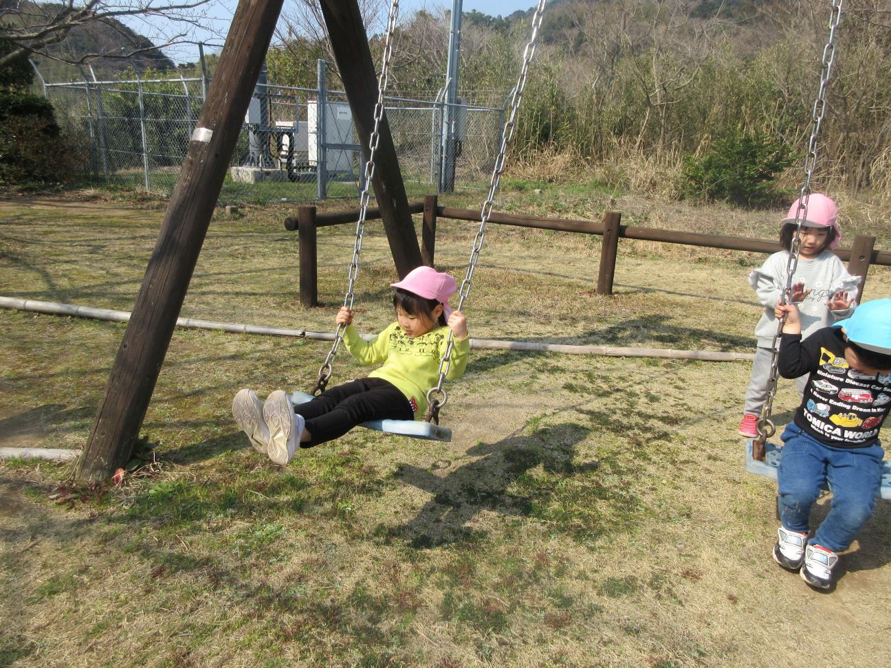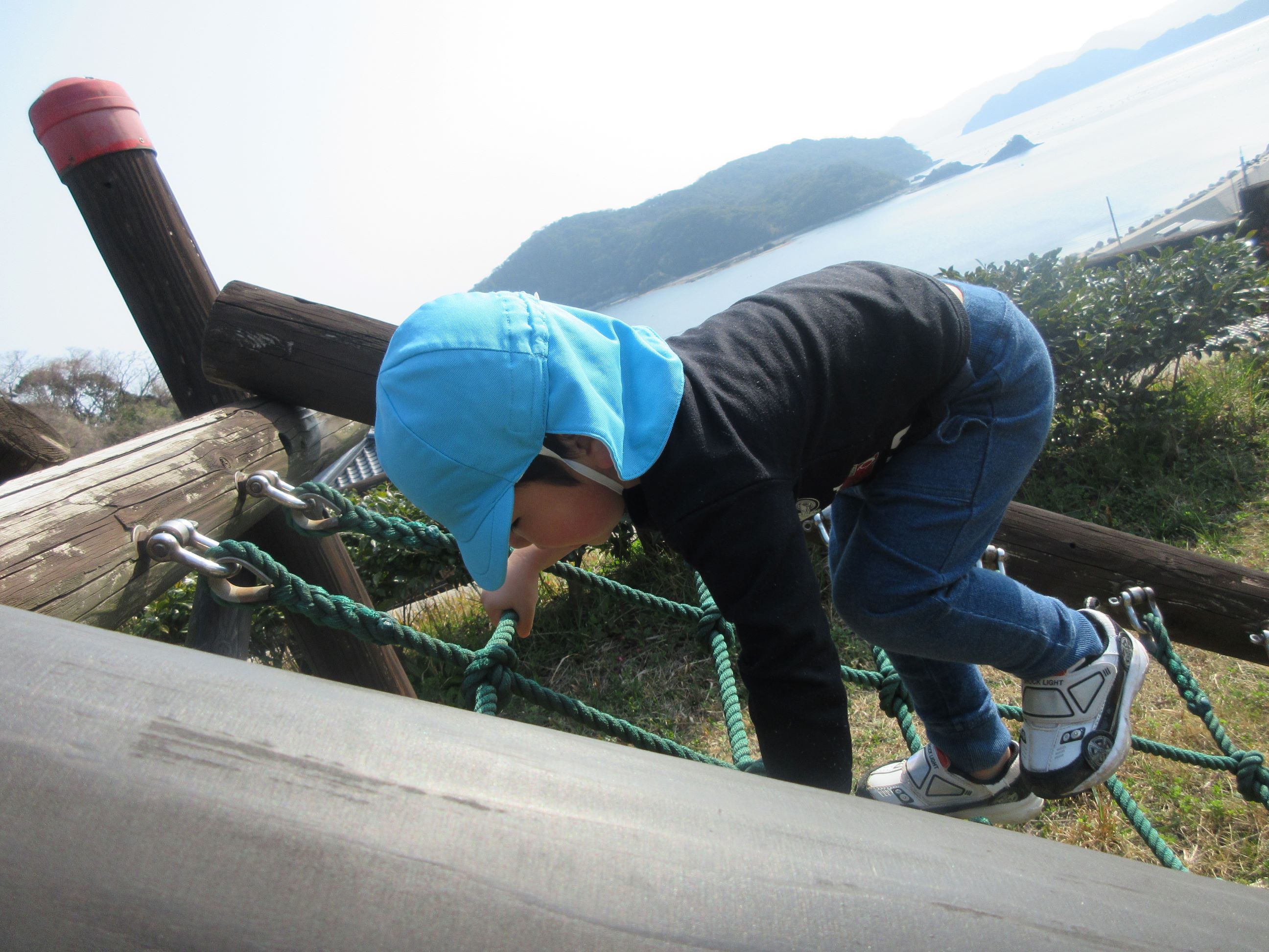 公園に着いて、ひと休みしてから遊具へ向かいました。ネットの遊具やばねのついた動物、ブランコと思い思いに楽しく遊びました。