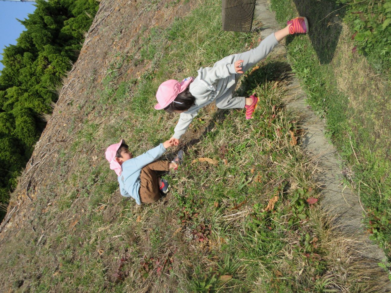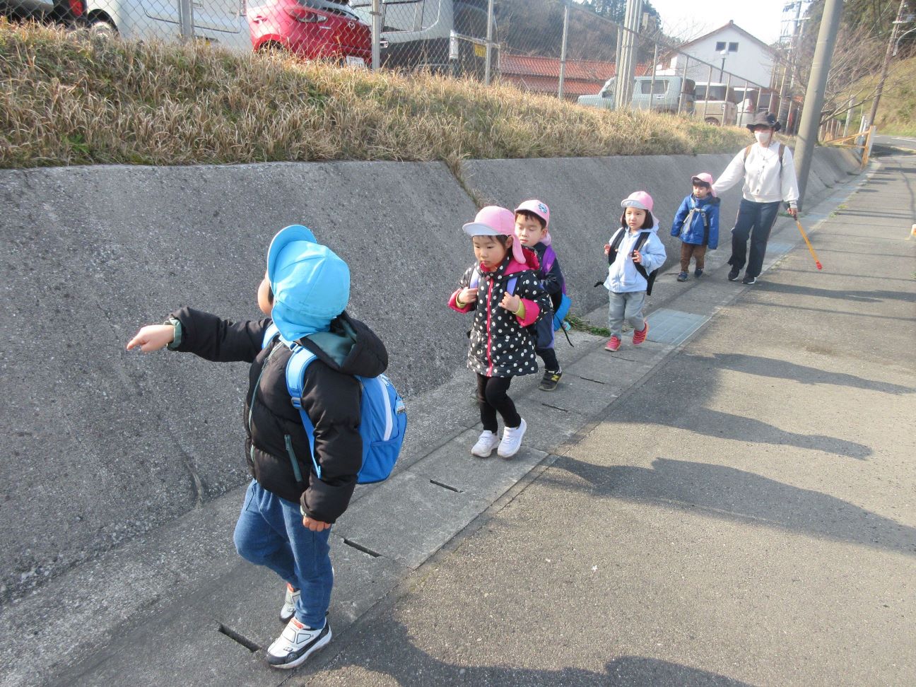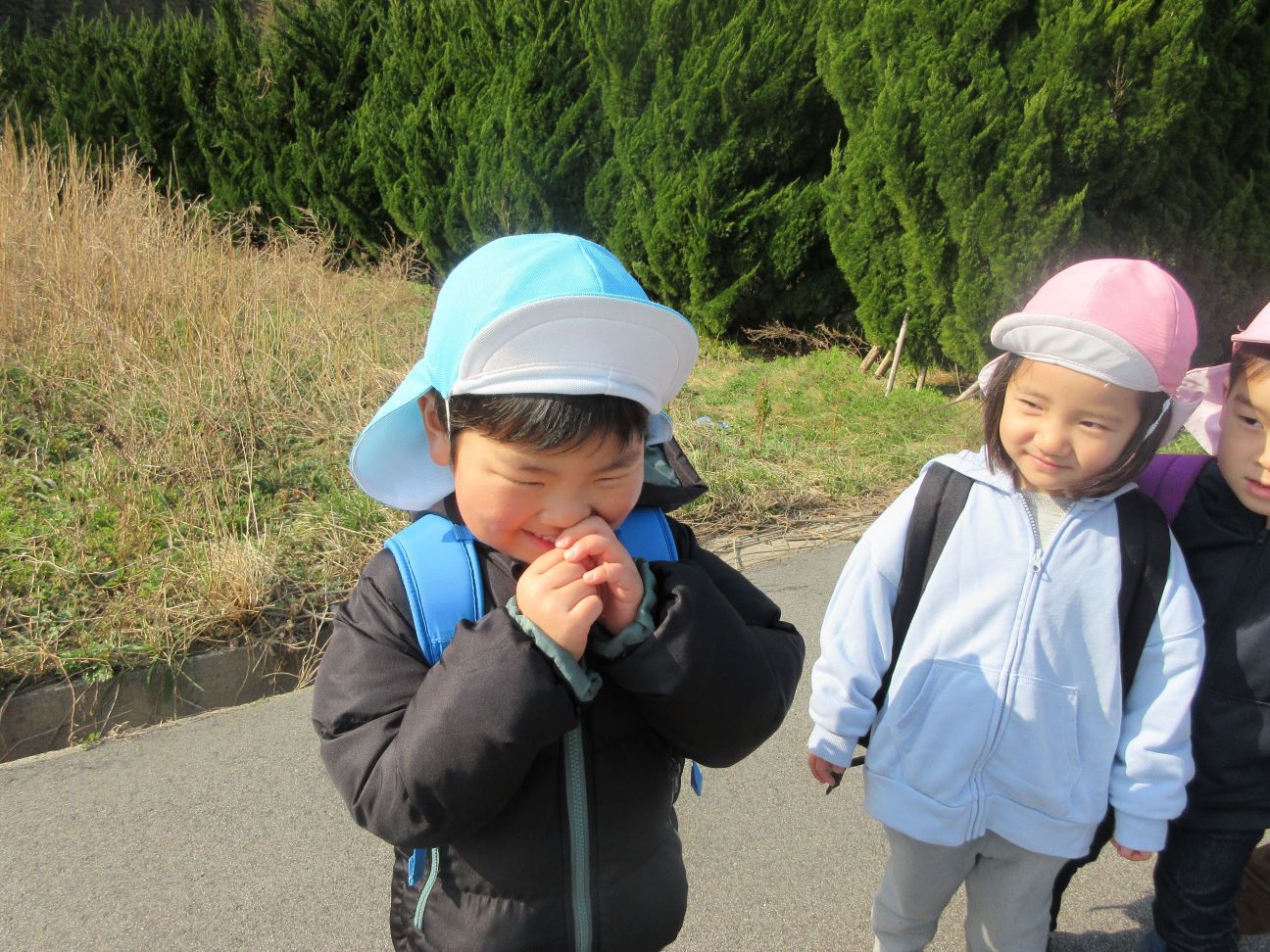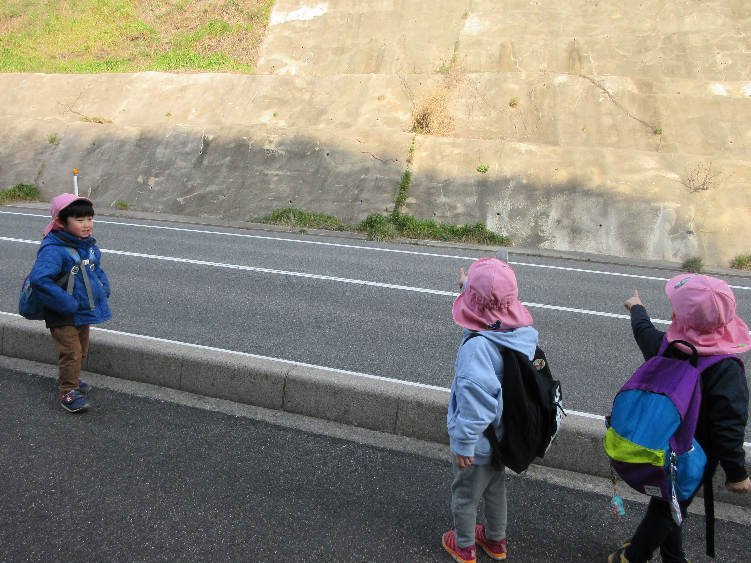今日は、子ども達が大好きな『お弁当の日』。これに合わせて、お散歩を計画しました。行き先は『瀬崎公園』。そら組は一度行ったことがあるので、知っている道をどんどん歩いて行きました。ゆめ組は初めて行くので、朝からずっと「たのしみ~」と口元に両手をあてながら、弾むような足取りで歩いていました。