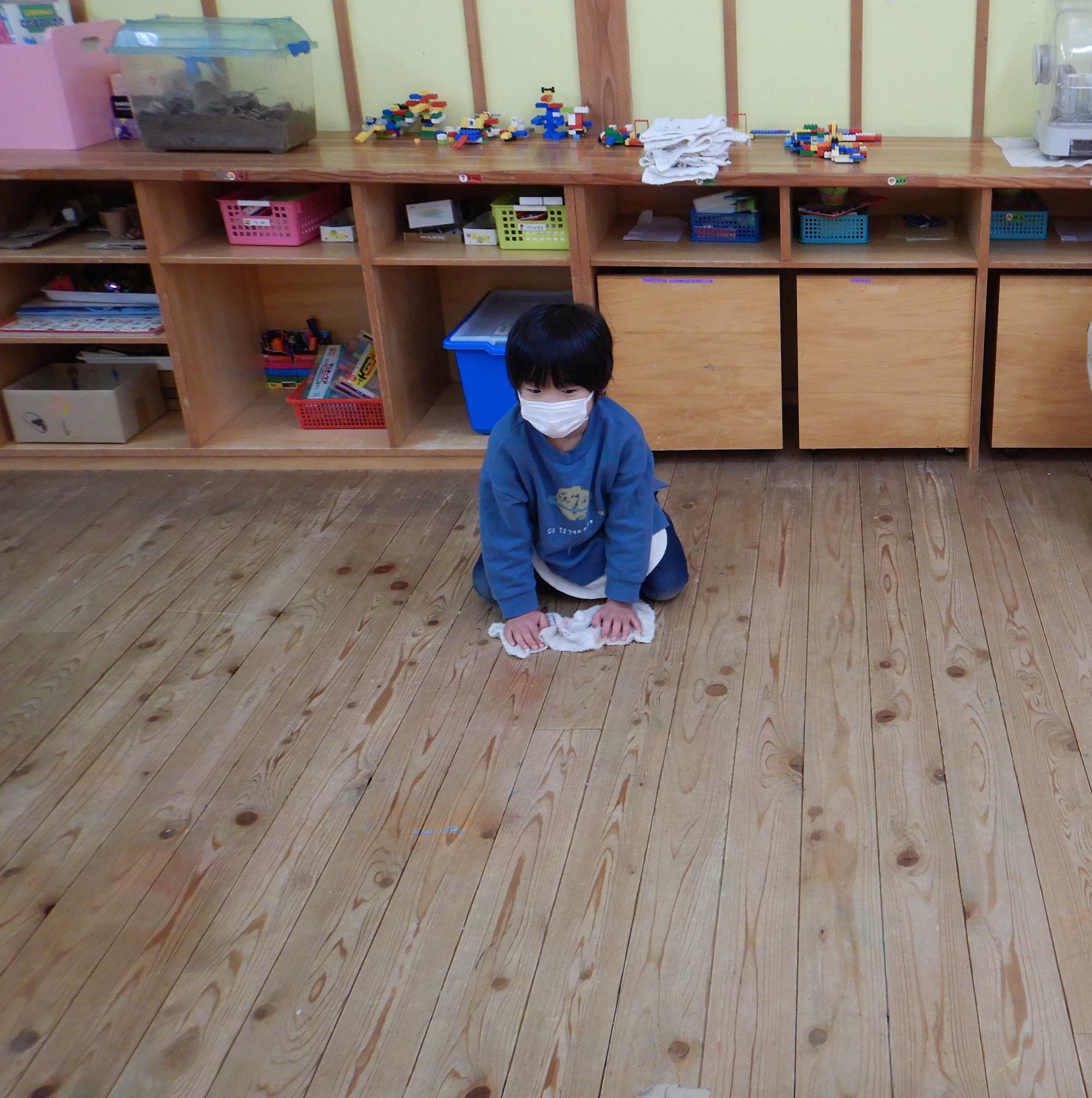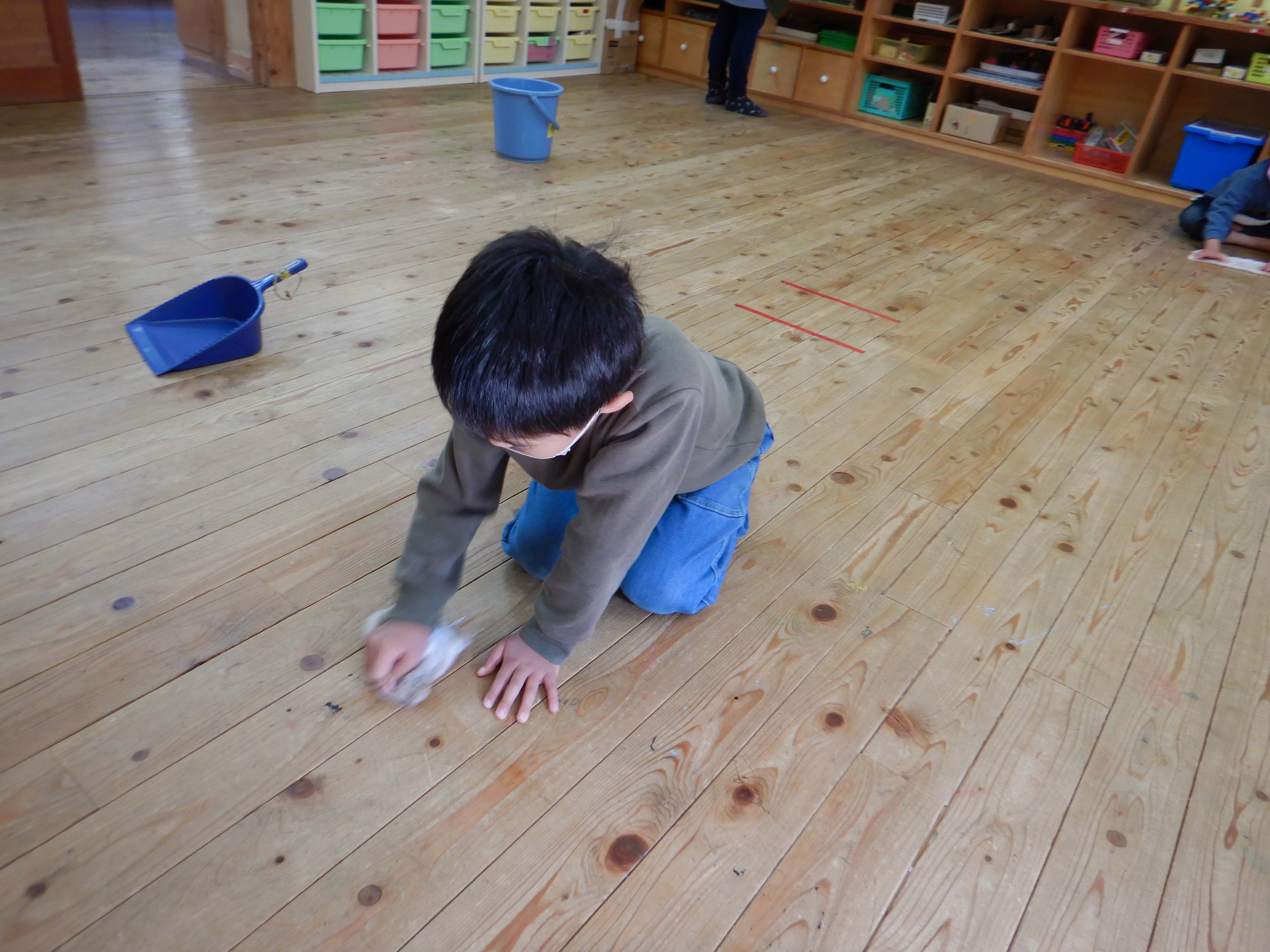 雑巾がけを、隅々までしていました。