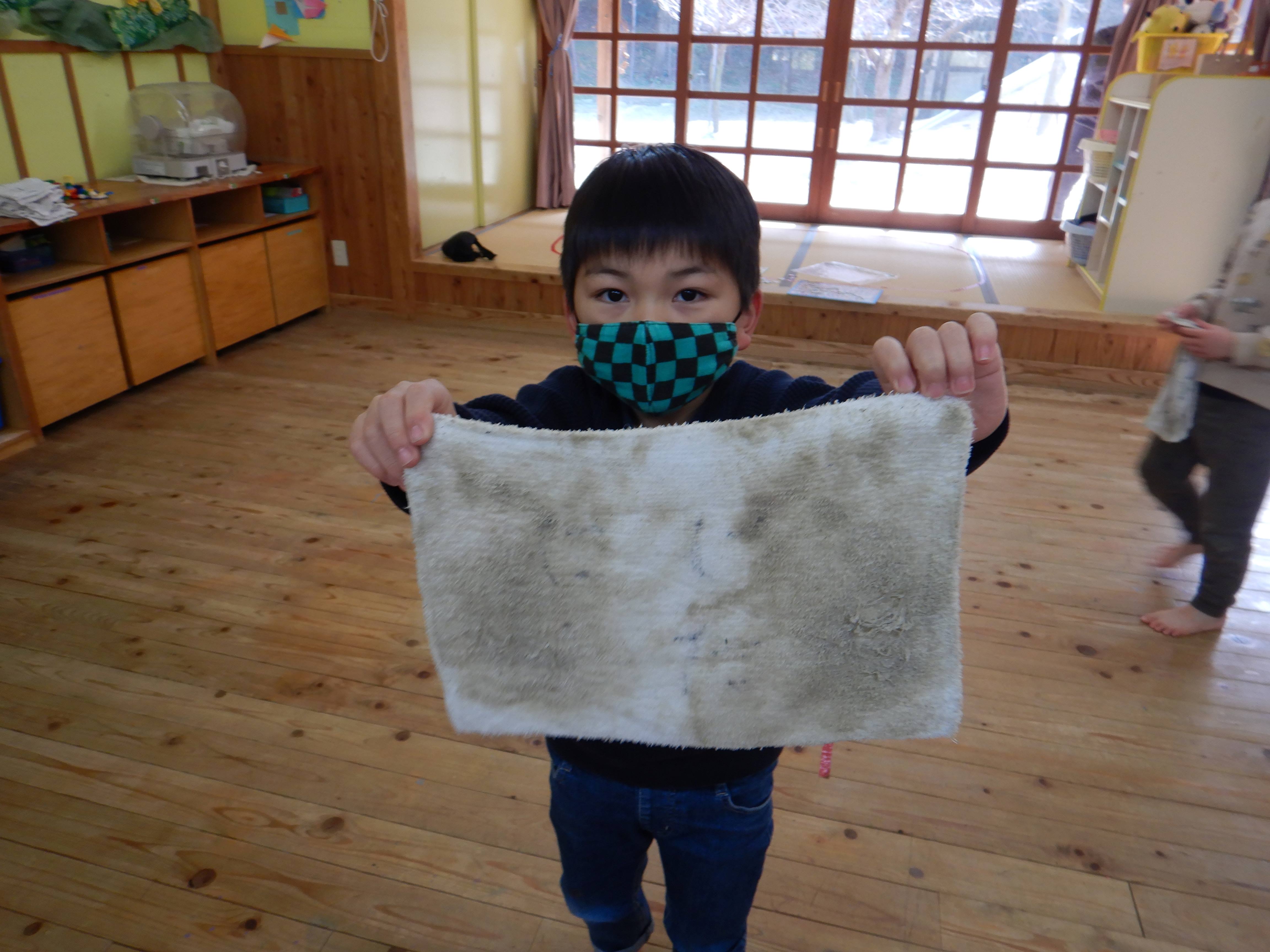 頑張った証です!みんなの雑巾も、同じように黒くなっていましたよ。