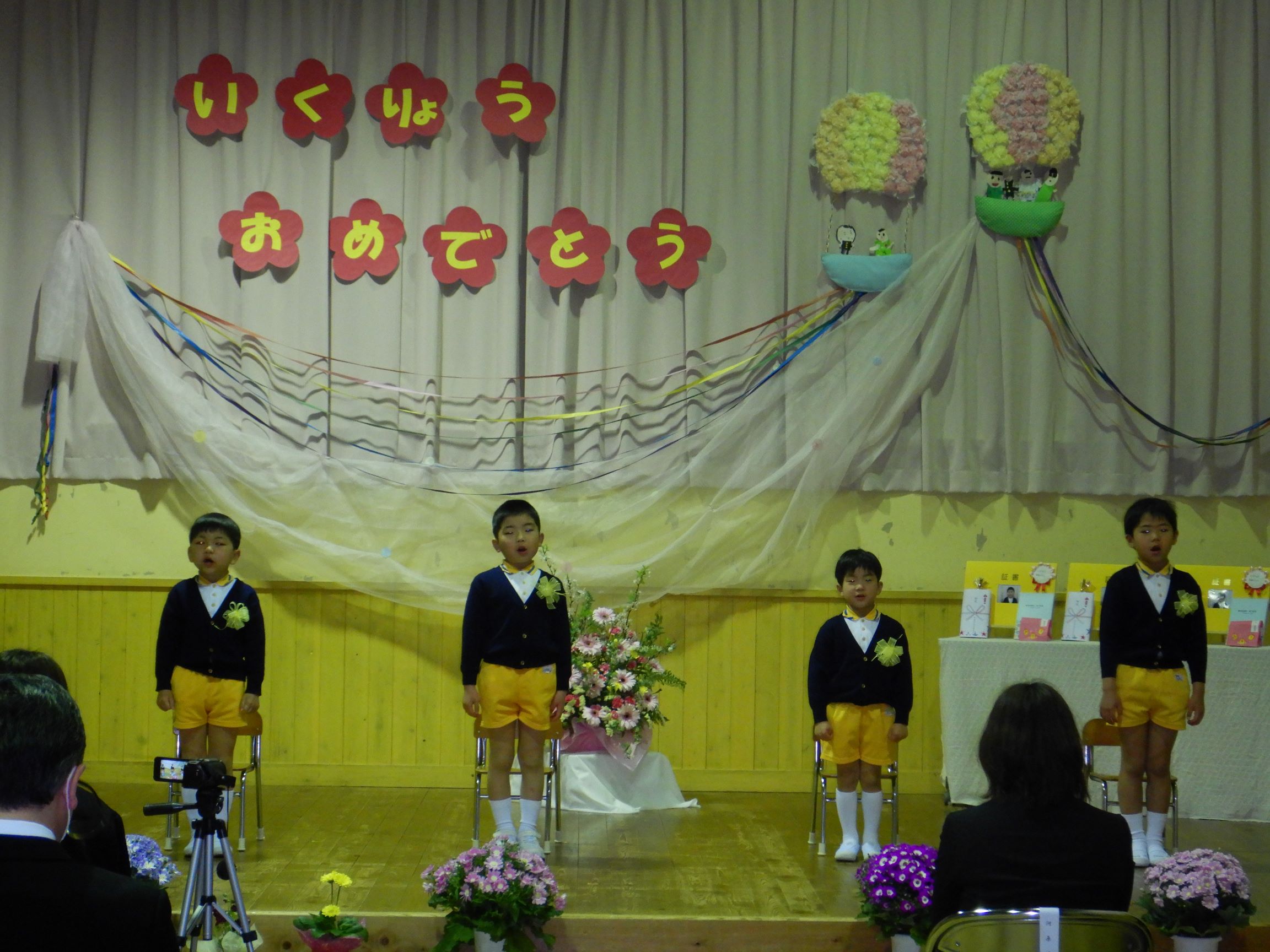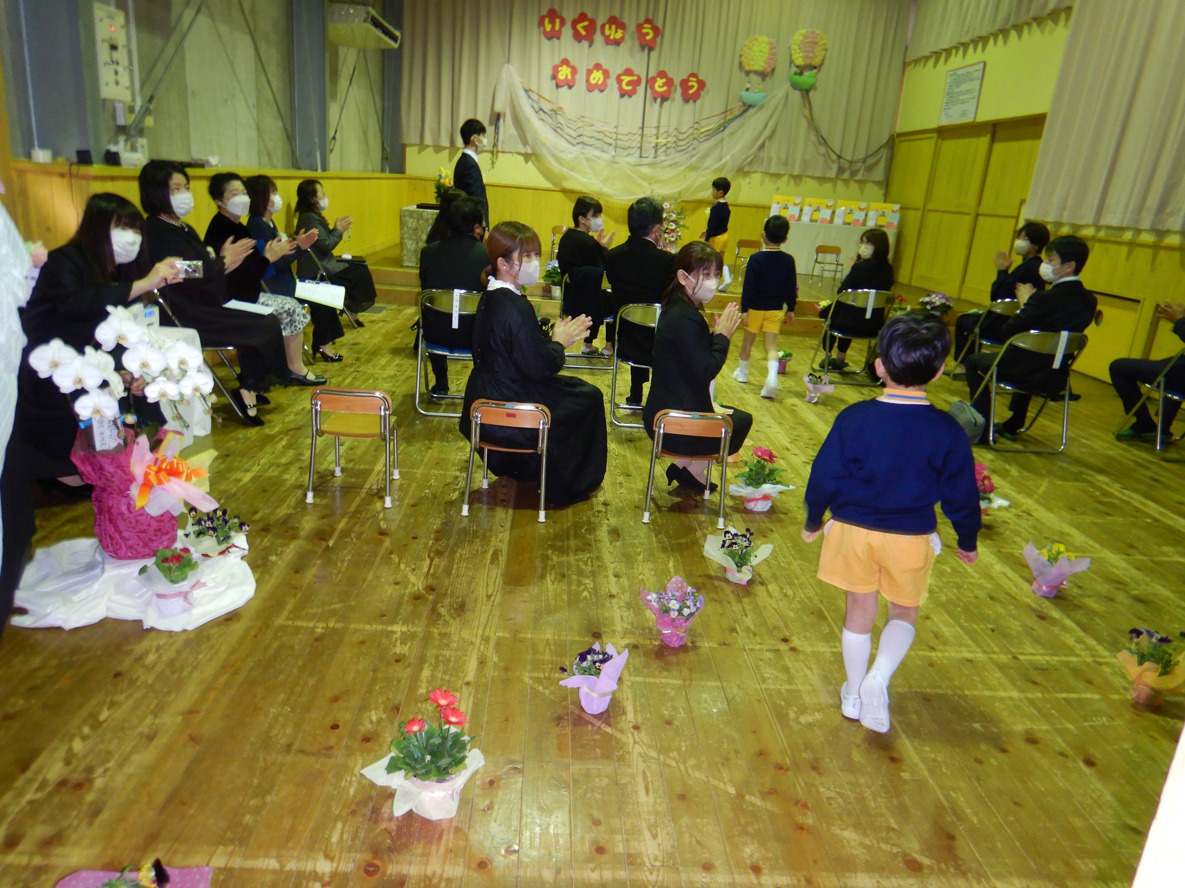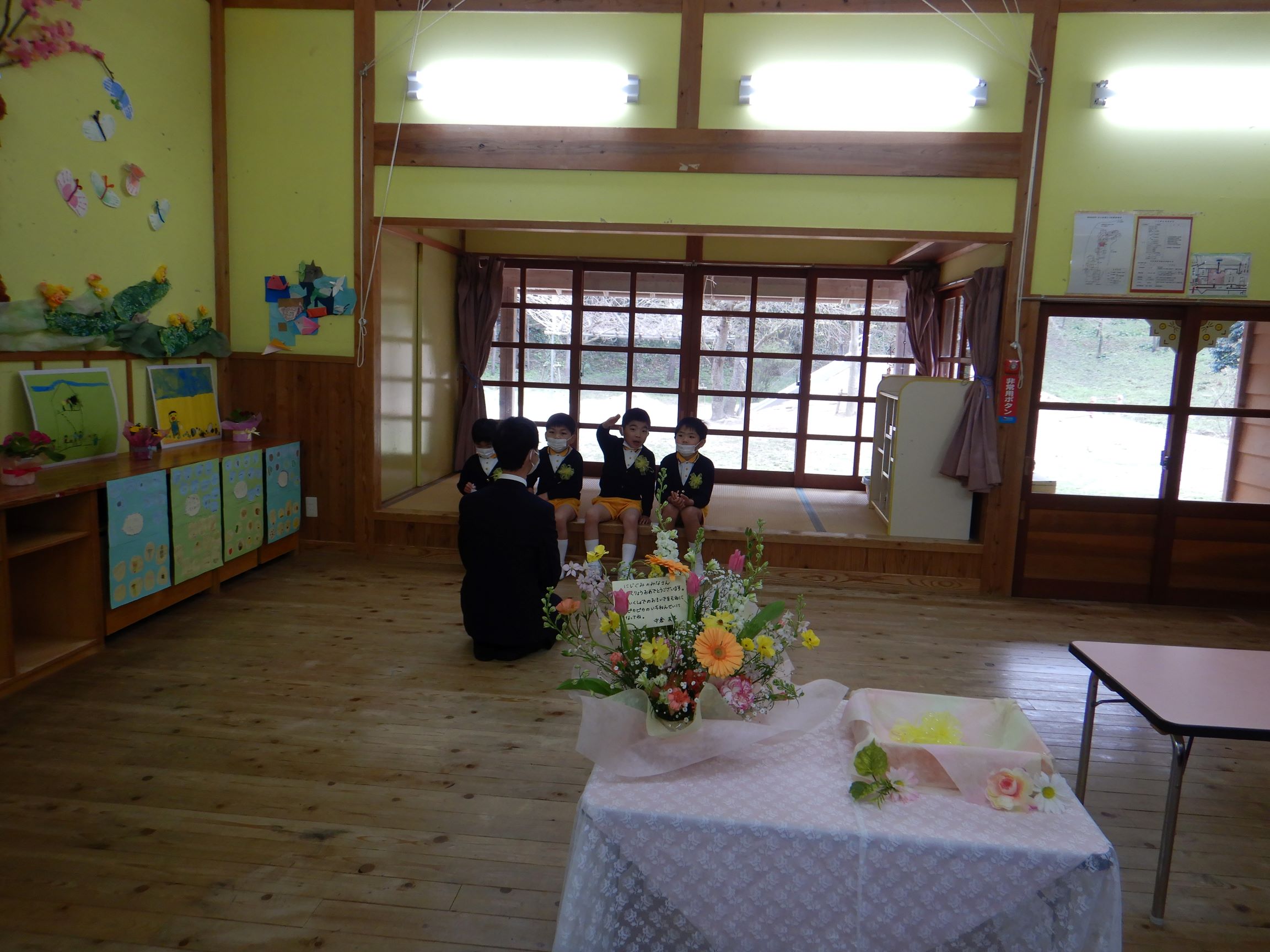 在所児の歌や思い出とお祝いの言葉を録音したものを聞いたり、1年間の思い出を歌や言葉にのせて伝えました。1年間、いろいろな経験をして、沢山の思い出が出来た事、嬉しかったことや頑張ったことが伝わってきました。