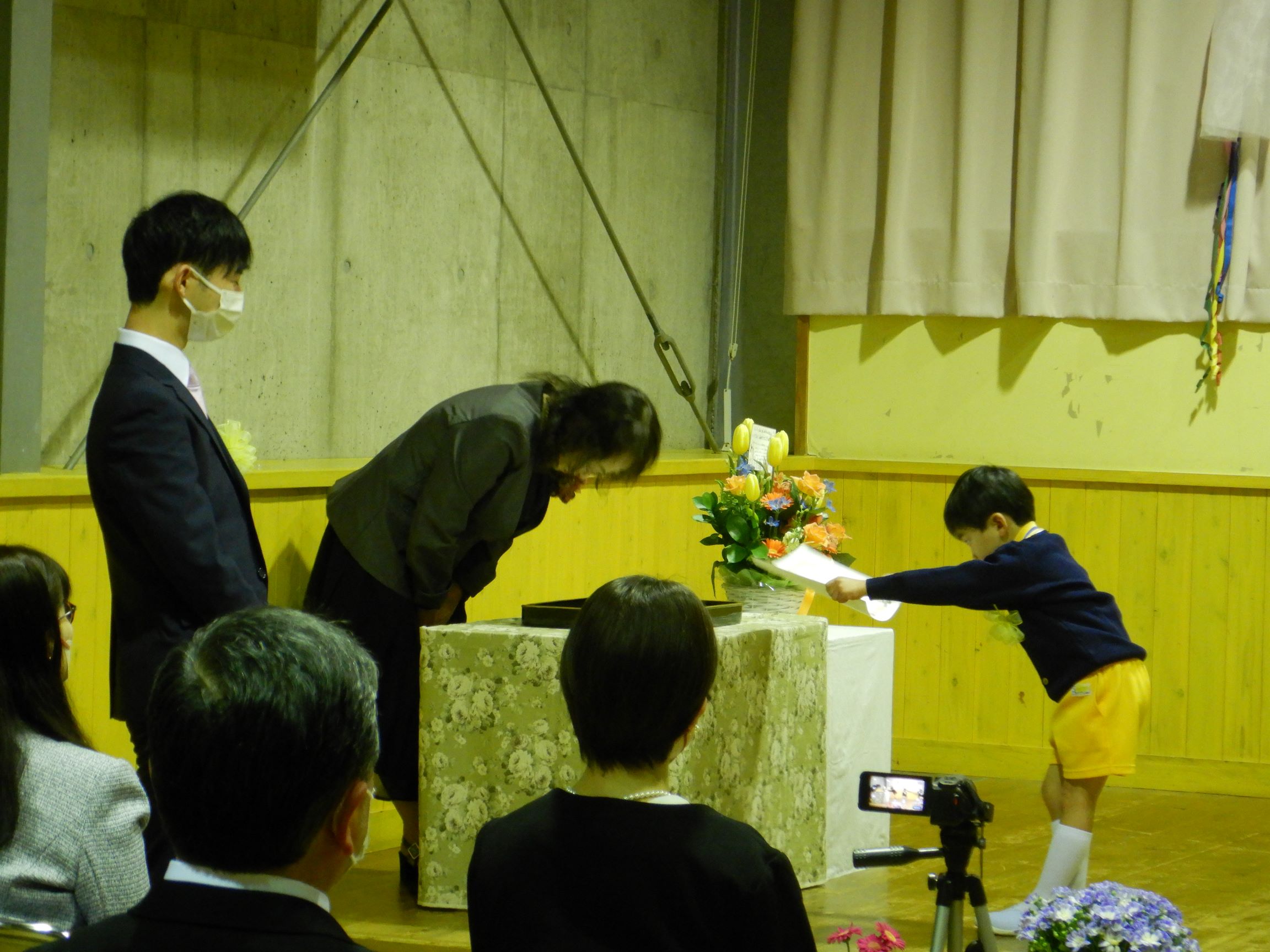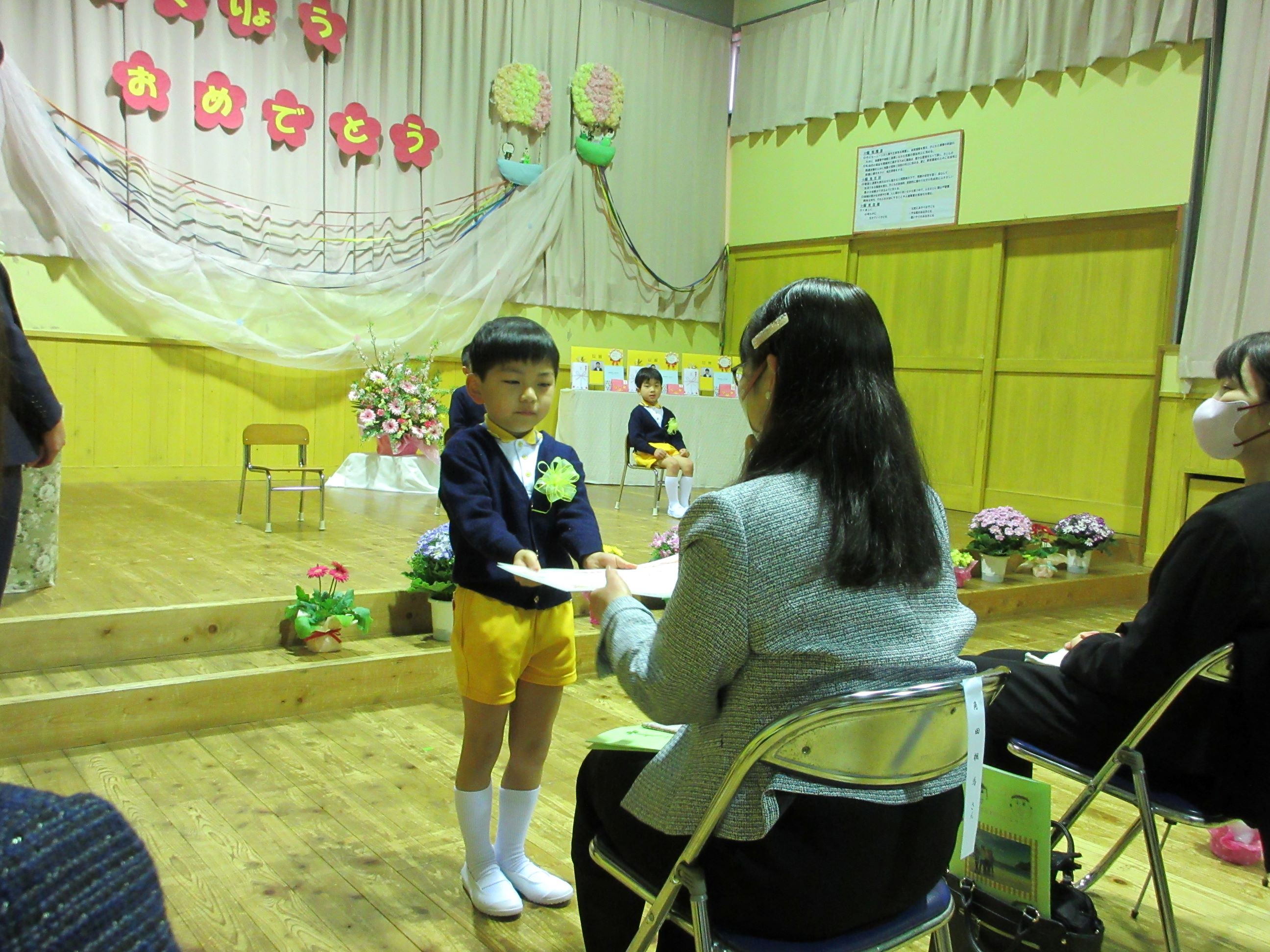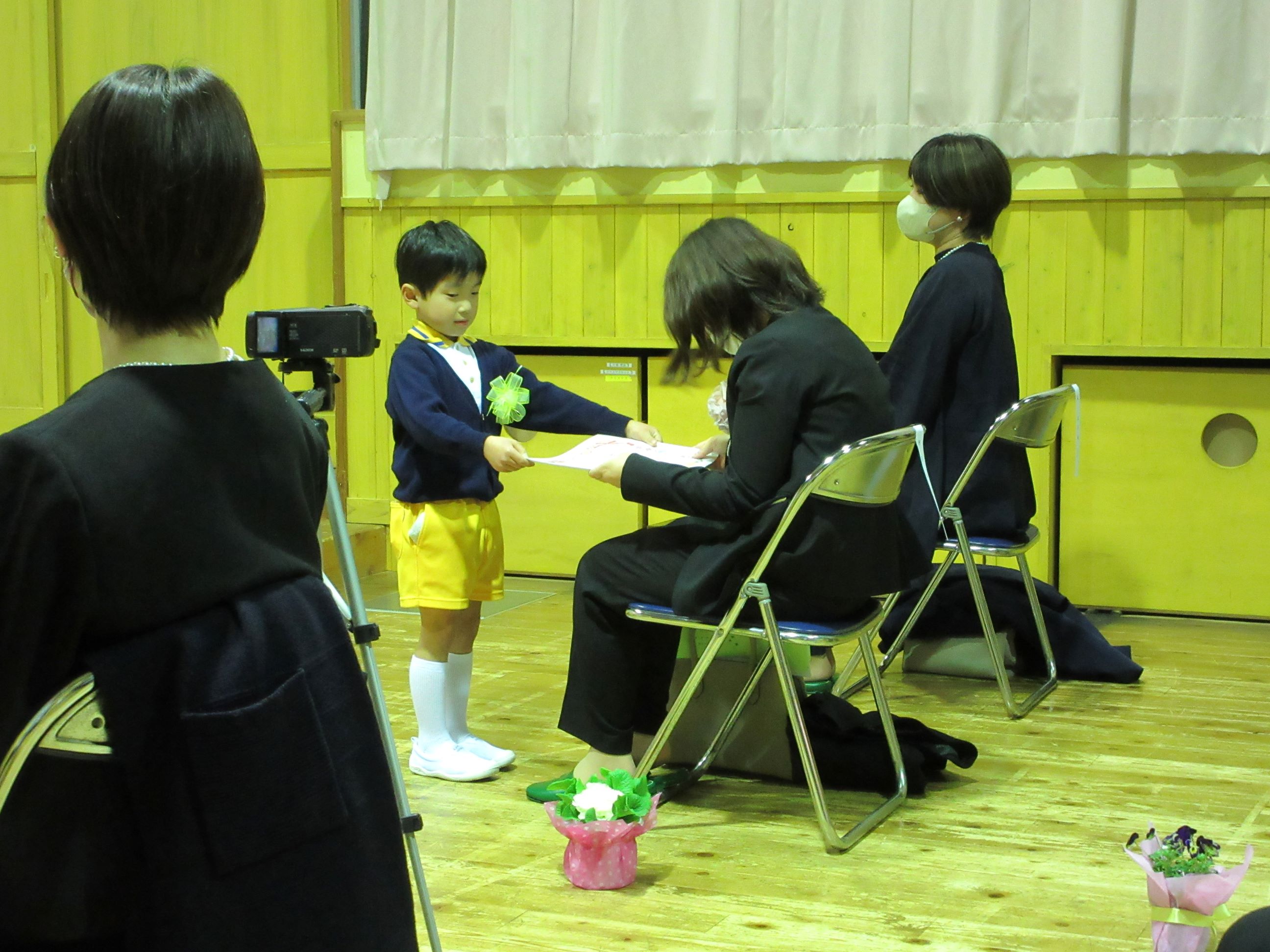 名前を呼ばれると元気よく返事をして歩き、所長先生から育了証書をいただきました。お母さんに育了証書を手渡す姿に、胸が熱くなりました。