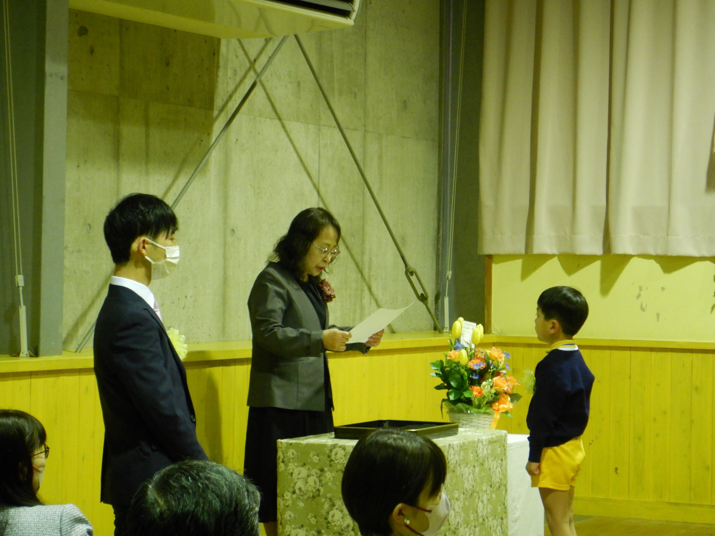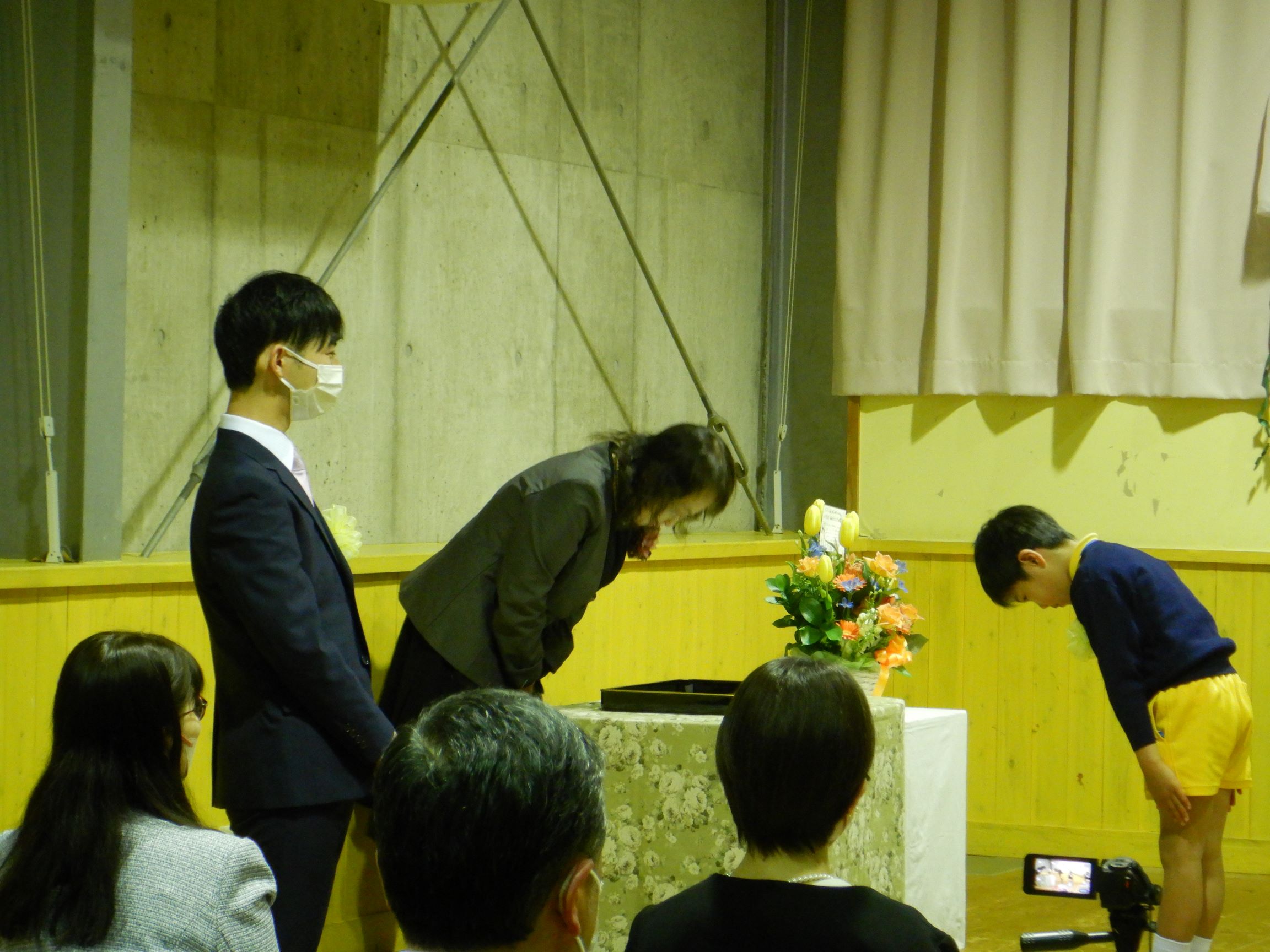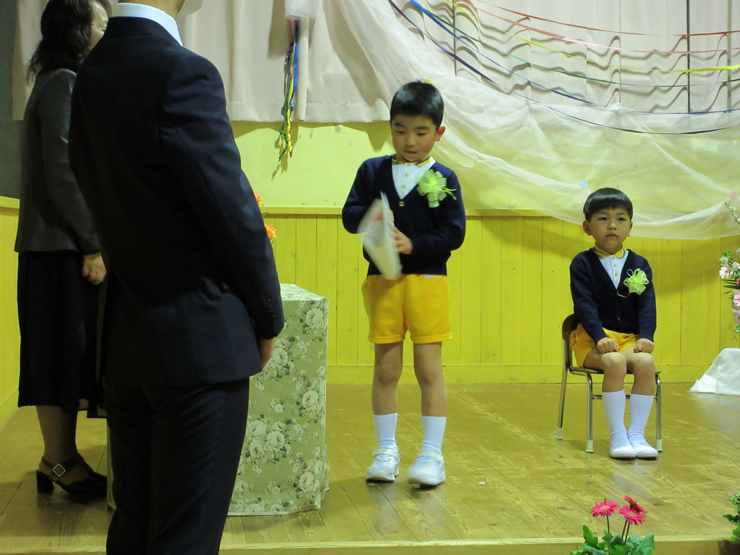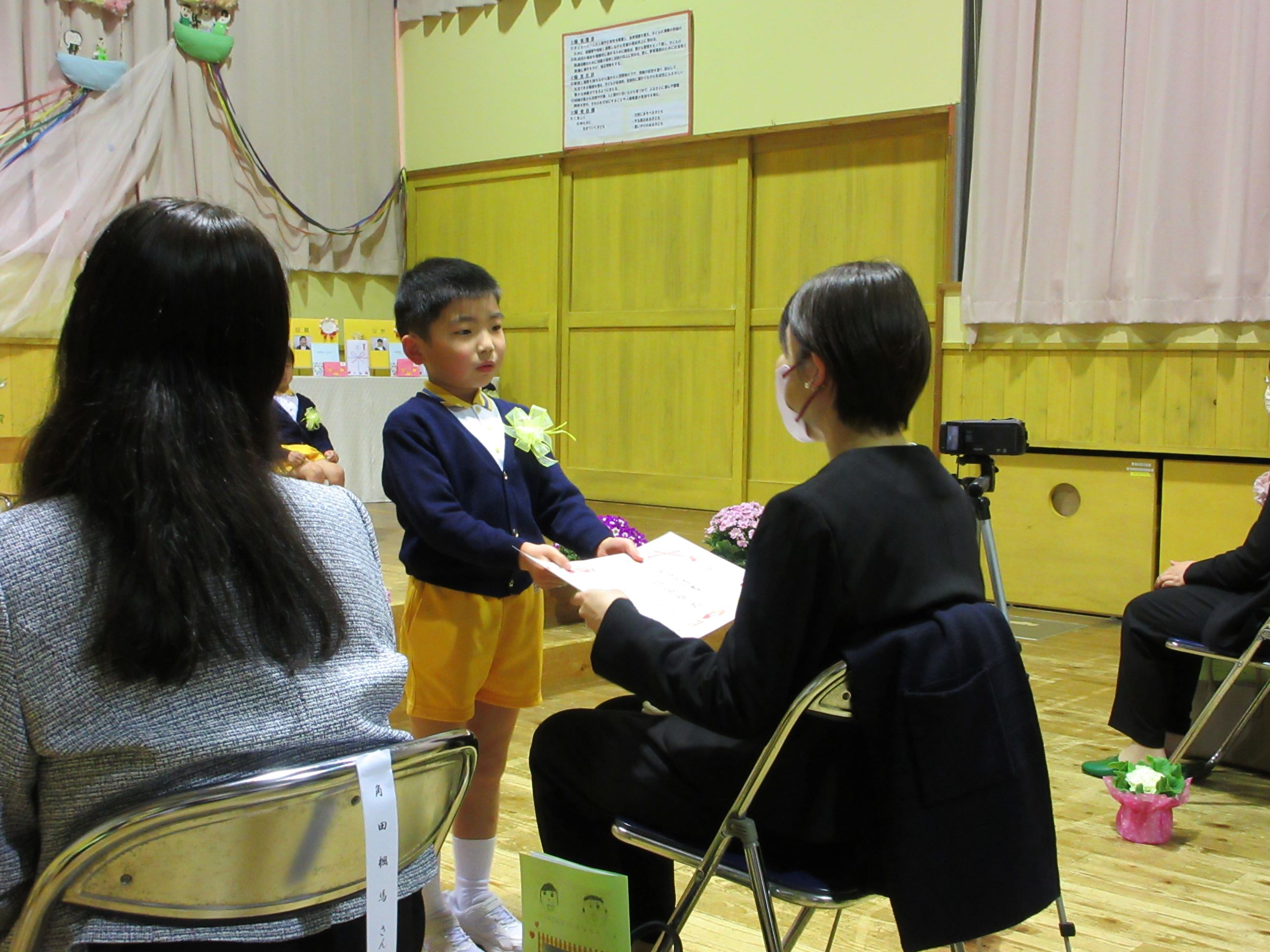 名前を呼ばれると元気よく返事をして歩き、所長先生から育了証書をいただきました。お母さんに育了証書を手渡す姿に、胸が熱くなりました。