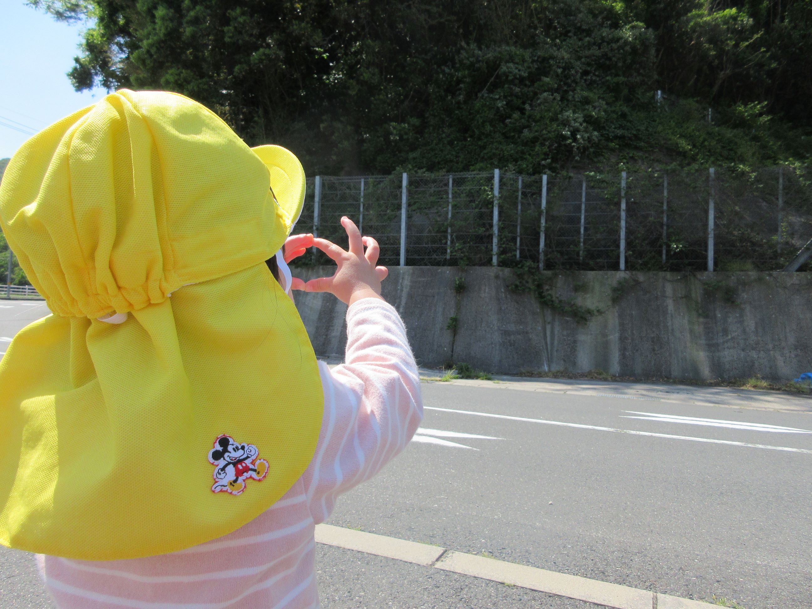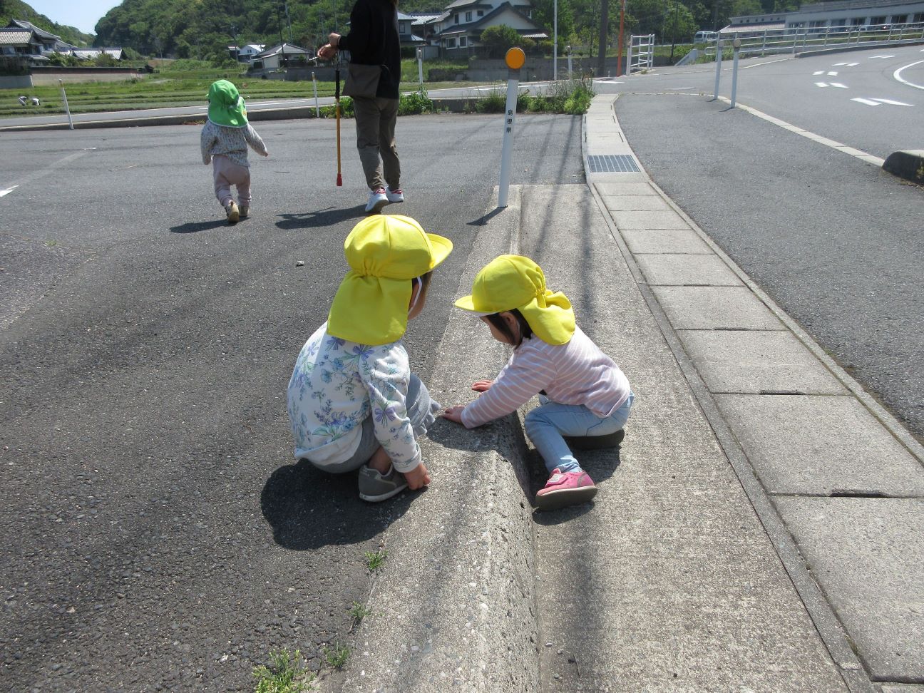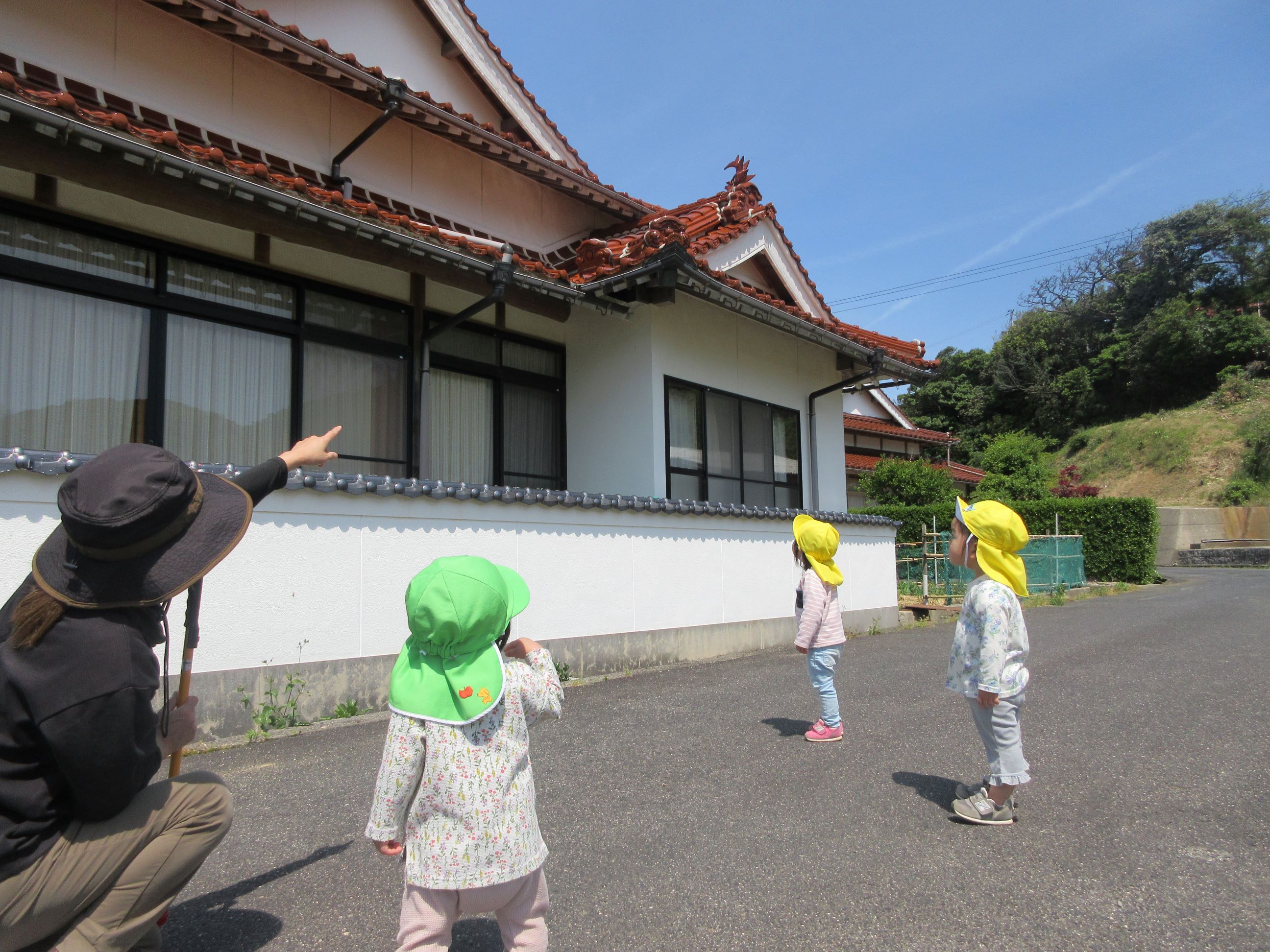 田んぼの中におたまじゃくしを見つけたり、出会った方に「こんにちは」と挨拶をしたり、神社の狛犬に「わんわん」と言ったりして、散歩を楽しみました。