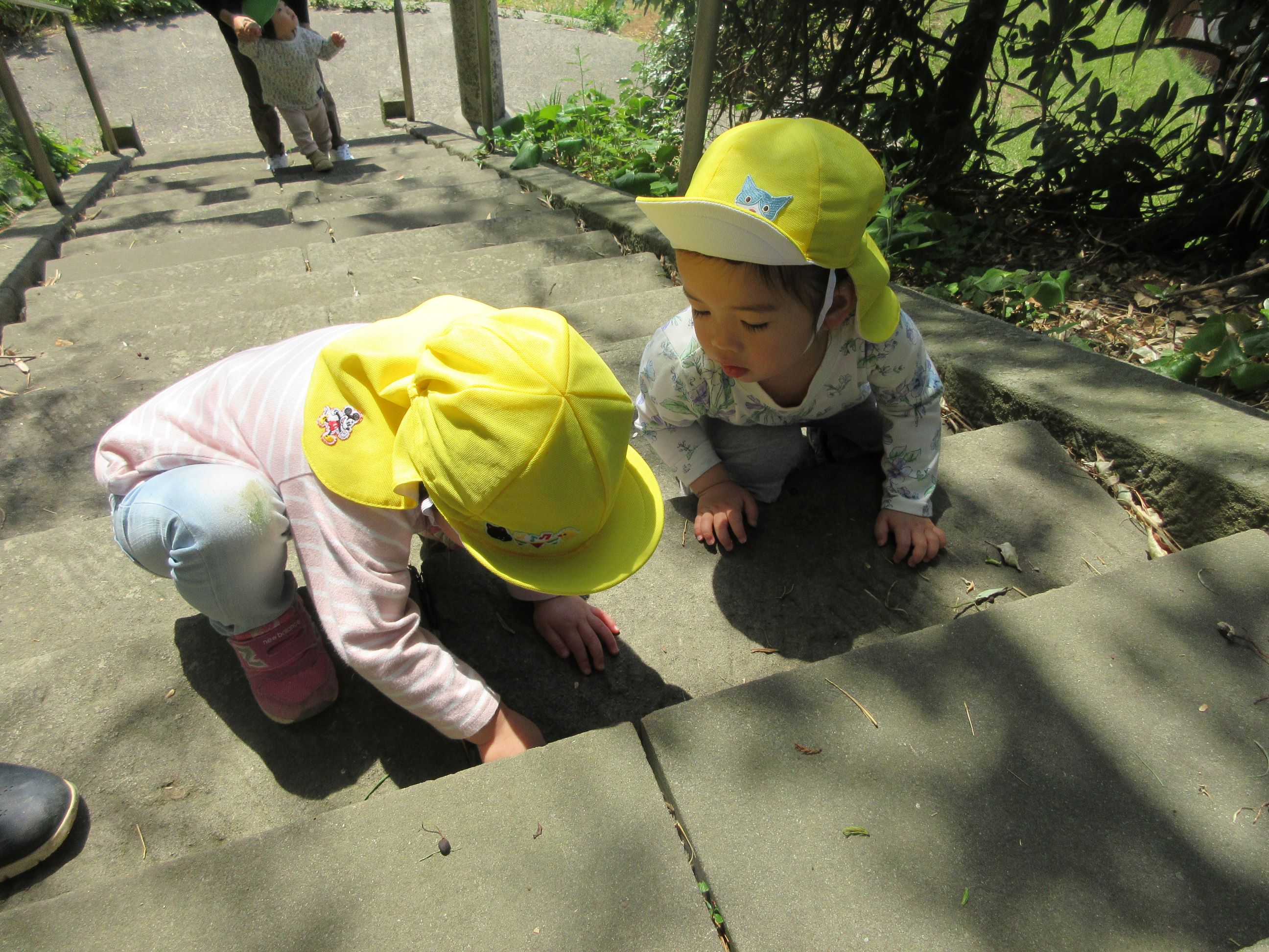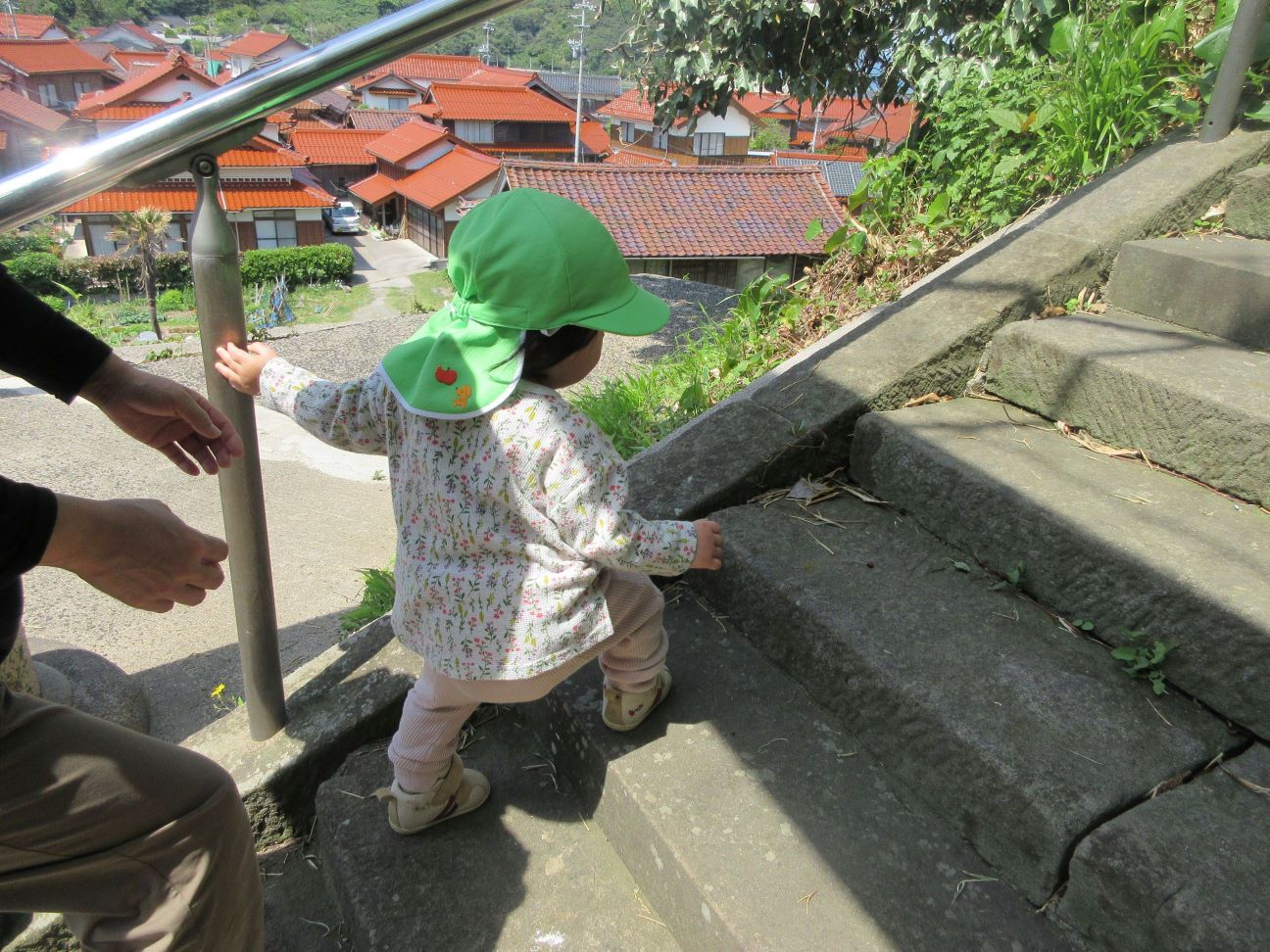 階段を上がる途中でも、「?」何でも気になる年ごろです