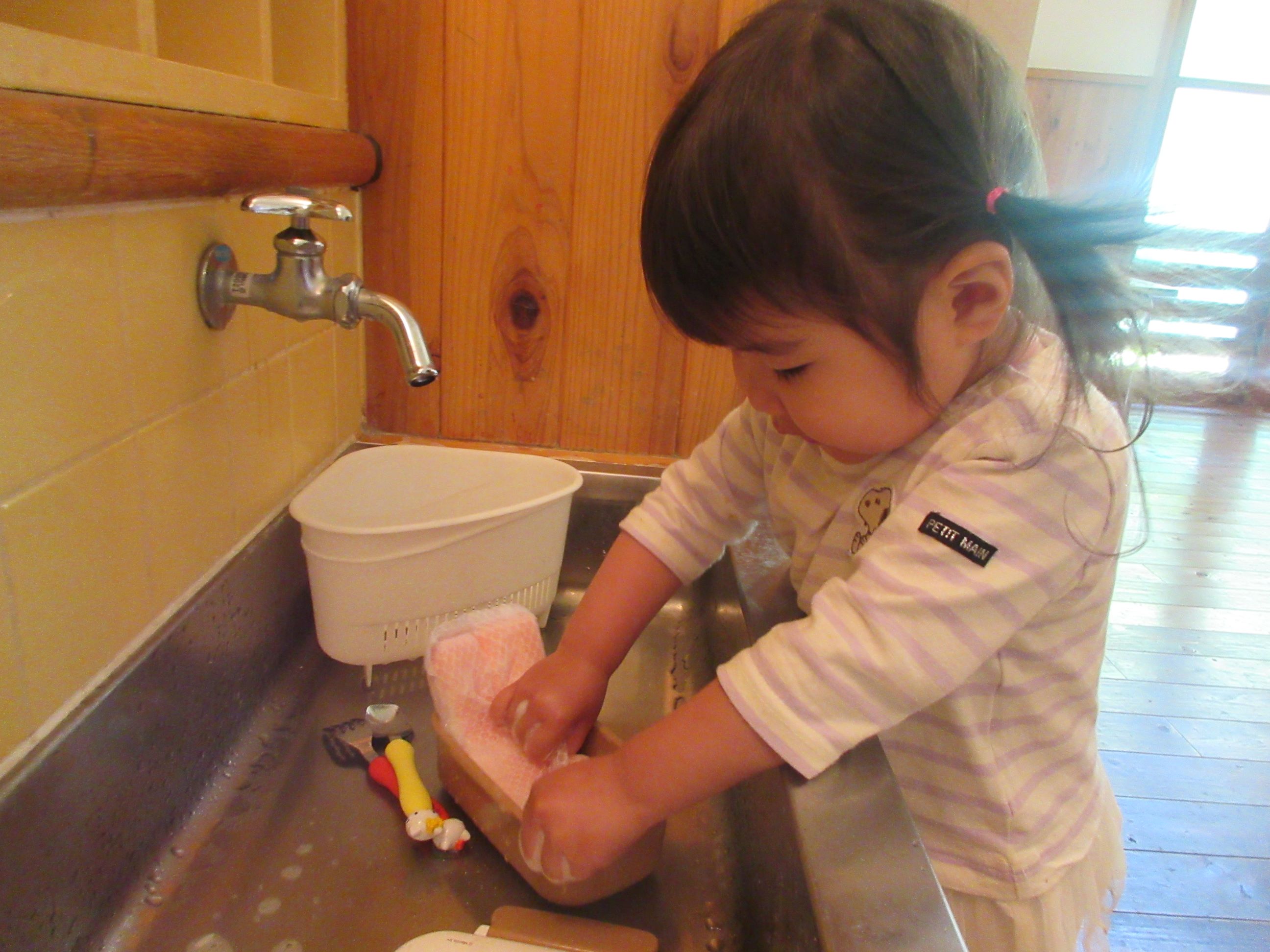 お弁当を洗うことにも挑戦