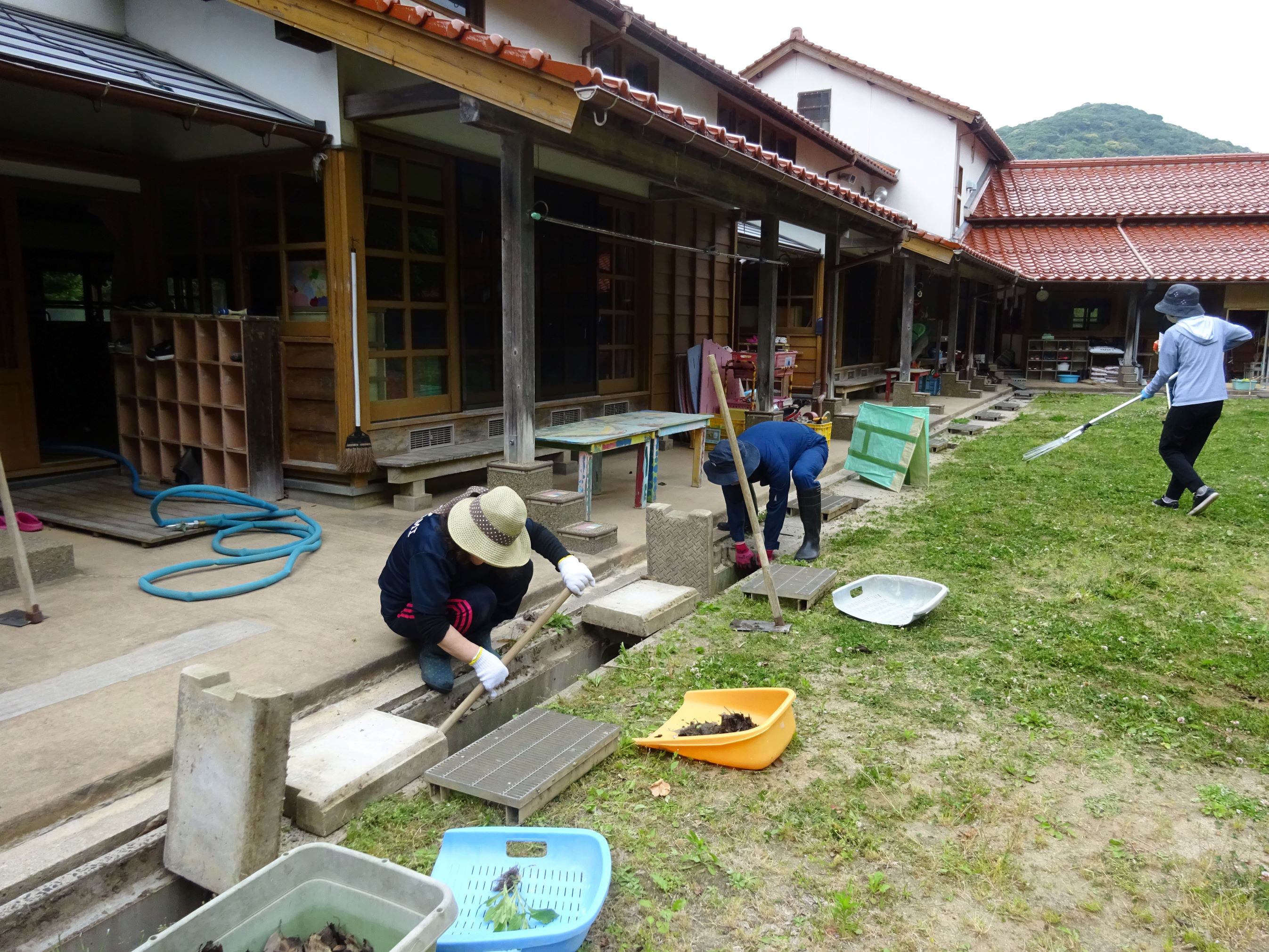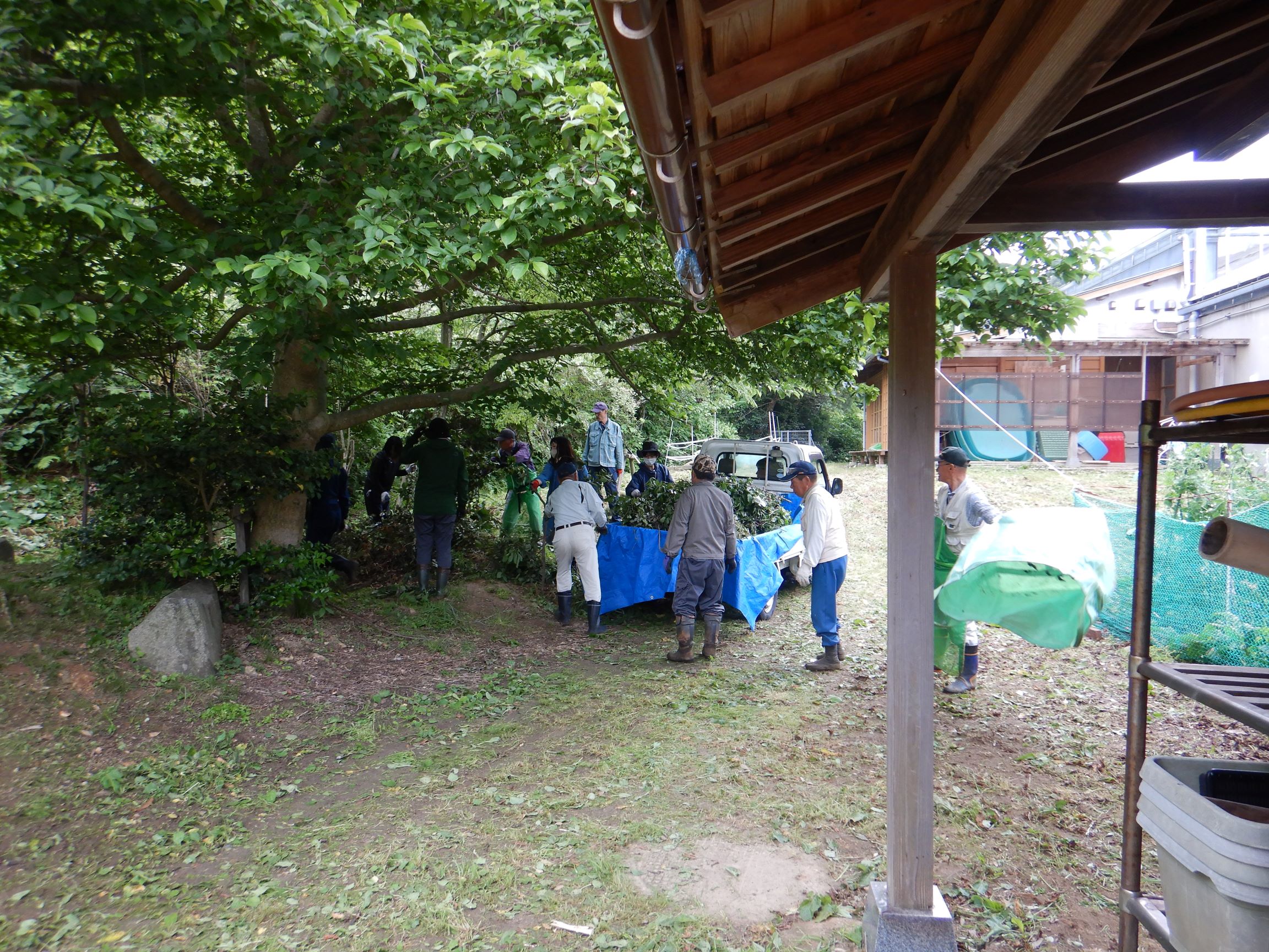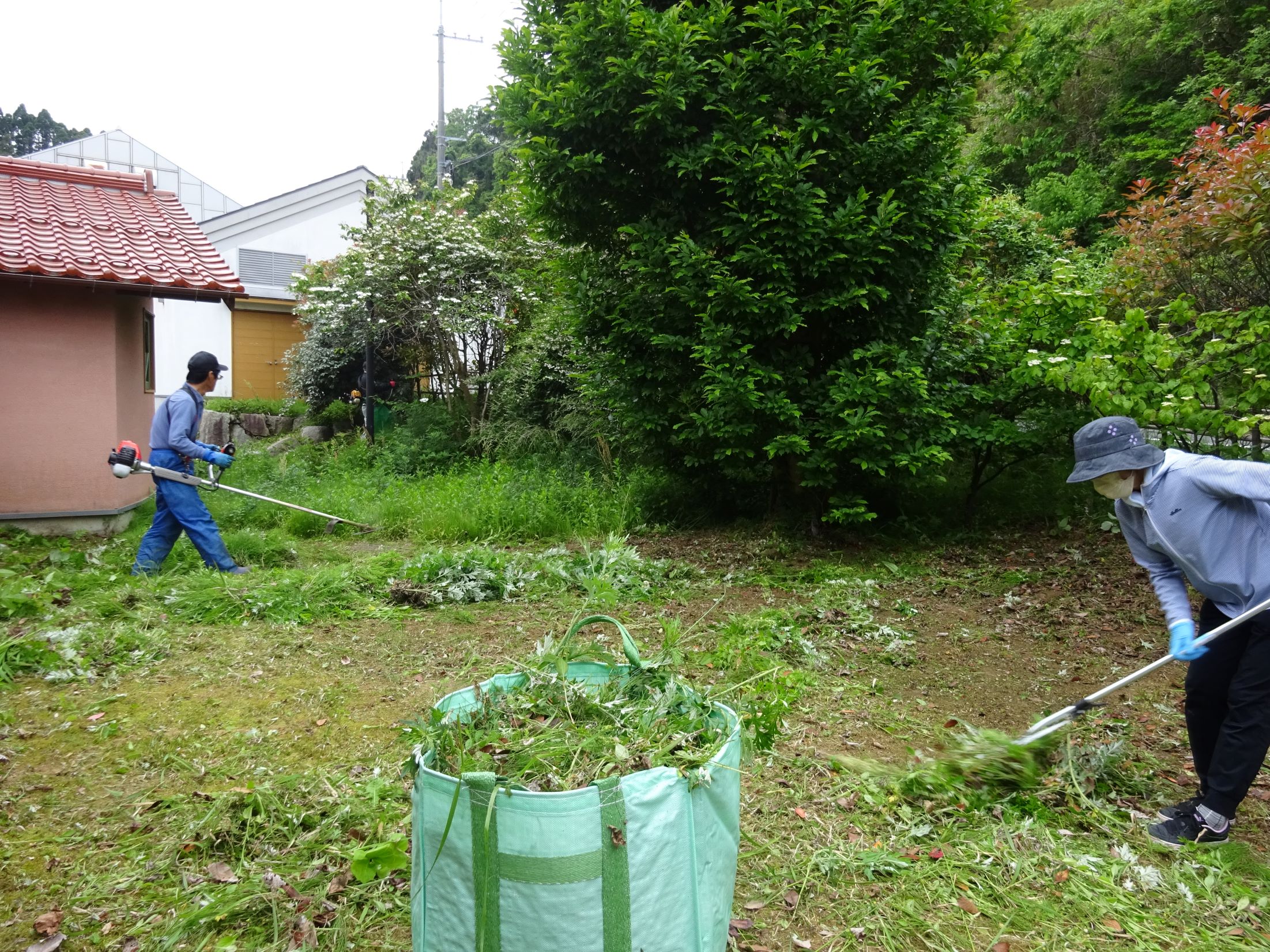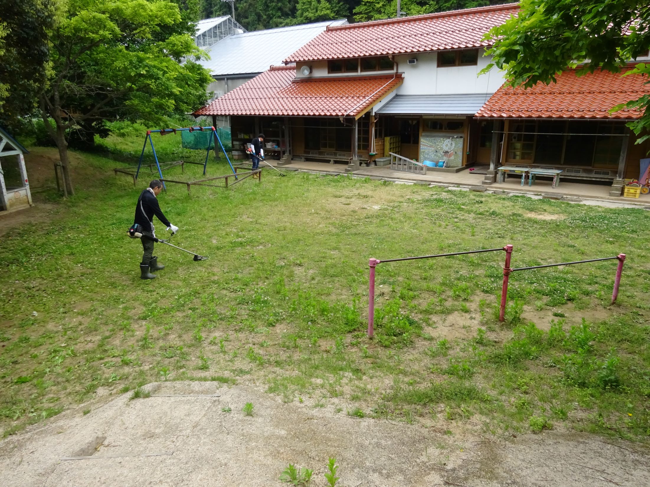 今年も小波社協の方々に協力して頂き、保護者の皆さん、職員で所庭やわくわくの森、保育所周辺の草刈りや環境整備を行いました。不安定な空模様でしたが、とても熱心に作業して下さり、どの場所も見違えるようにきれいになりました。皆さんのパワーに頼もしさと子ども達に対する愛情を感じ、とても嬉しく思いました。休憩時間には、小波社協さんと保護者の方が和気あいあいとおしゃべりを楽しまれる場面もあり、地域全体の仲の良さ、アットホームな雰囲気が保育所を支えてくださっているのだと改めて感じました。