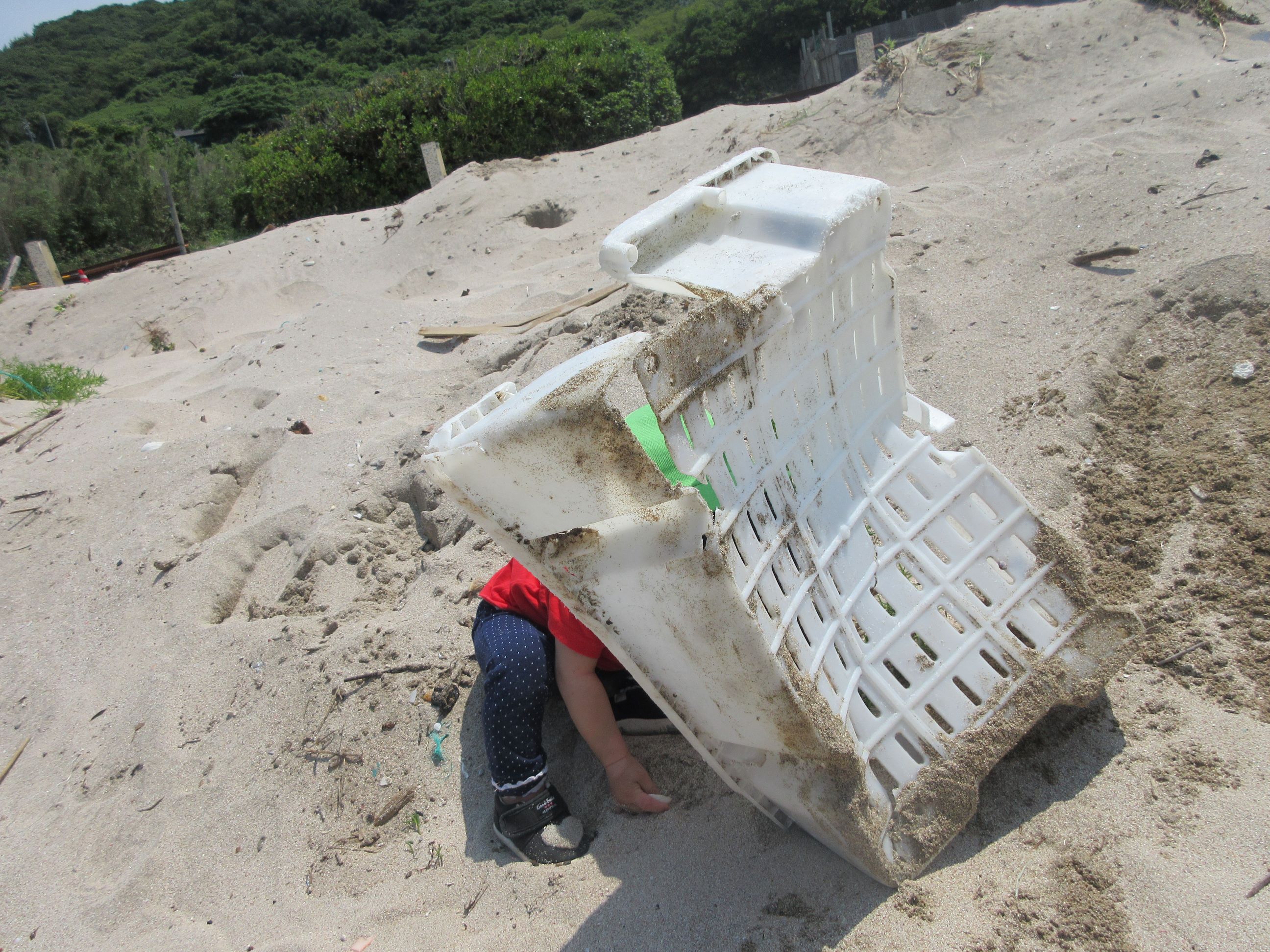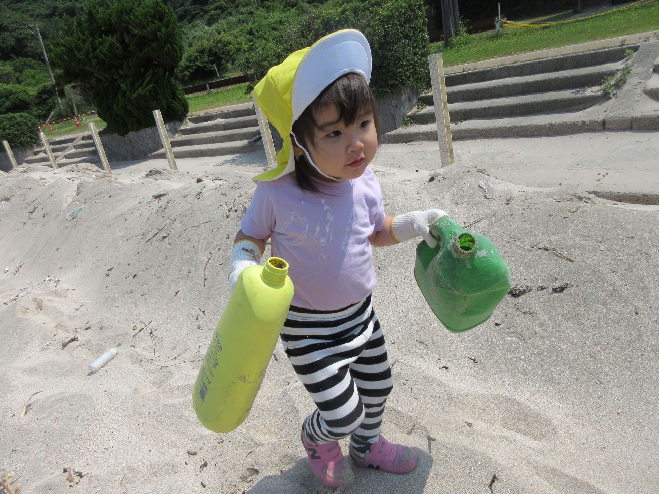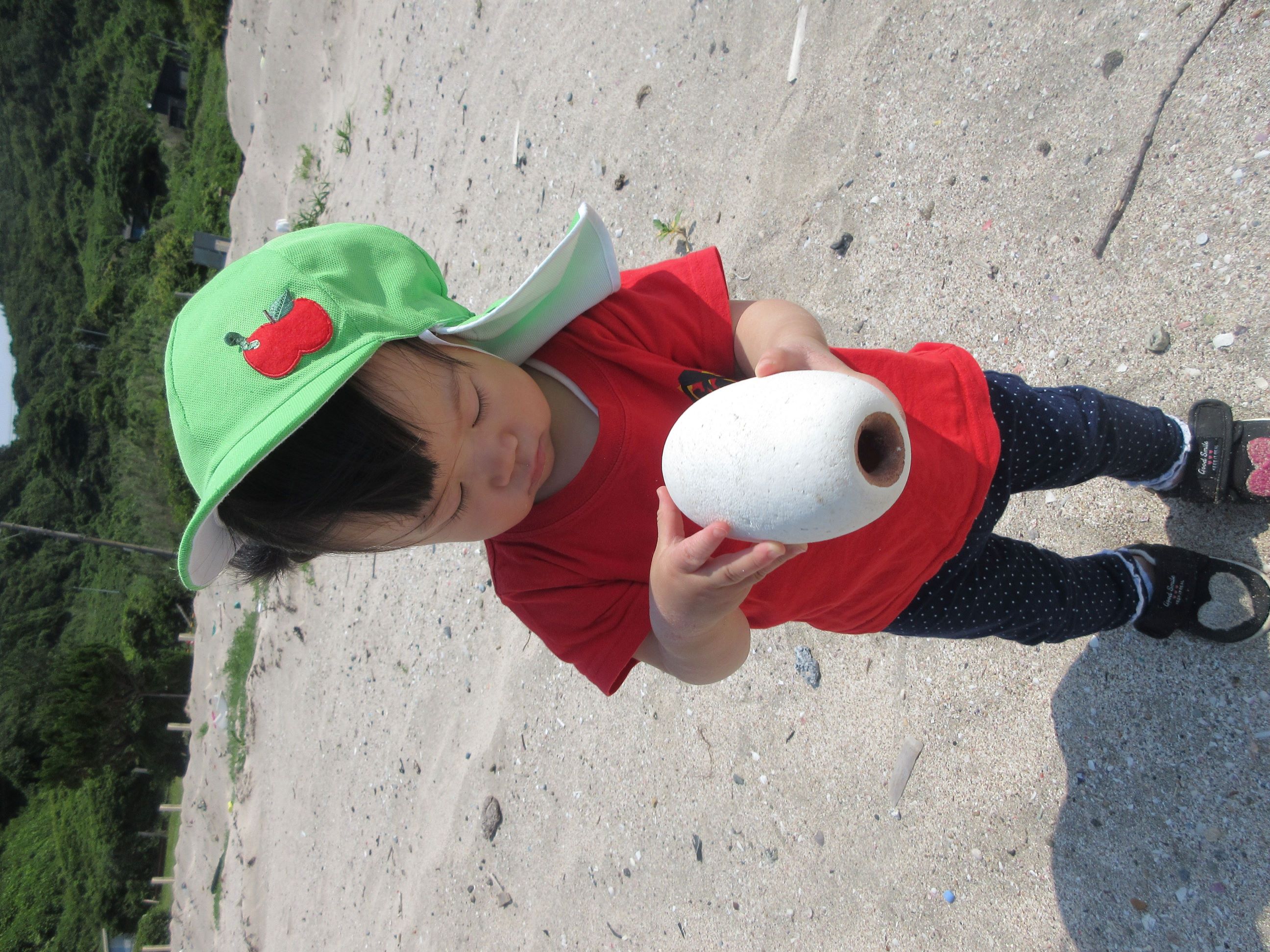 海に行くまでの道端に落ちていたごみを見つけ「ごみがあったー」と早速拾ってくれました。