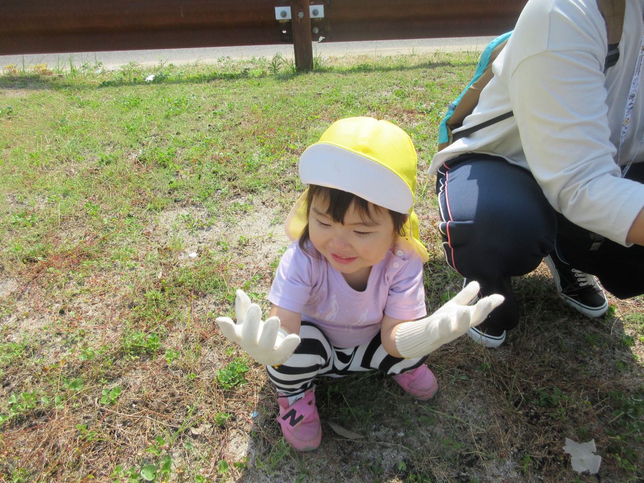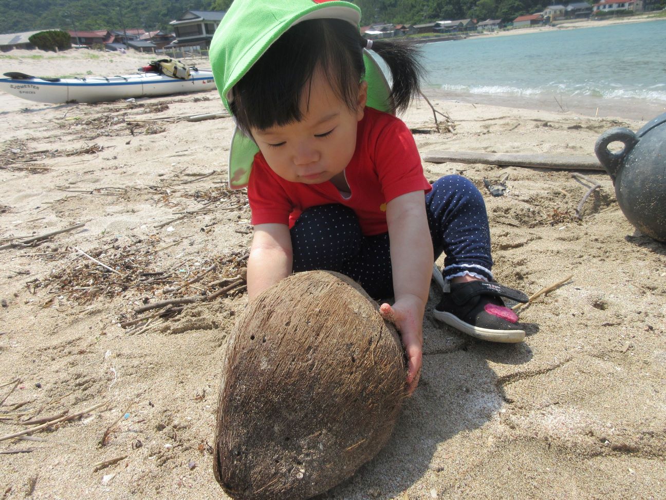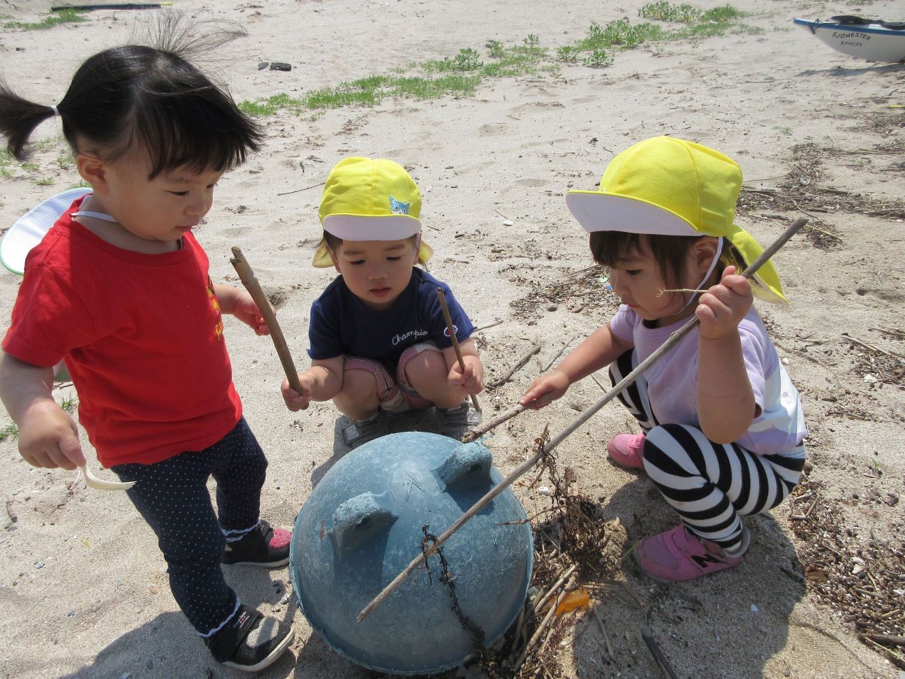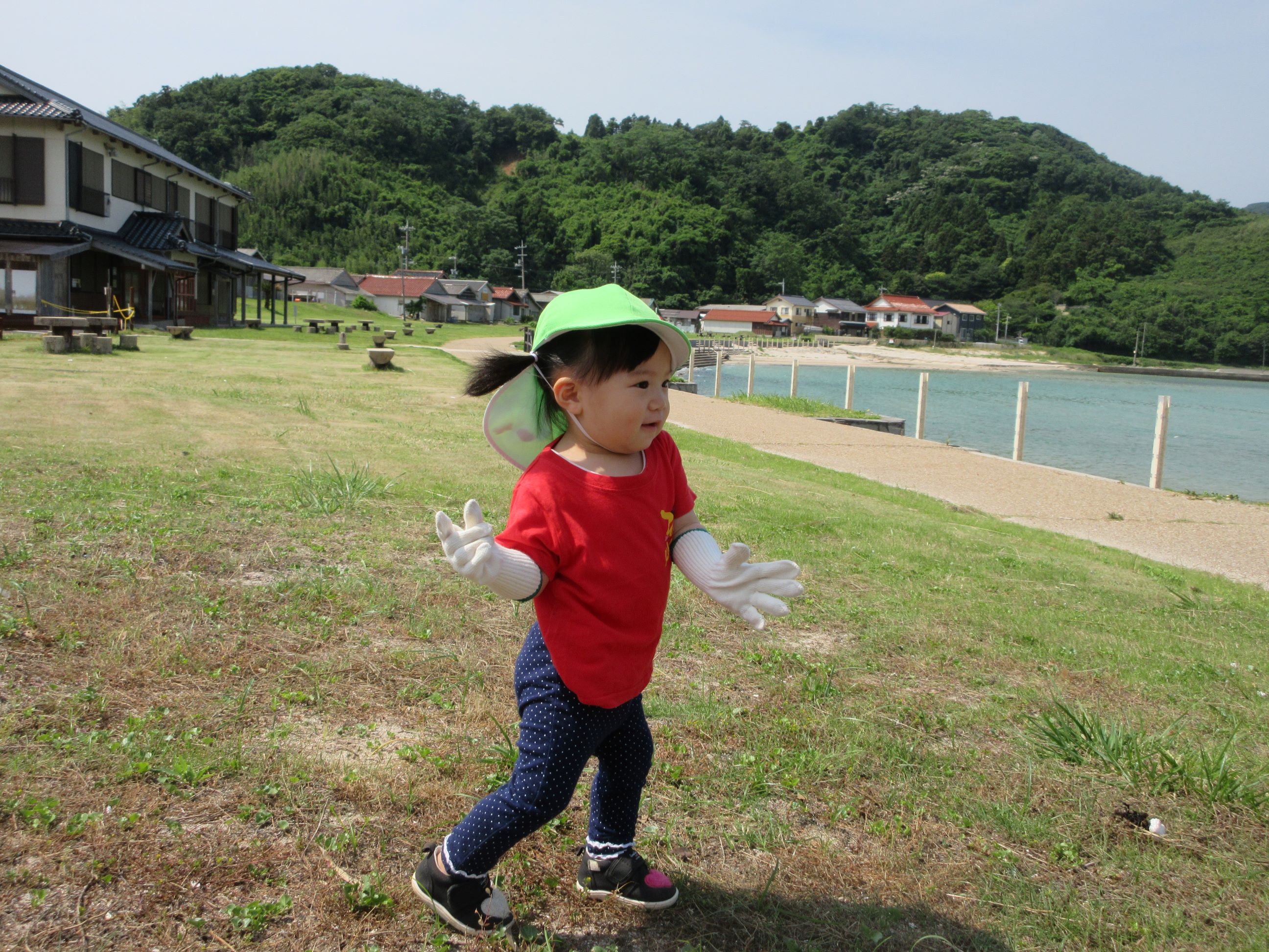 海に行くまでの道端に落ちていたごみを見つけ「ごみがあったー」と早速拾ってくれました。