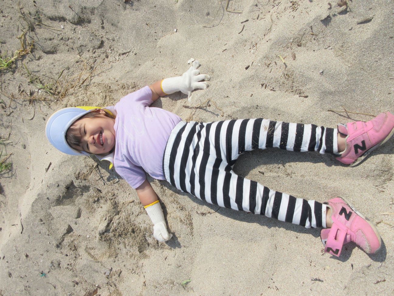 「すなのうえ、きもちいいー」