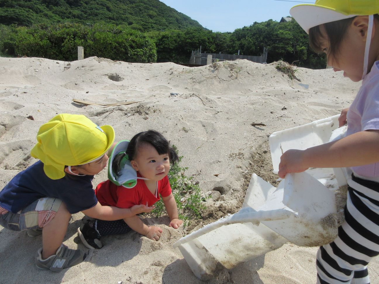 「すなにはいってるー」