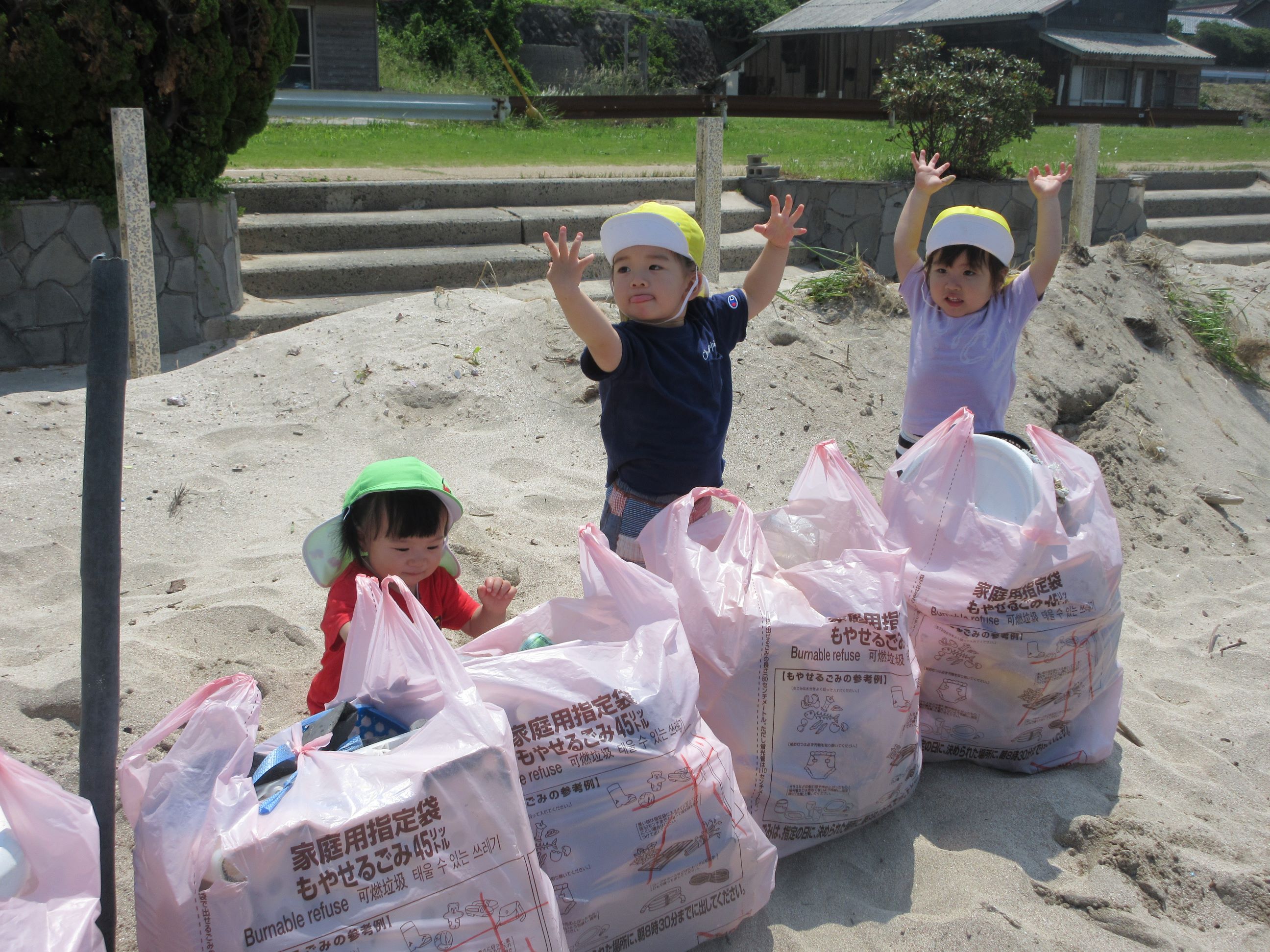 ちっちゃなごみ拾い戦隊が登場!3人だけれど、がんばるぞー‼