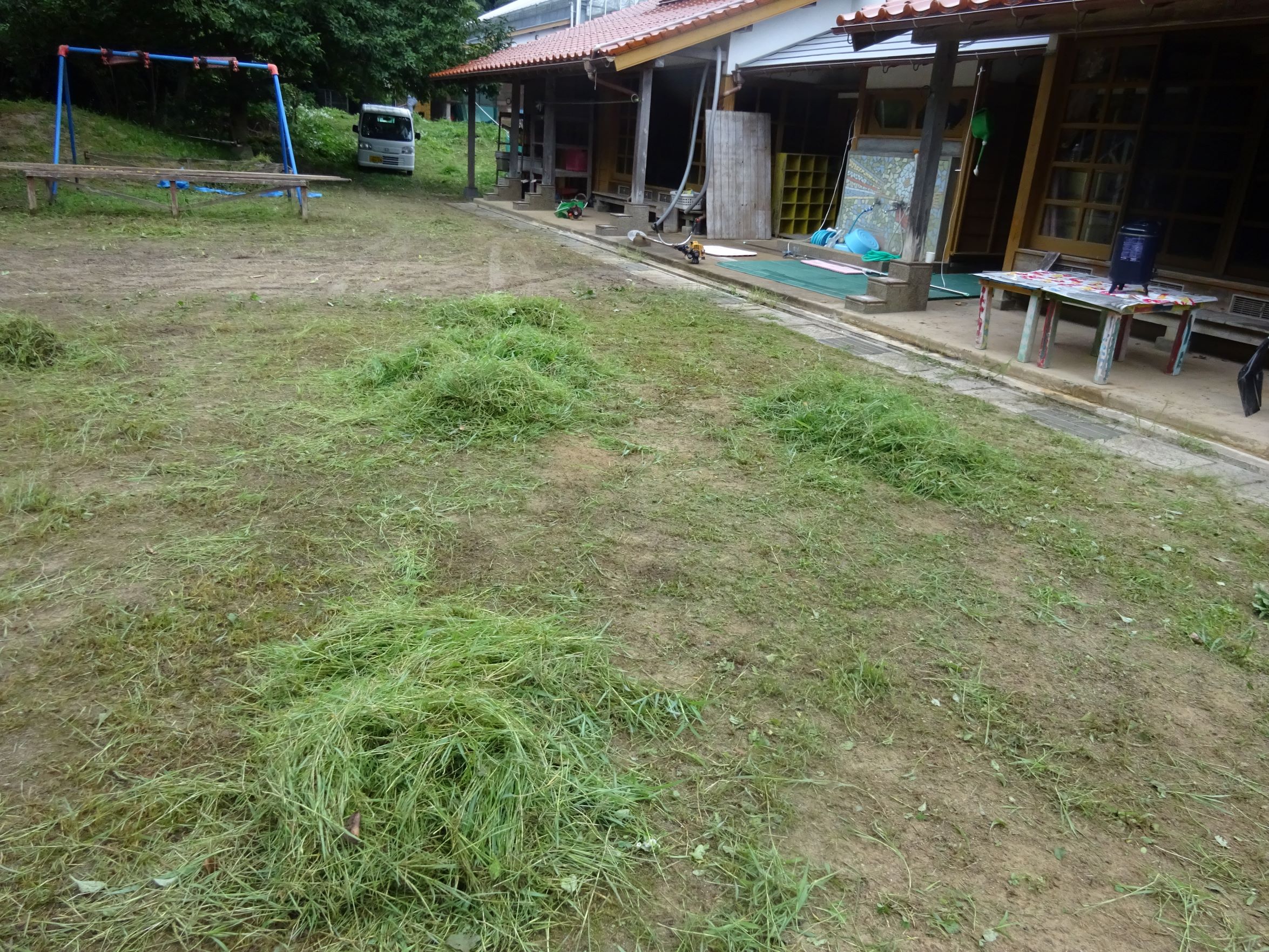 奉仕作業前日に福島達さんがプールの解体作業をして下さり、当日は、お父さん方に手際よくプールを片付けて頂きました。今年は高温多湿の気候で草が勢い良く伸び、草刈り、草集めも大変でしたが、保護者の皆さん、小波社協の皆さんが本当に熱心に作業して下さり、所庭を始め、保育所周辺が見違えるようにきれいになりました。作業をして下さった方に感謝をしながら、子ども達と戸外遊びを楽しみたいと思います。また、わくわくの森も整備して頂いたので、親子で遊べるよう開放日も計画しています。一緒に楽しんでいただきたいと思います。
