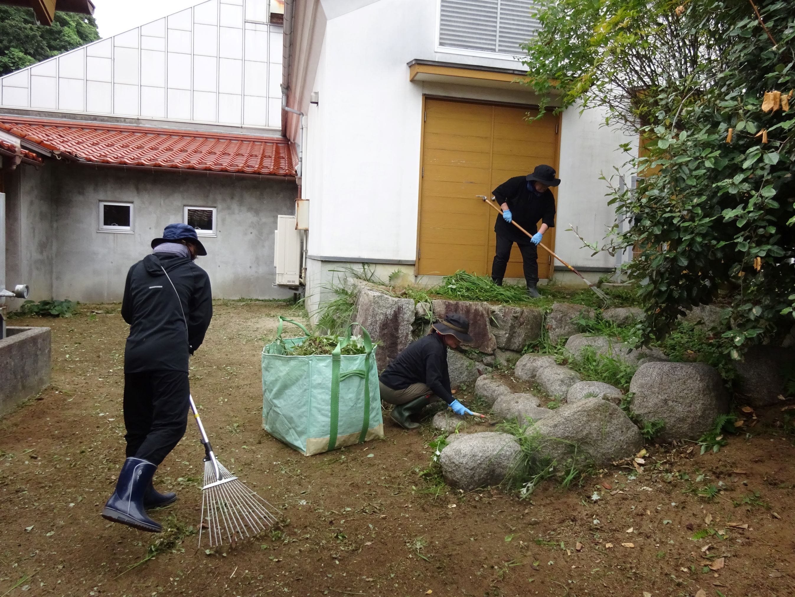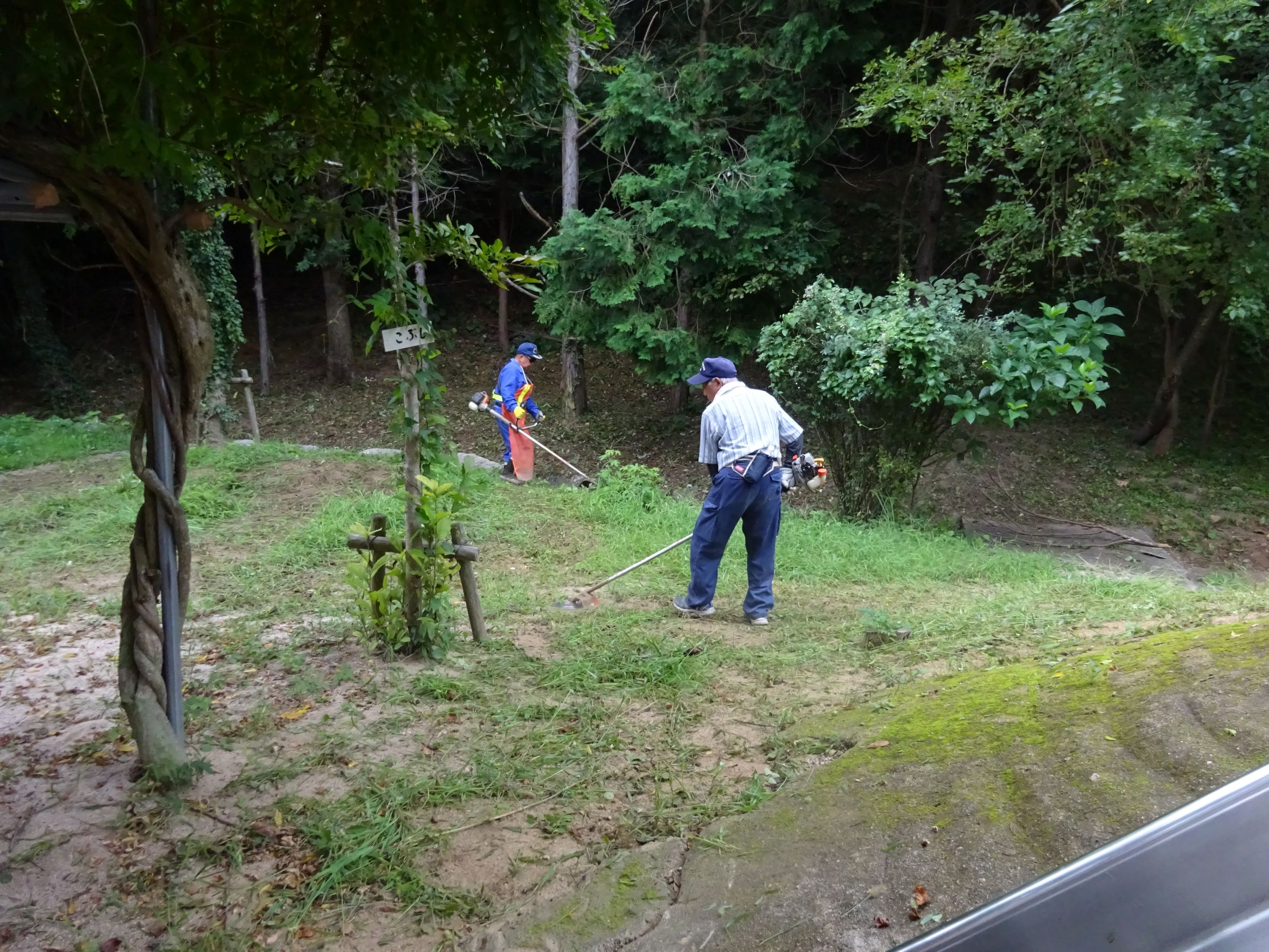 所庭に草の山が積まれています。あっという間に刈っていただきました