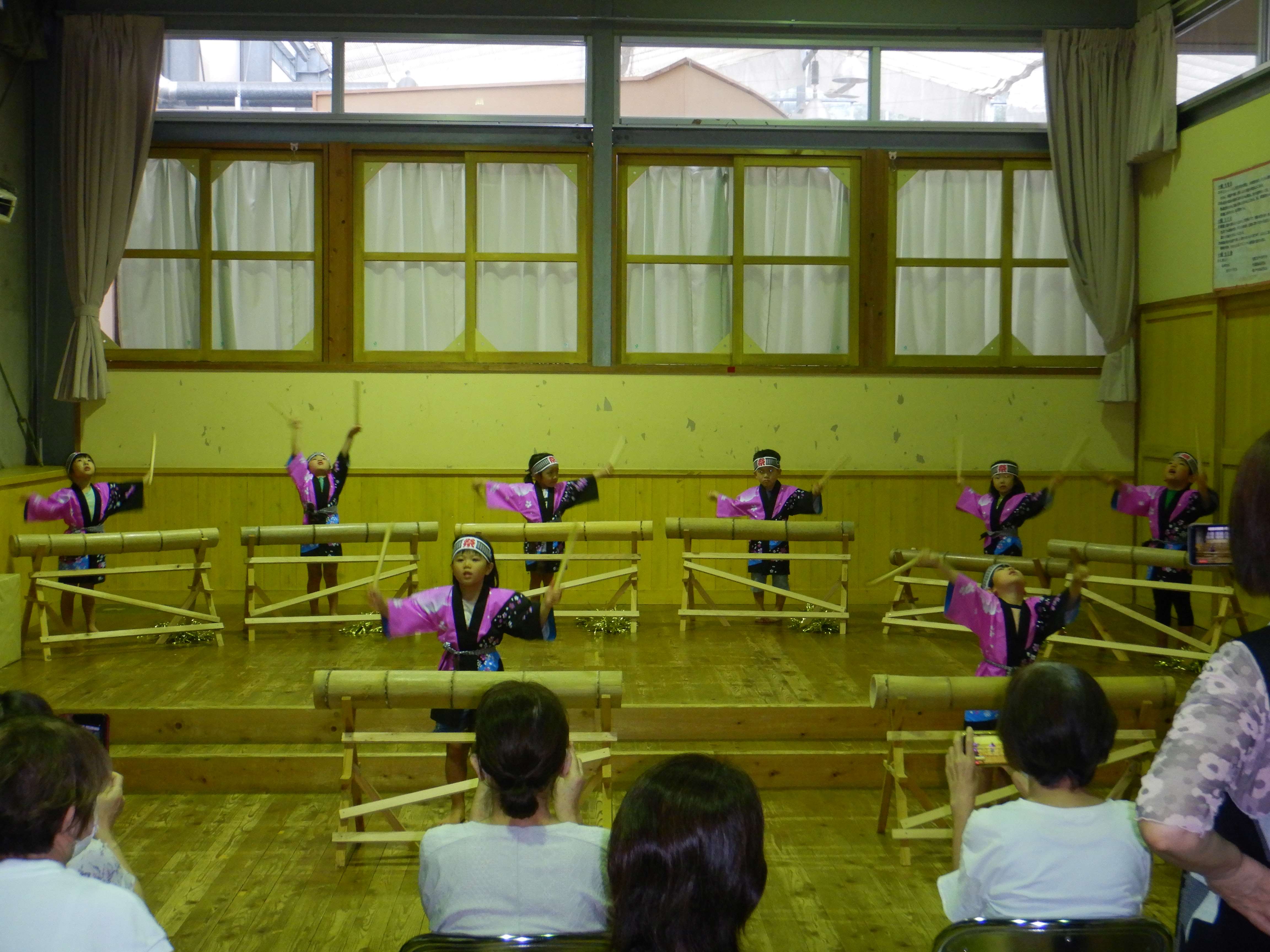 竹太鼓。三歳児も加わり、にじそらパワーで頑張りました。
