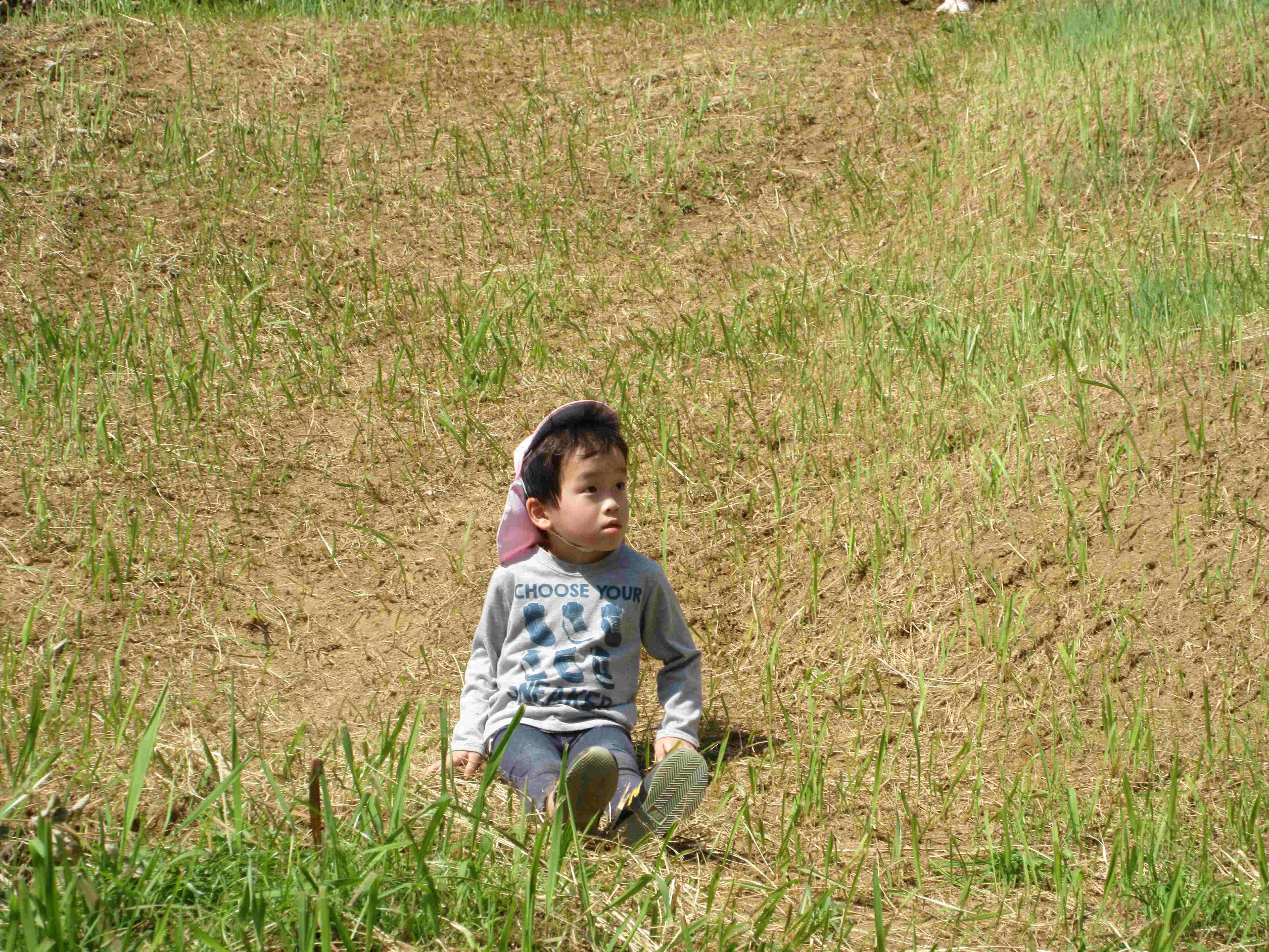 「んー、のぼれない・・・」「くさをつかんでいこう」