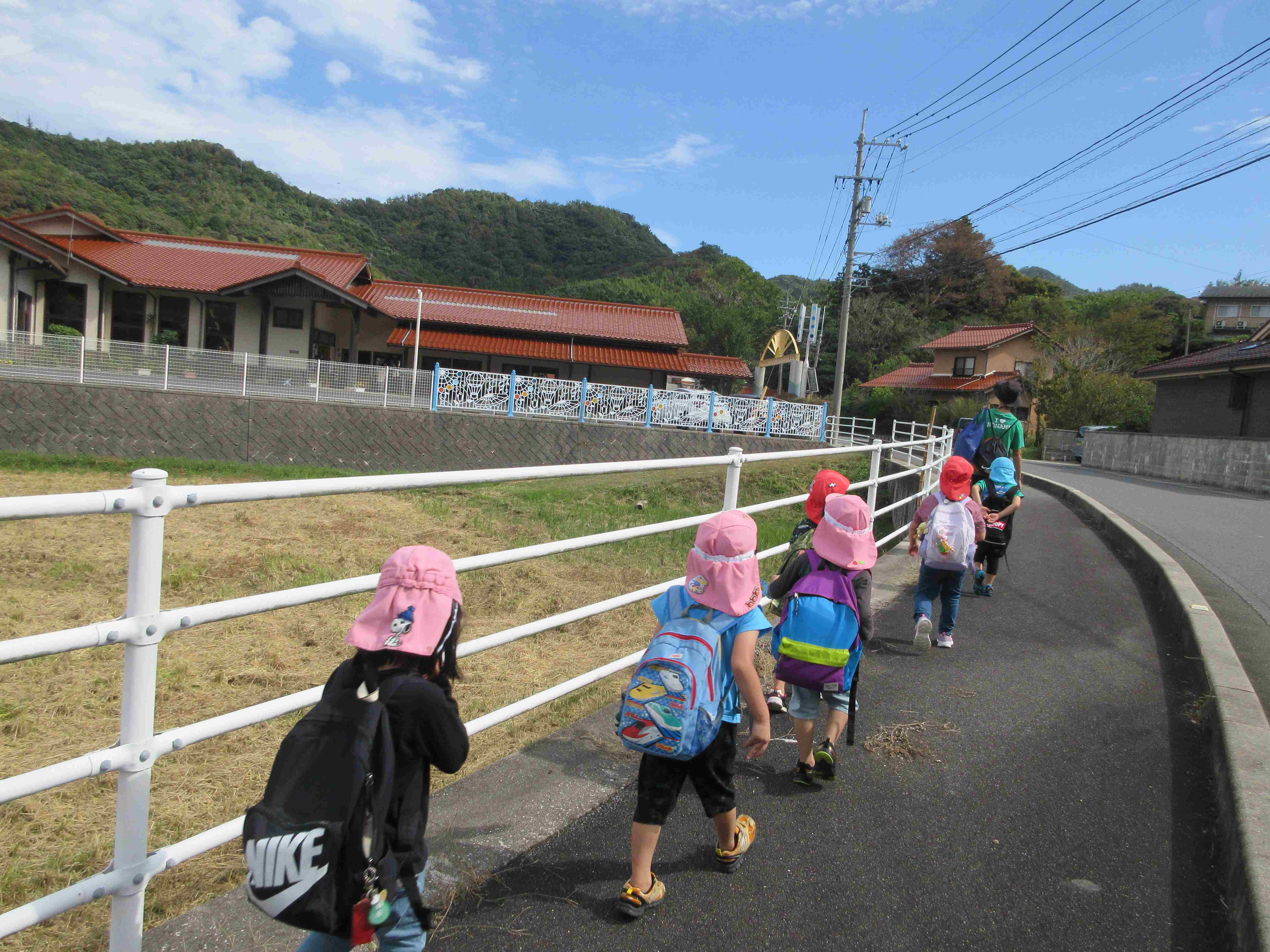 歩いてマリン保育所に向かいました。「マリンさんがみえてきた」