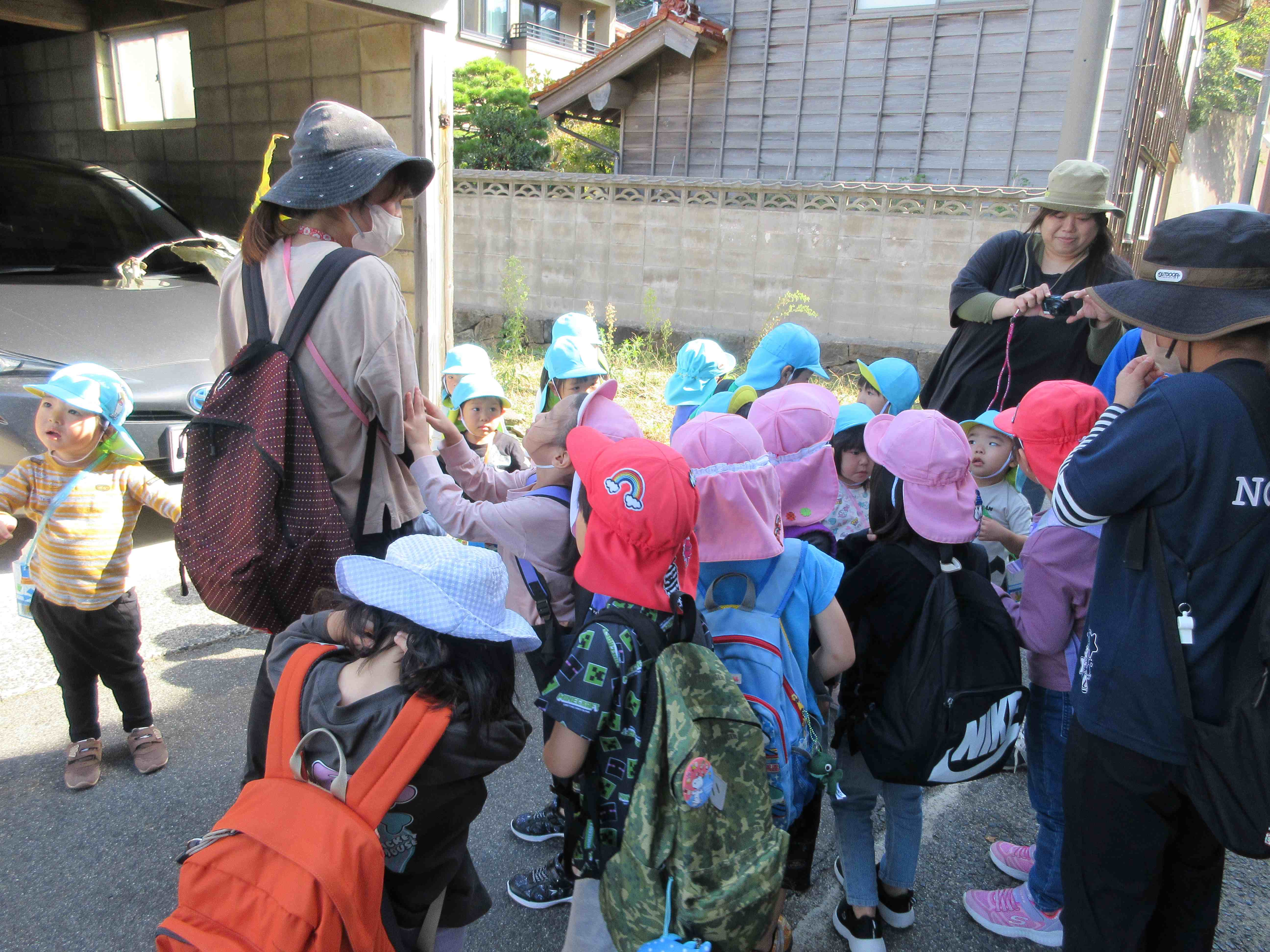 お散歩をしていたマリン保育所のらっこ組さんに会いました。「こんにちはー」