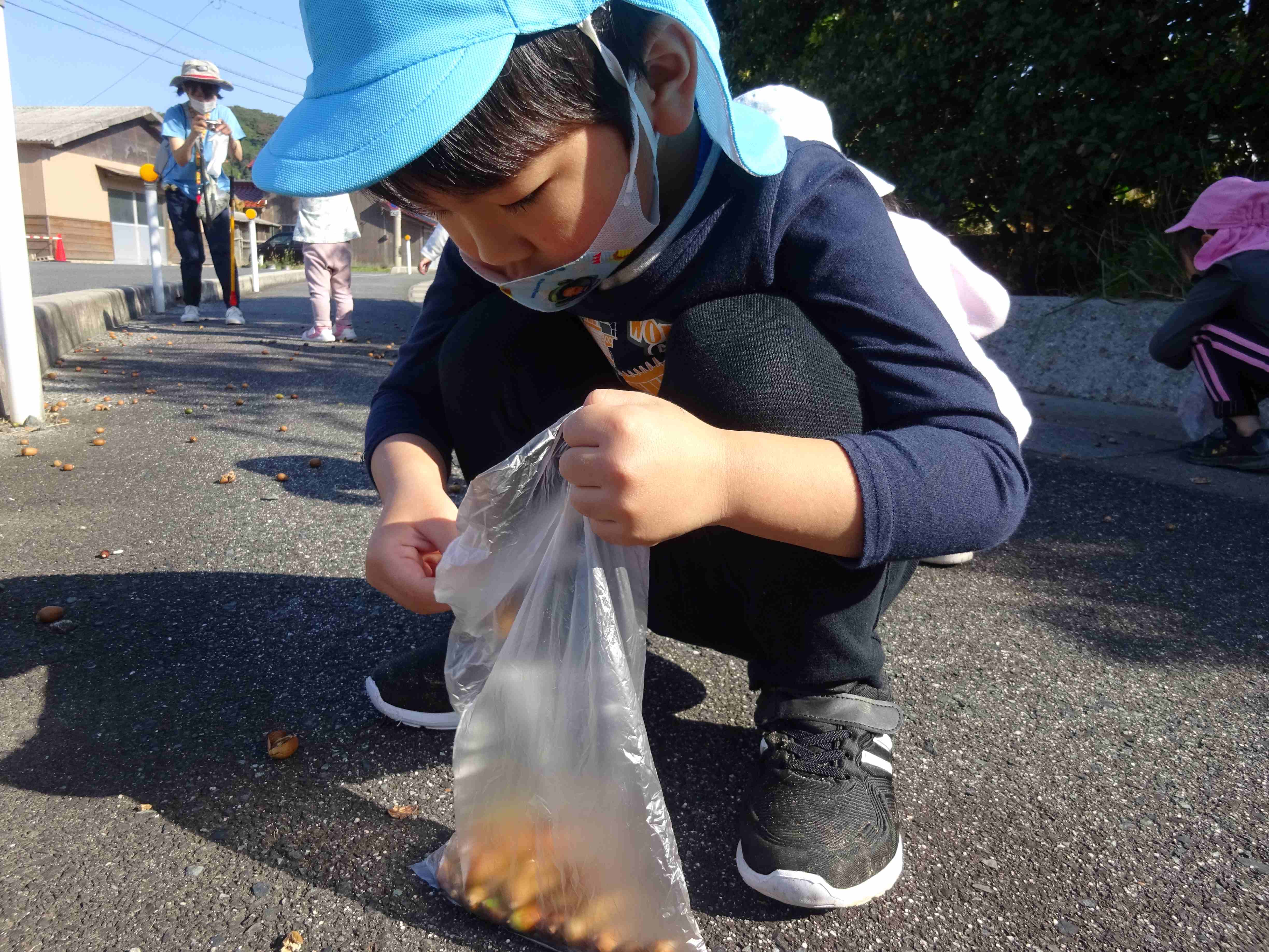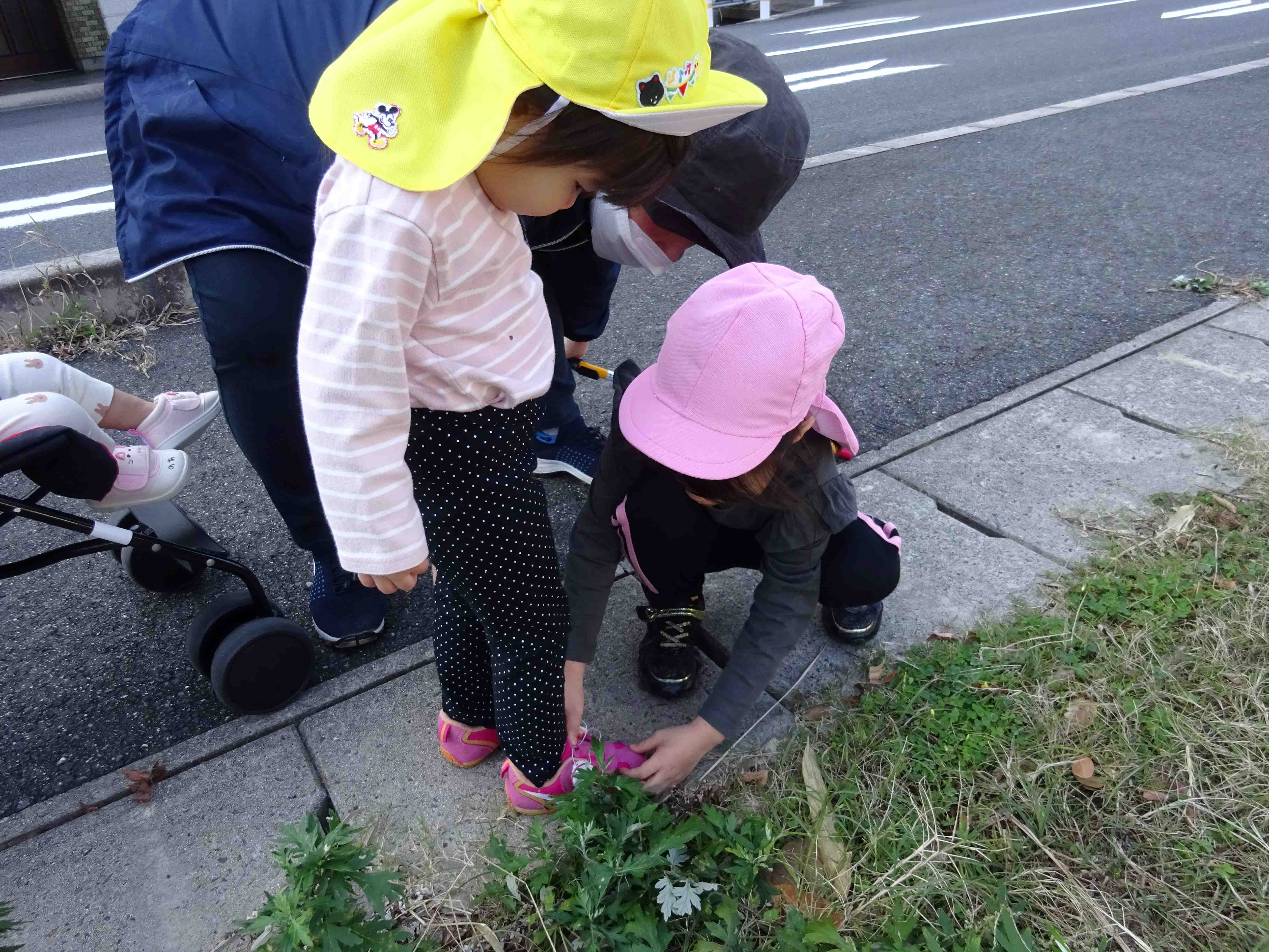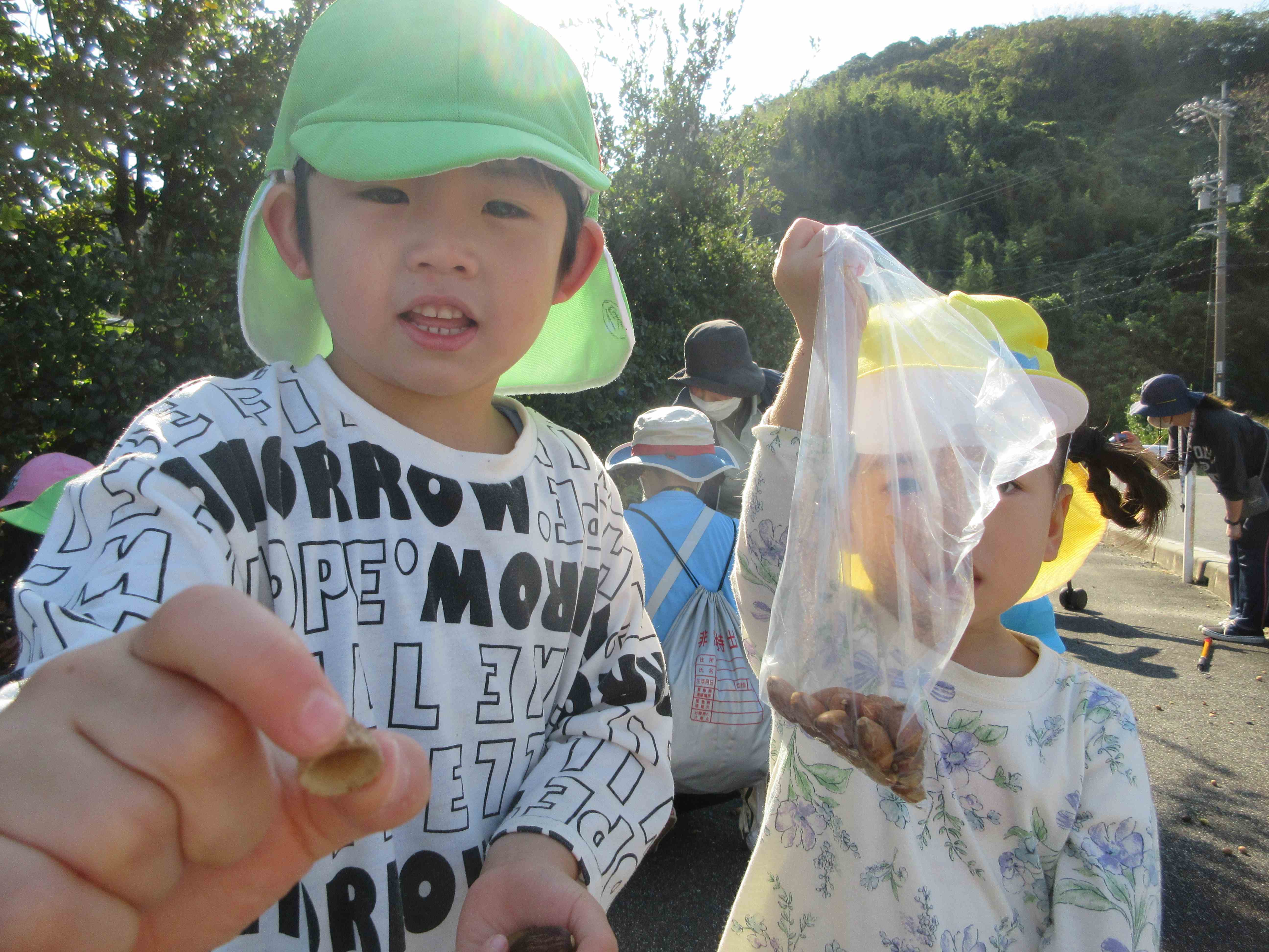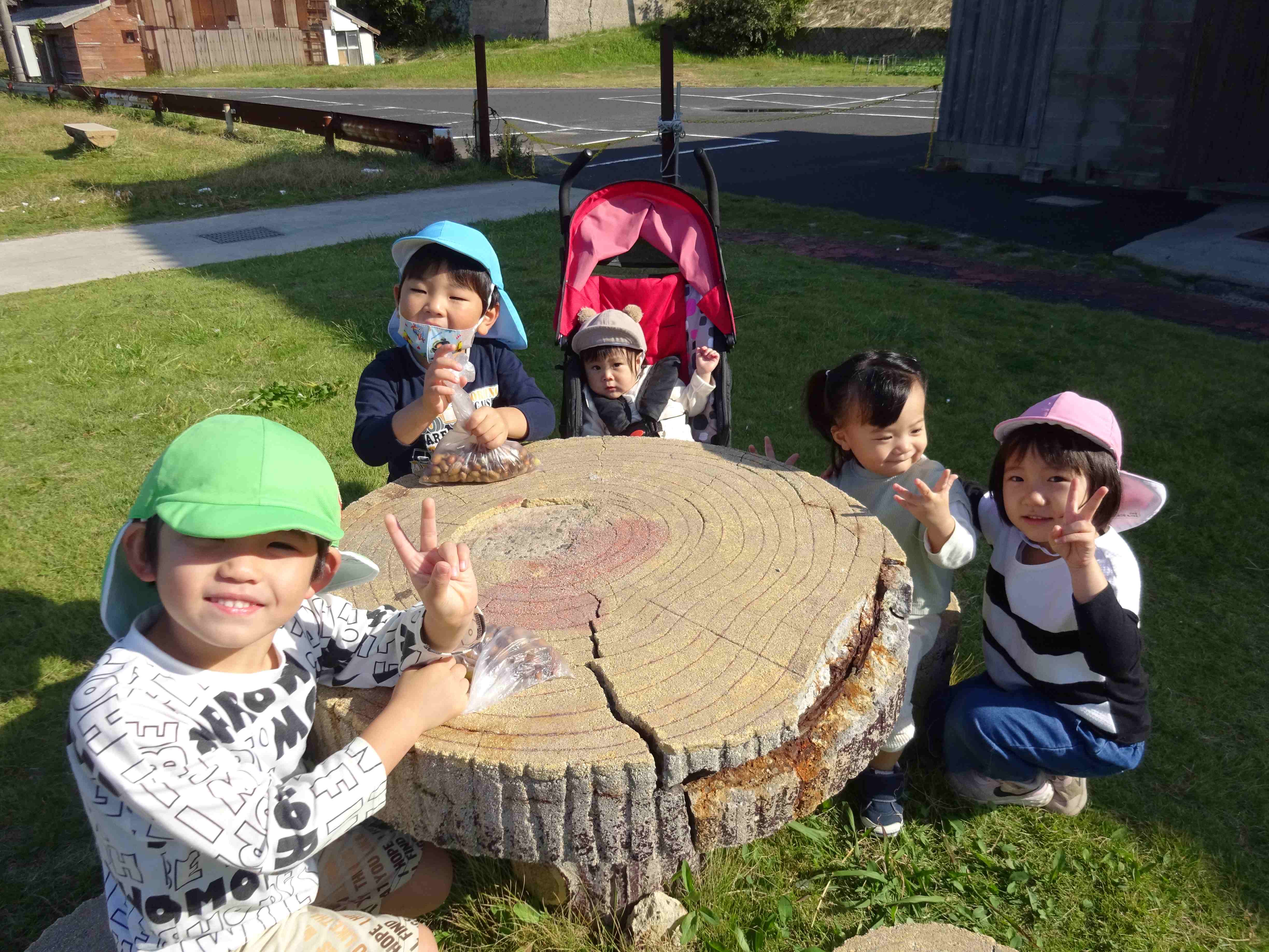 11月とは思えないほどの晴天に恵まれ、全園児で小波海岸へ散歩に行きました。この日は5歳児が就学前健診で欠席だったので、4歳児の子ども達が一番上のお兄さん・お姉さん!朝の会の時にその話をすると、「よーし、がんばるぞ」「やさしくしてあげないとね」と、嬉しそうにつぶやく声が聞こえました。道中は二人一組で手を繋いで歩き、車道側は4歳児さんが歩いてくれ、優しく手を引く姿が見られました。海岸では、波打ち際ギリギリ(数人入っている子もいましたが・・・)で穴を掘ったり、「キャー」と言って波から逃げたりして楽しんでいました。