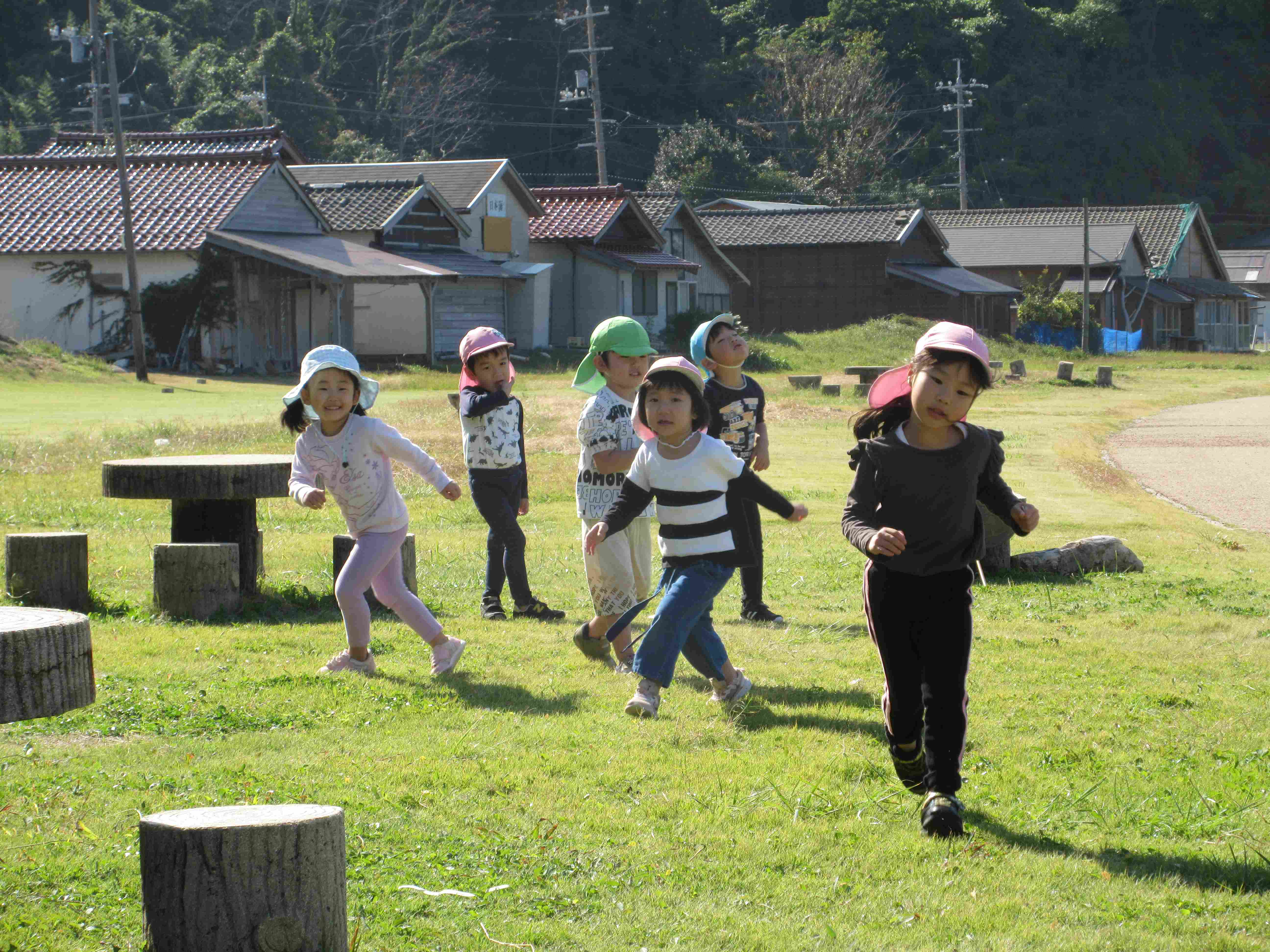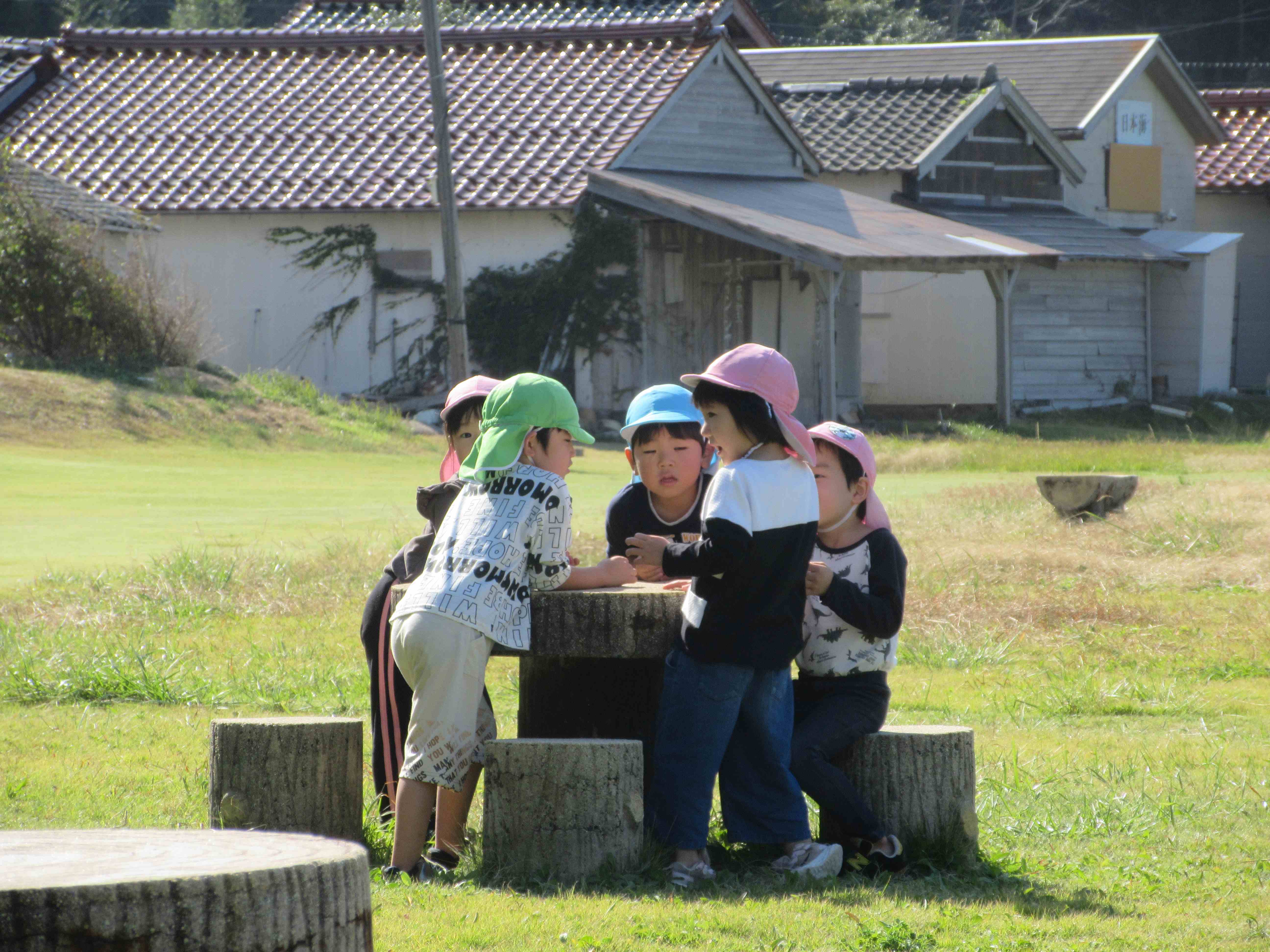 にじそら組は、担任と鬼ごっこ。「よし、さくせんをかんがえよう」