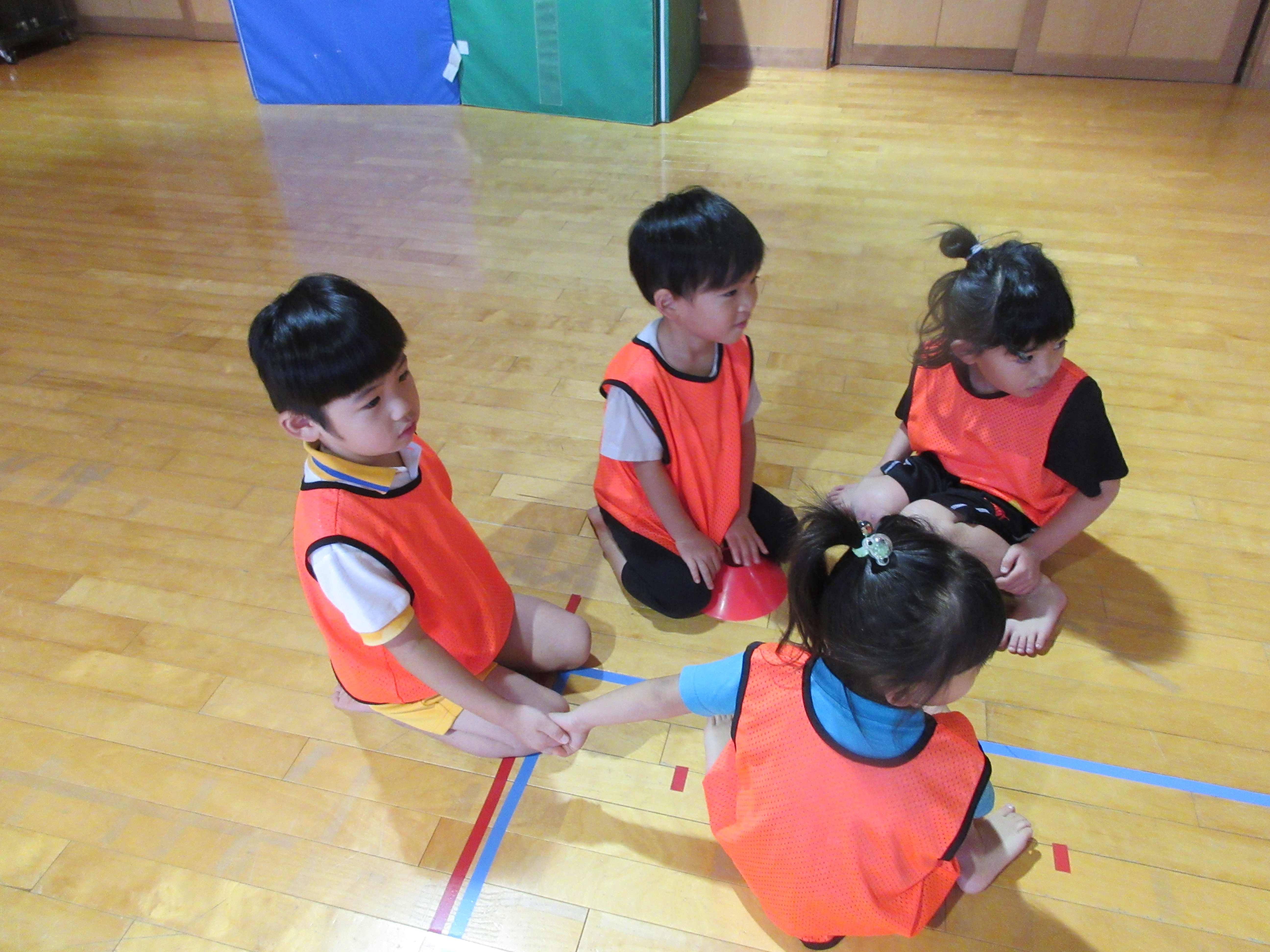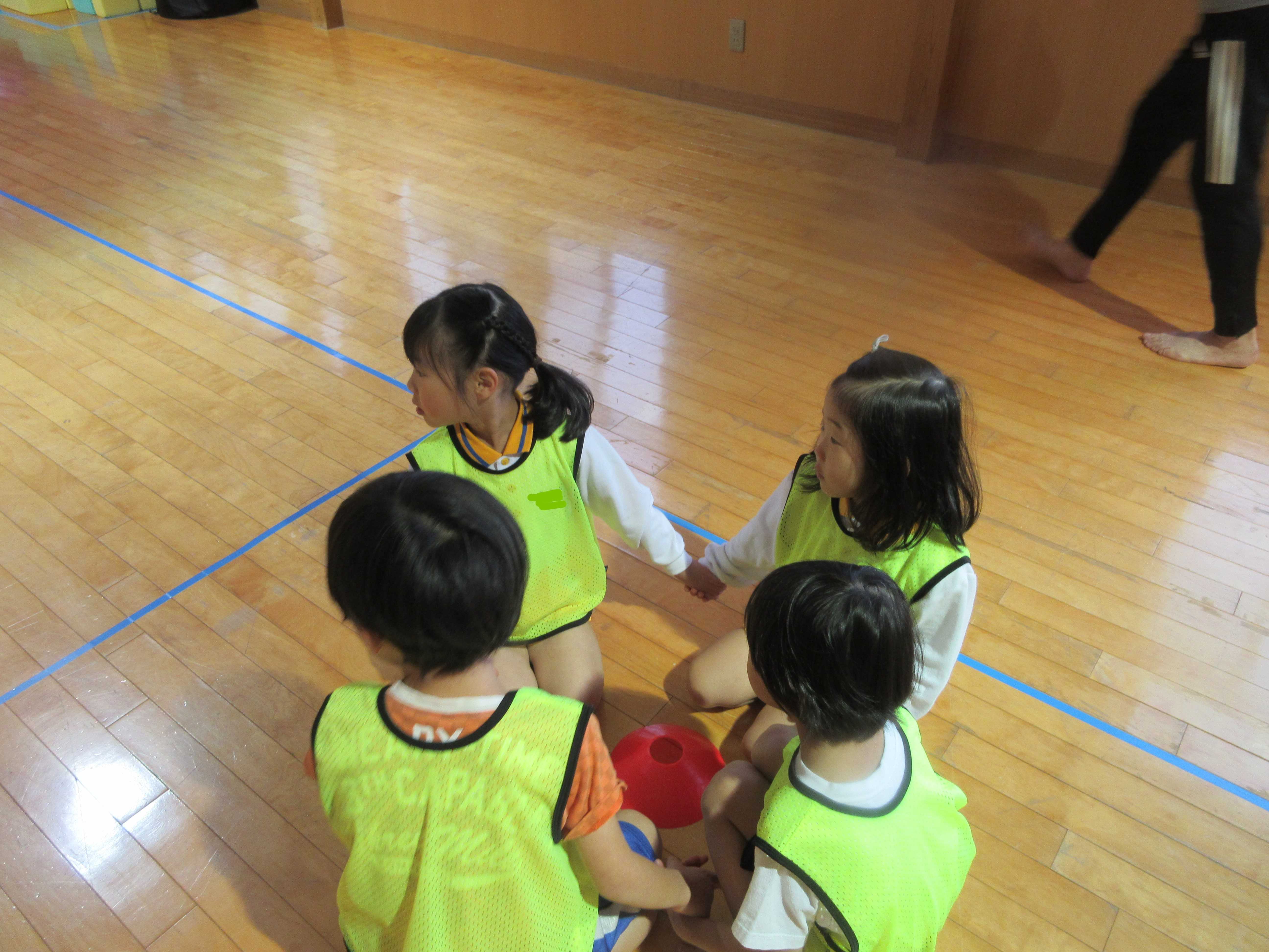 輪になって、同じチームの友達を確認します。