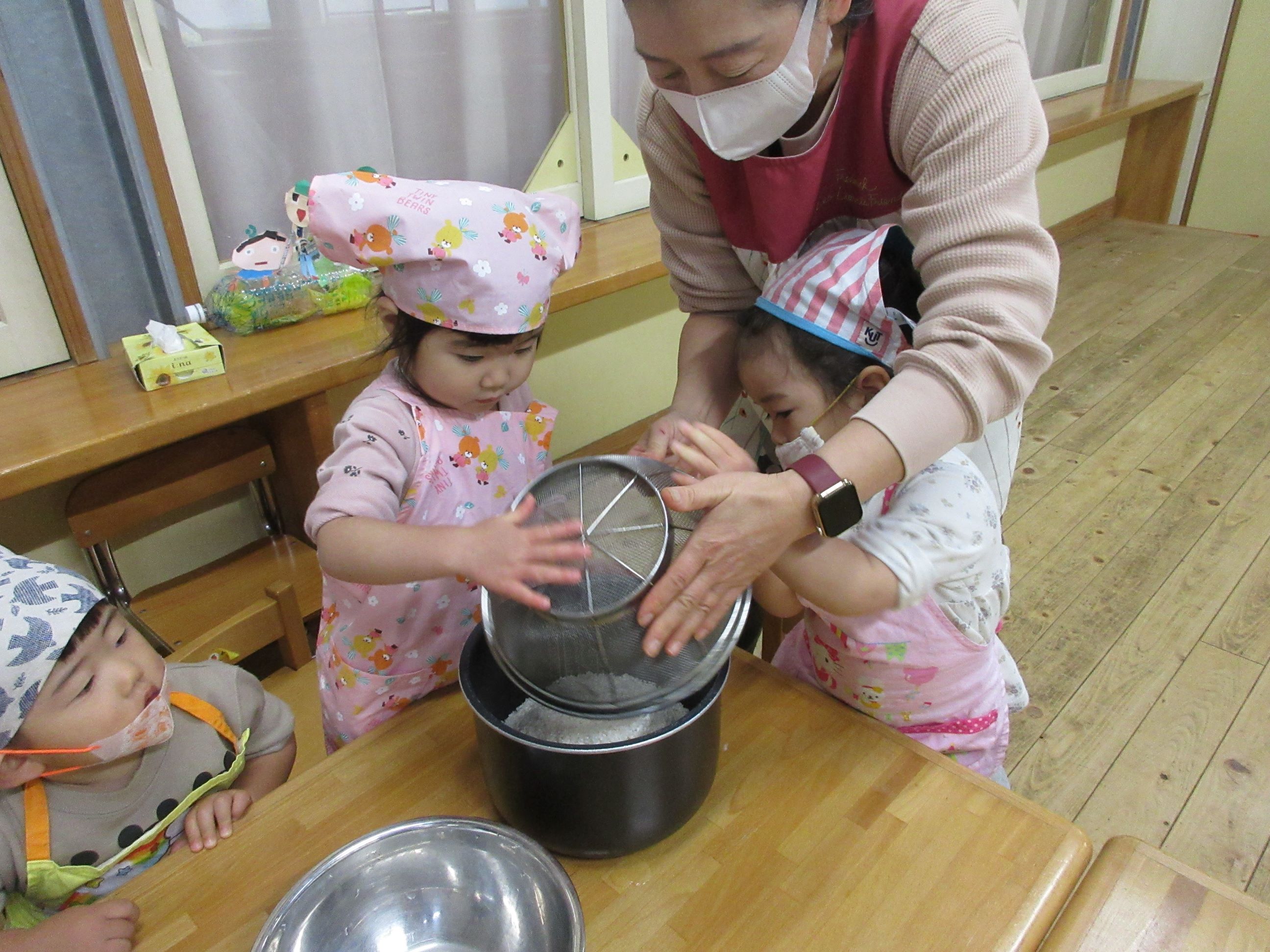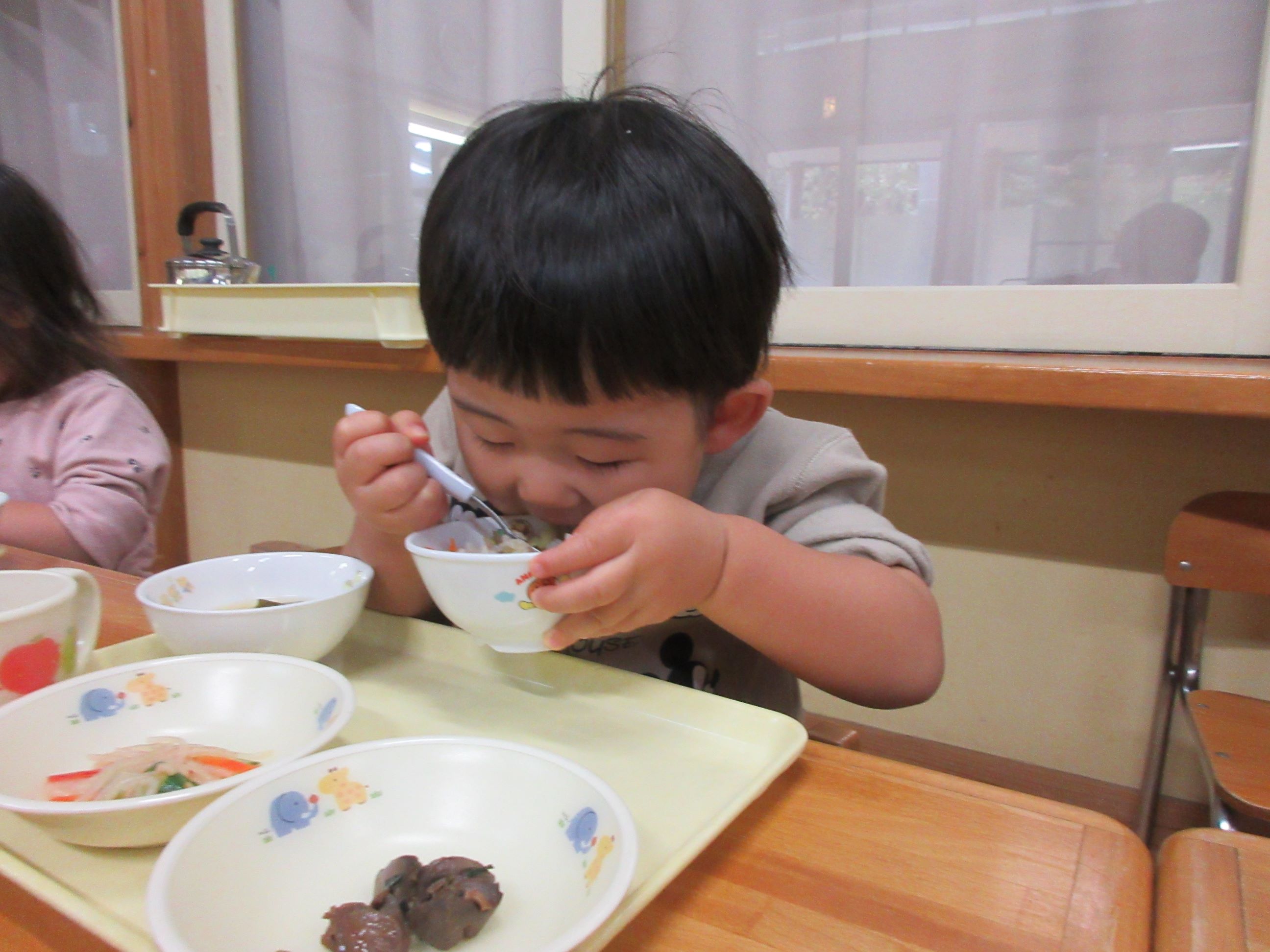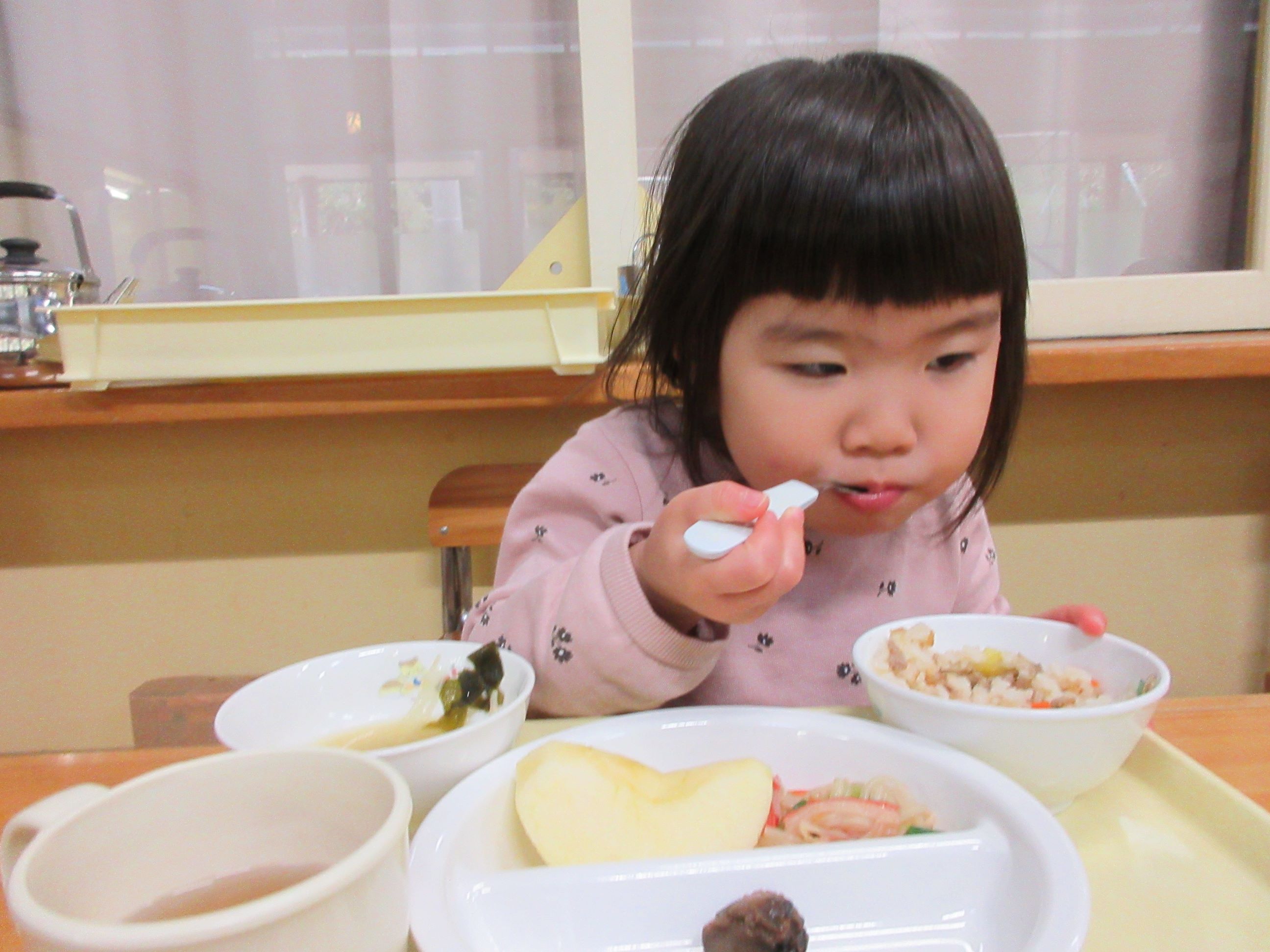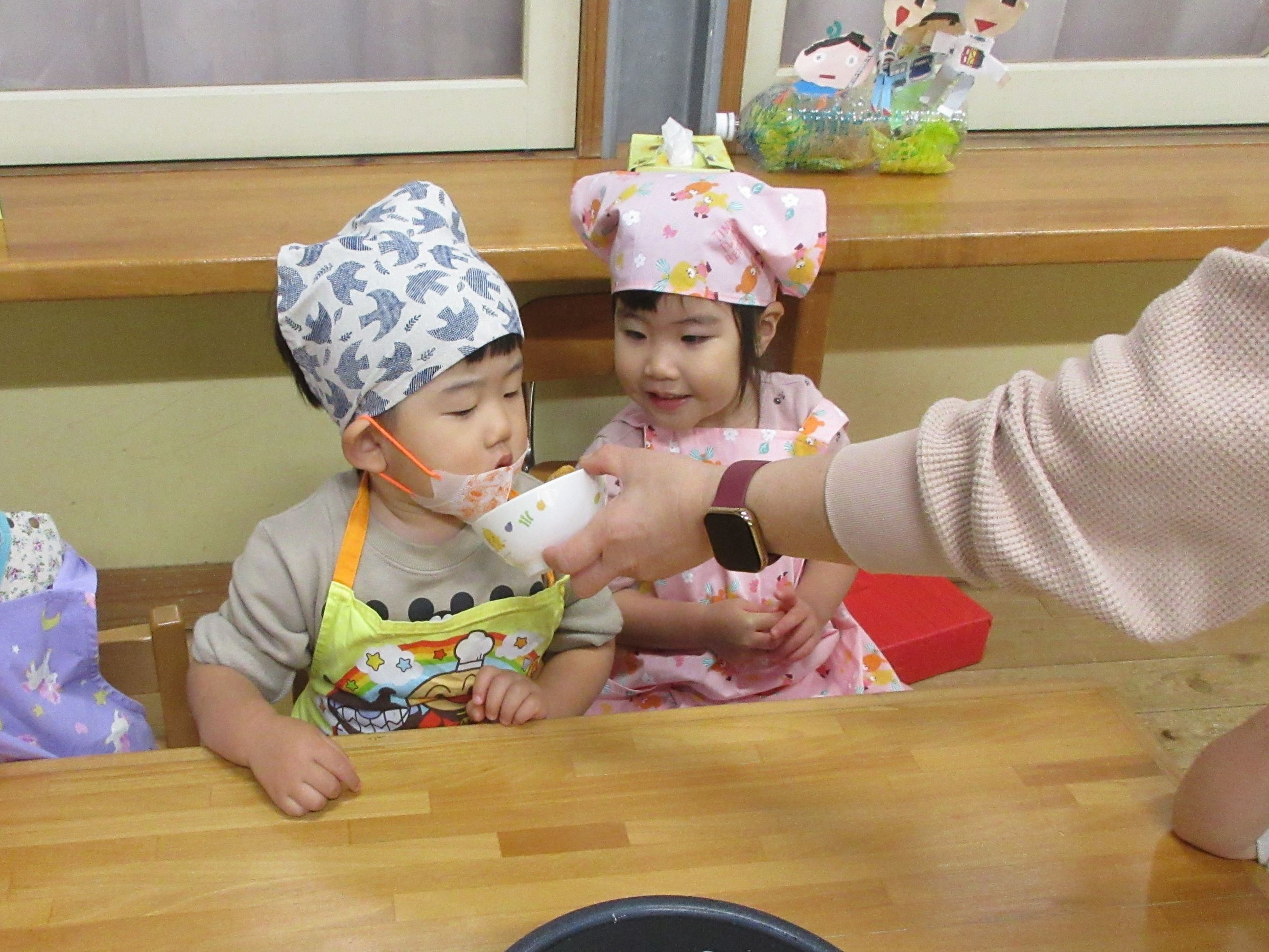 0,1,2歳児なので、芋を洗ったり、お米をといだり、切った材料を入れたりすることが主なお手伝いになりましたが、とても楽しそうにしていました。