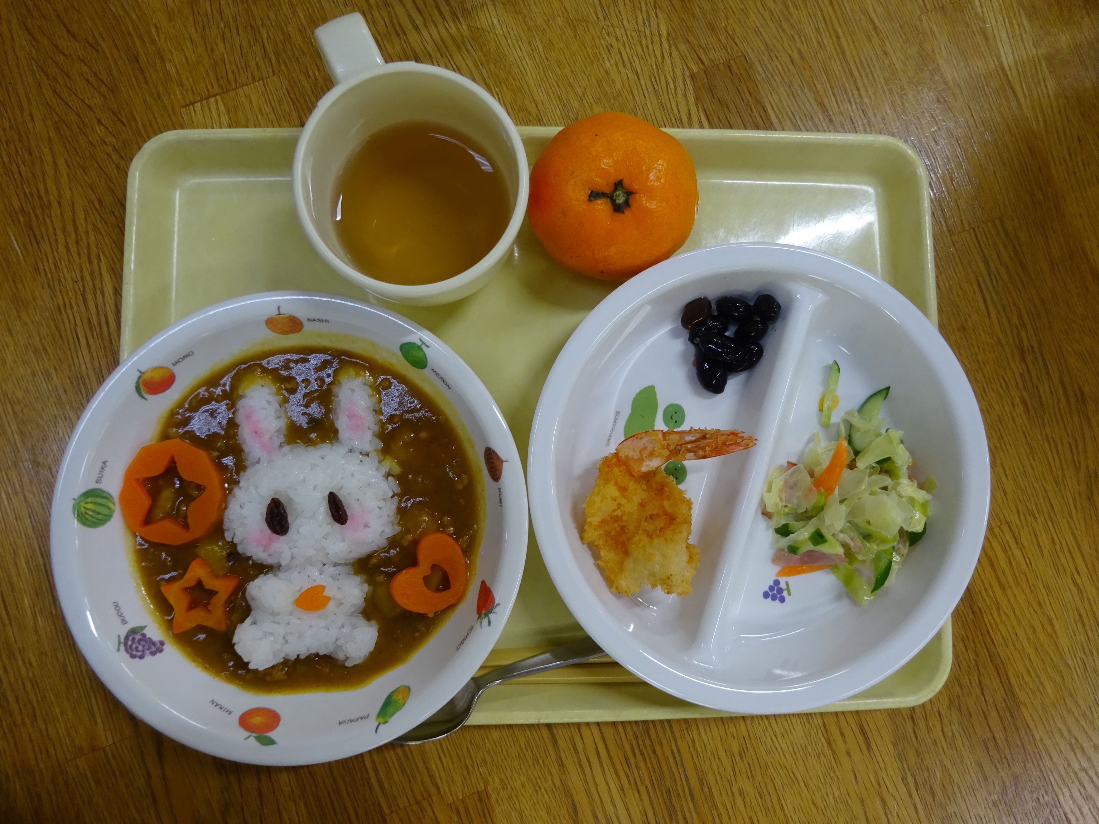 給食は、うさぎさんカレーライス