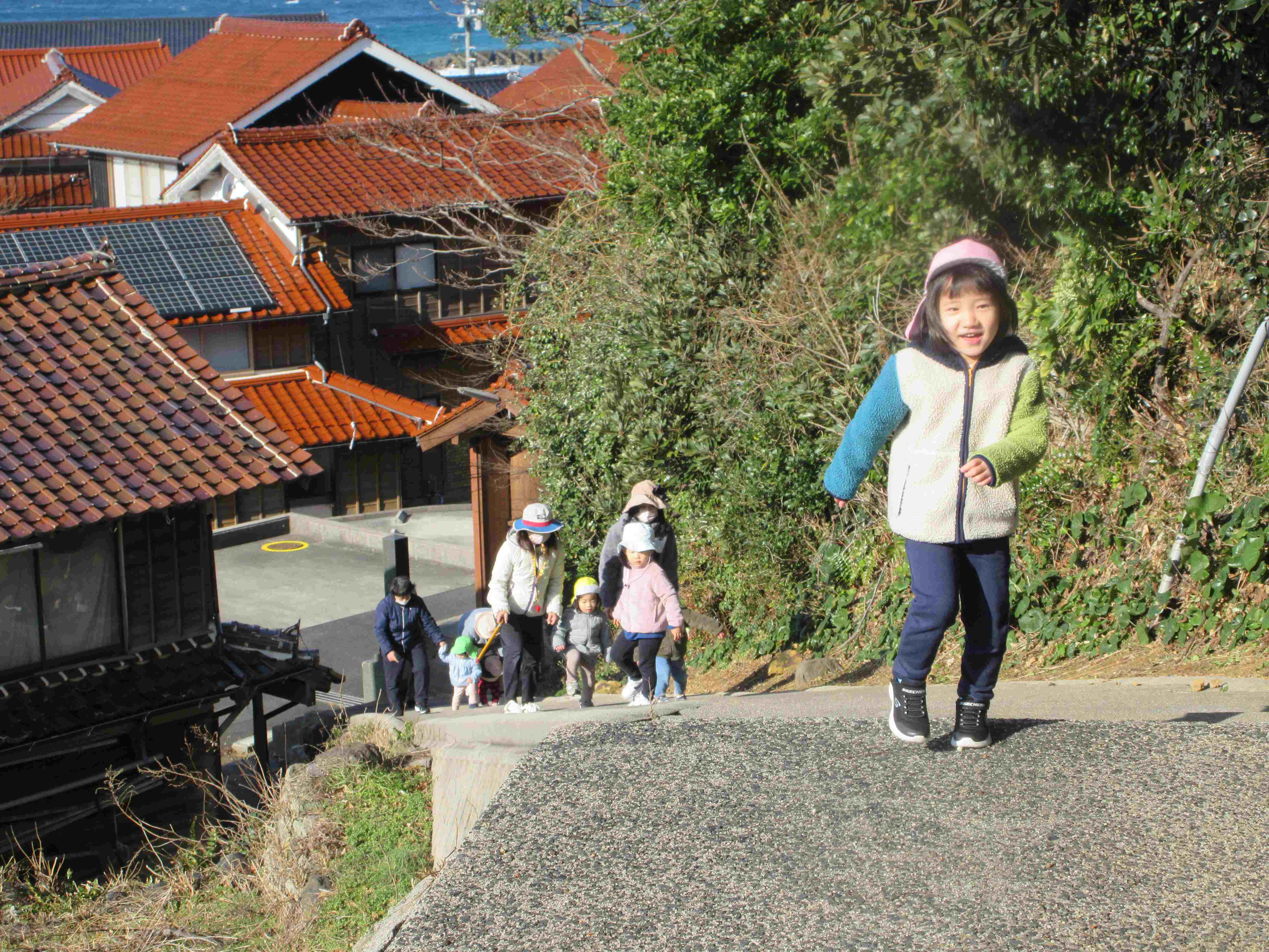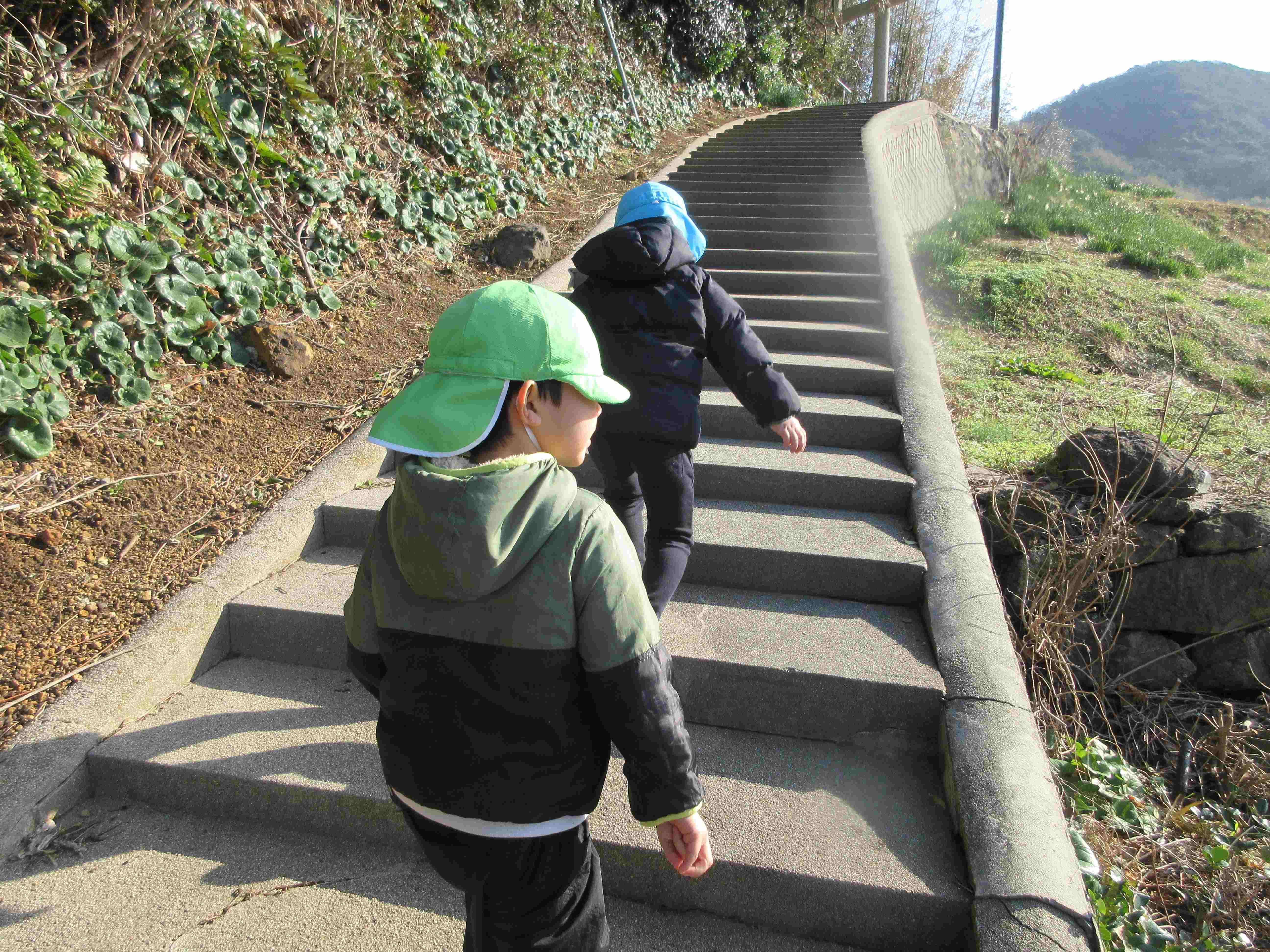 「よーし、のぼるぞー」「あっ、ほいくしょがみえた」