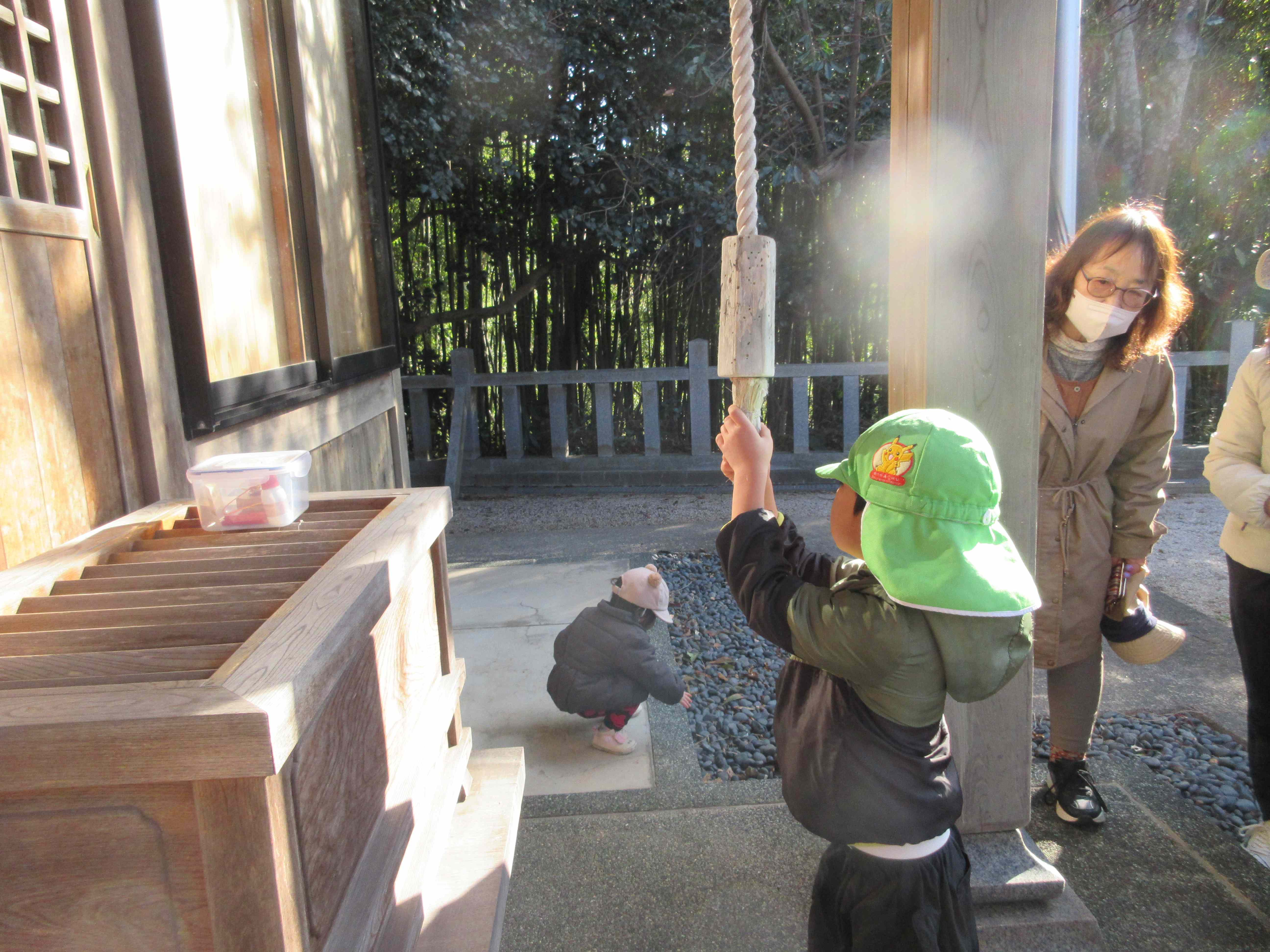 代表して、年長さんが鈴を鳴らしました。