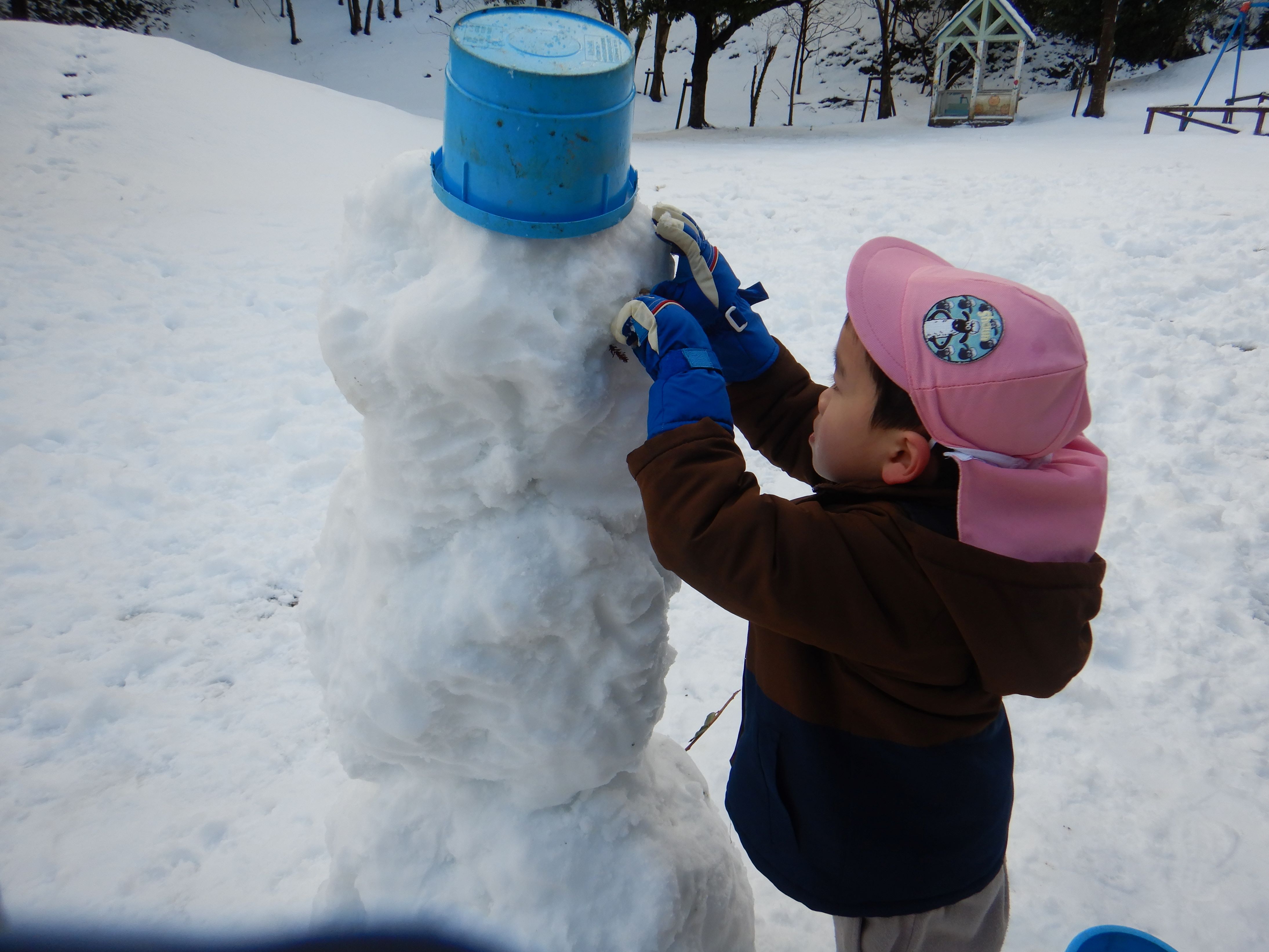 「よいしょ よいしょ」「おおきなゆきだるまをつくろう」