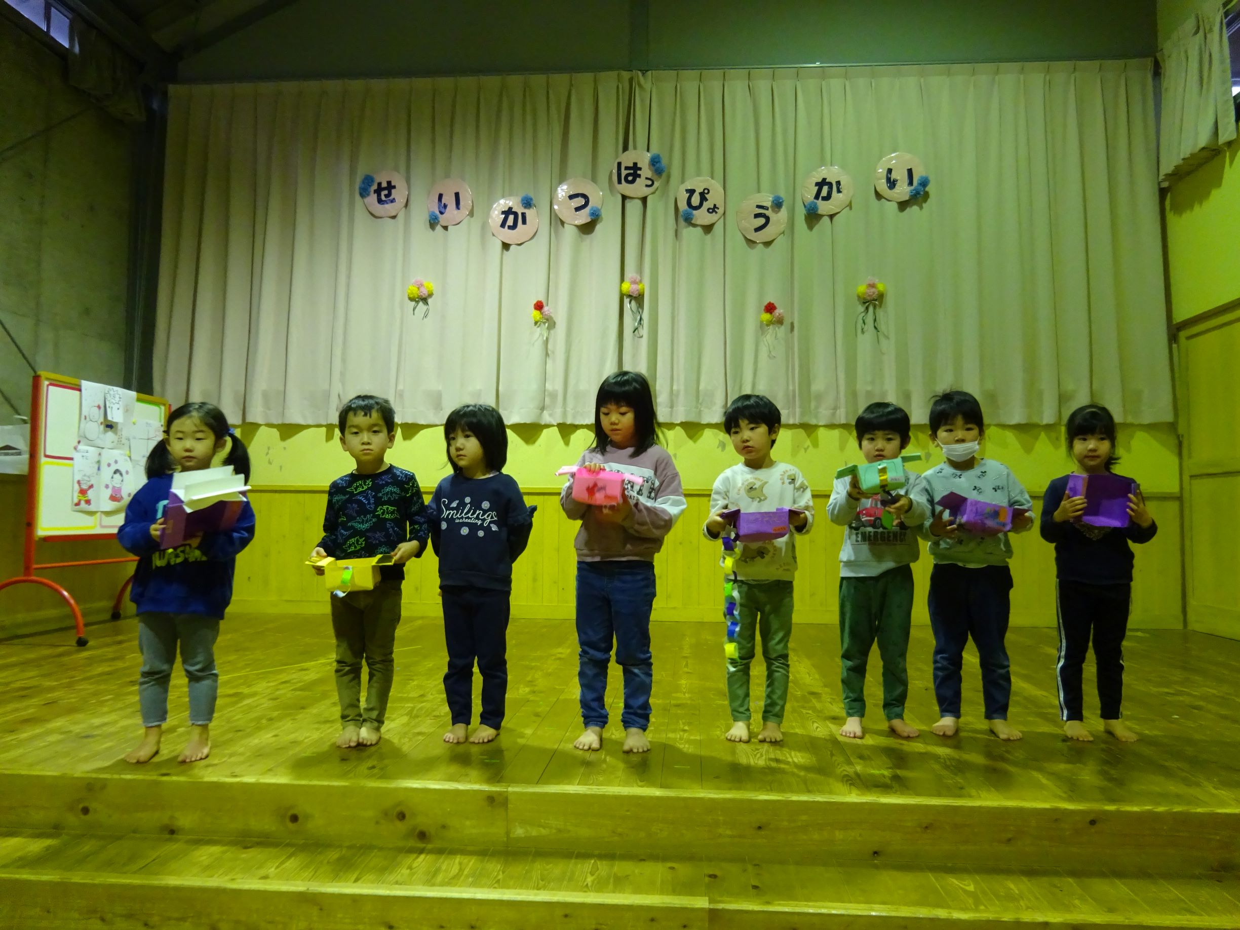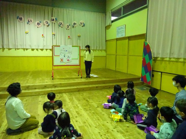 「はっぴょうかいがんばります!」「山の上から見てるぞ」